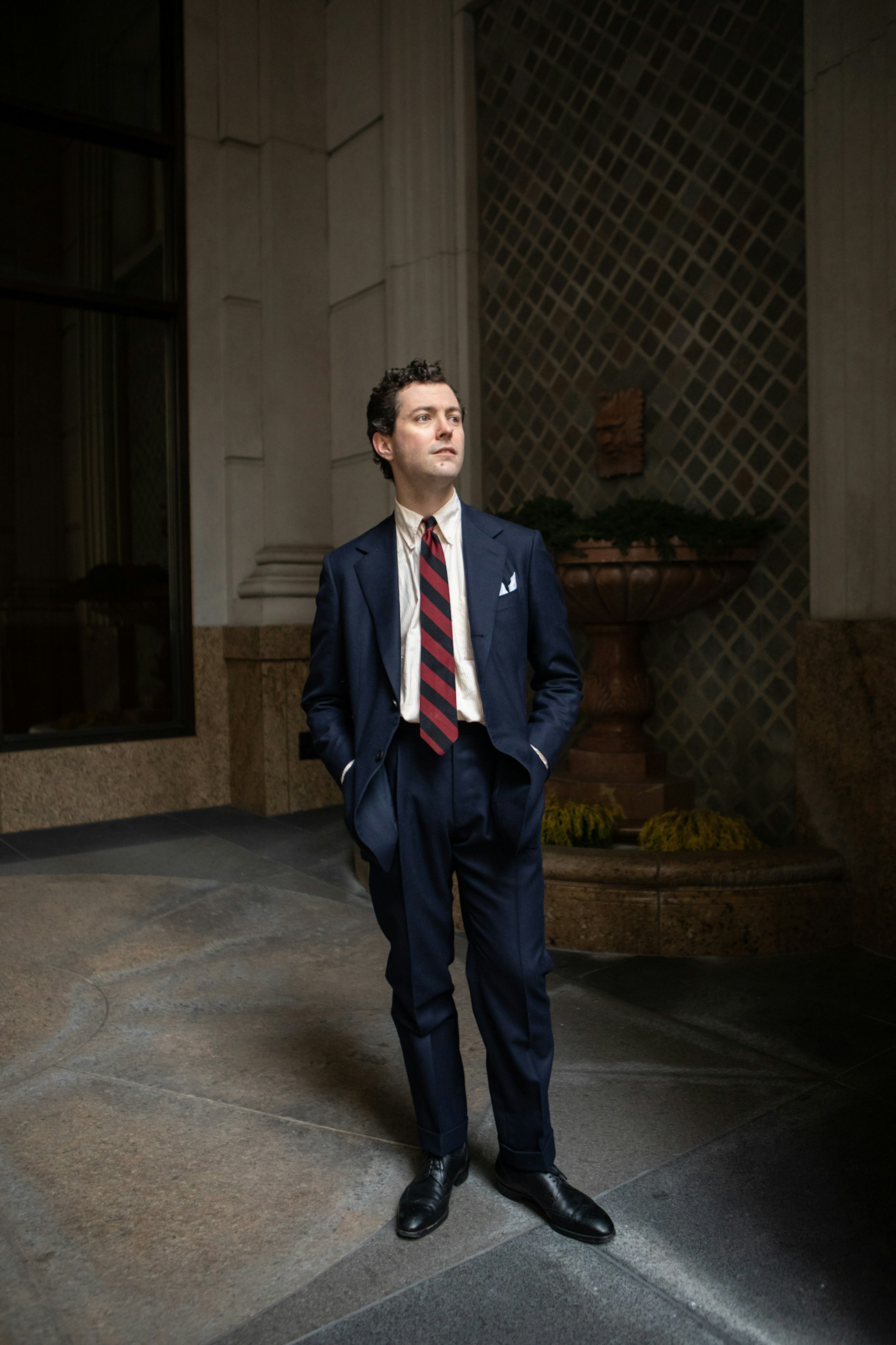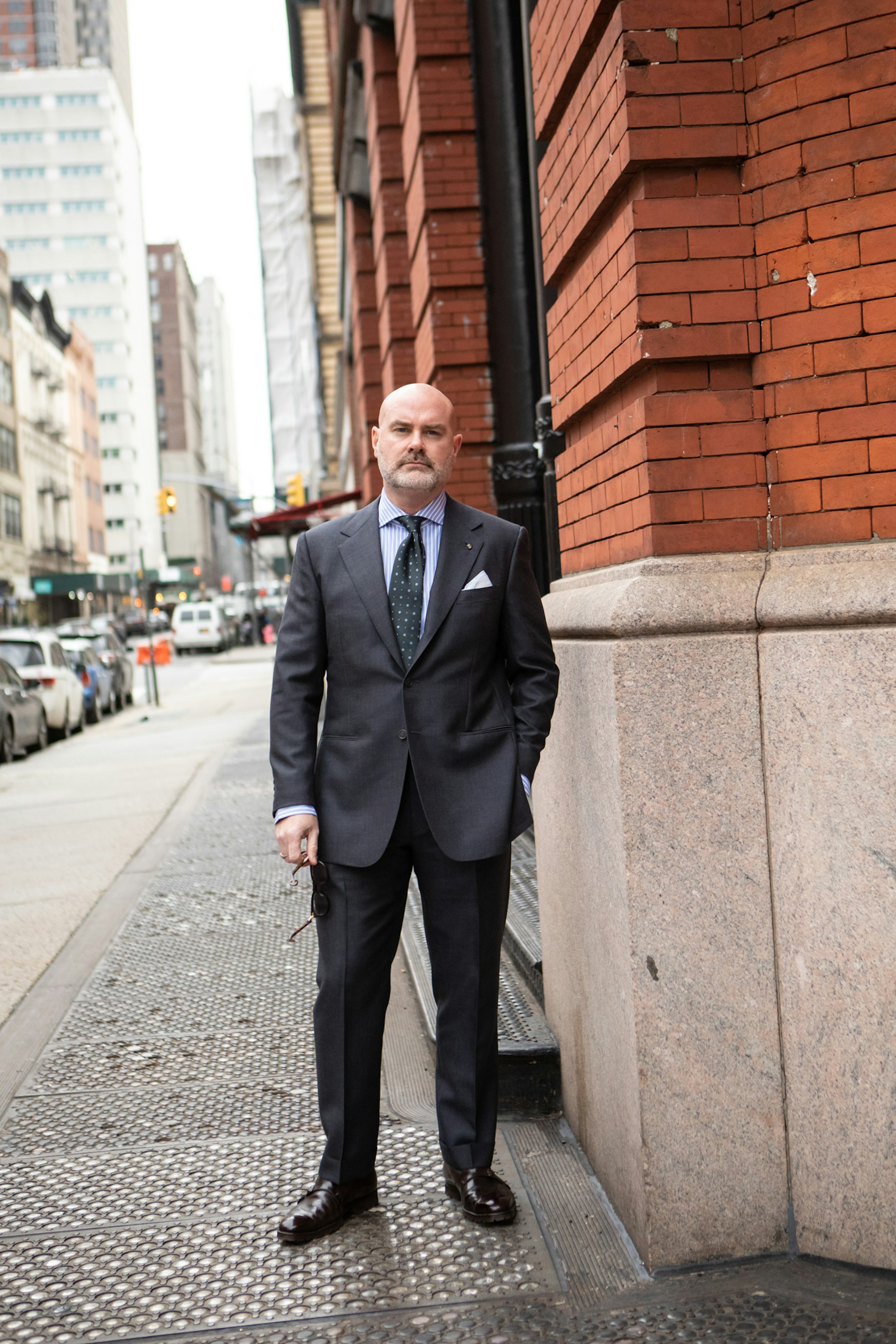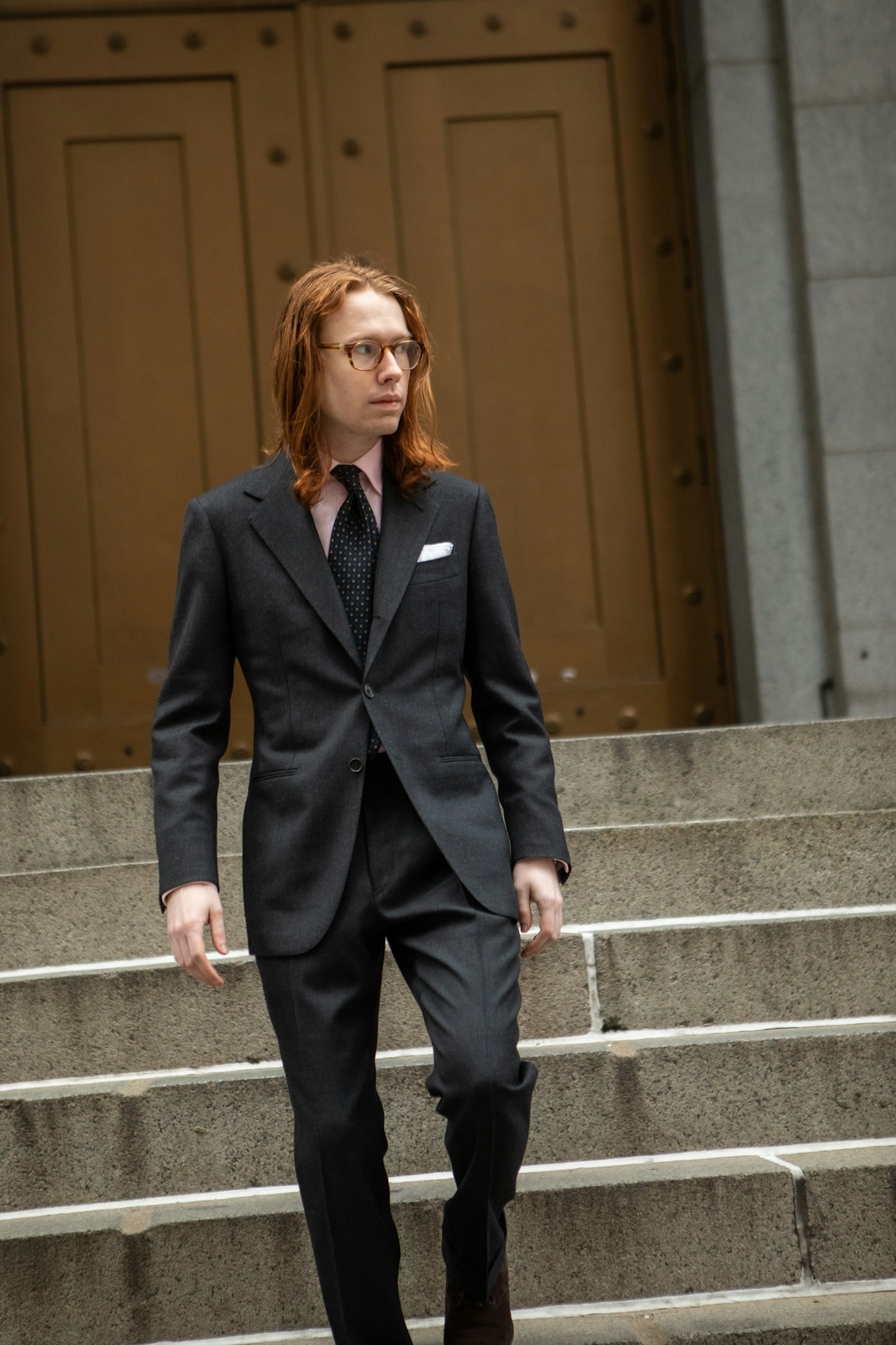 "I've been wearing soft tailoring by The Armoury for years, building a collection mostly consisting of sport coats. When I saw the new model 101, it seemed like a great chance to try something a bit more formal. I've been a fan of heavy fabrics from Dormeuil for years and this dense grey flannel was an obvious choice for the bitter New York winter."