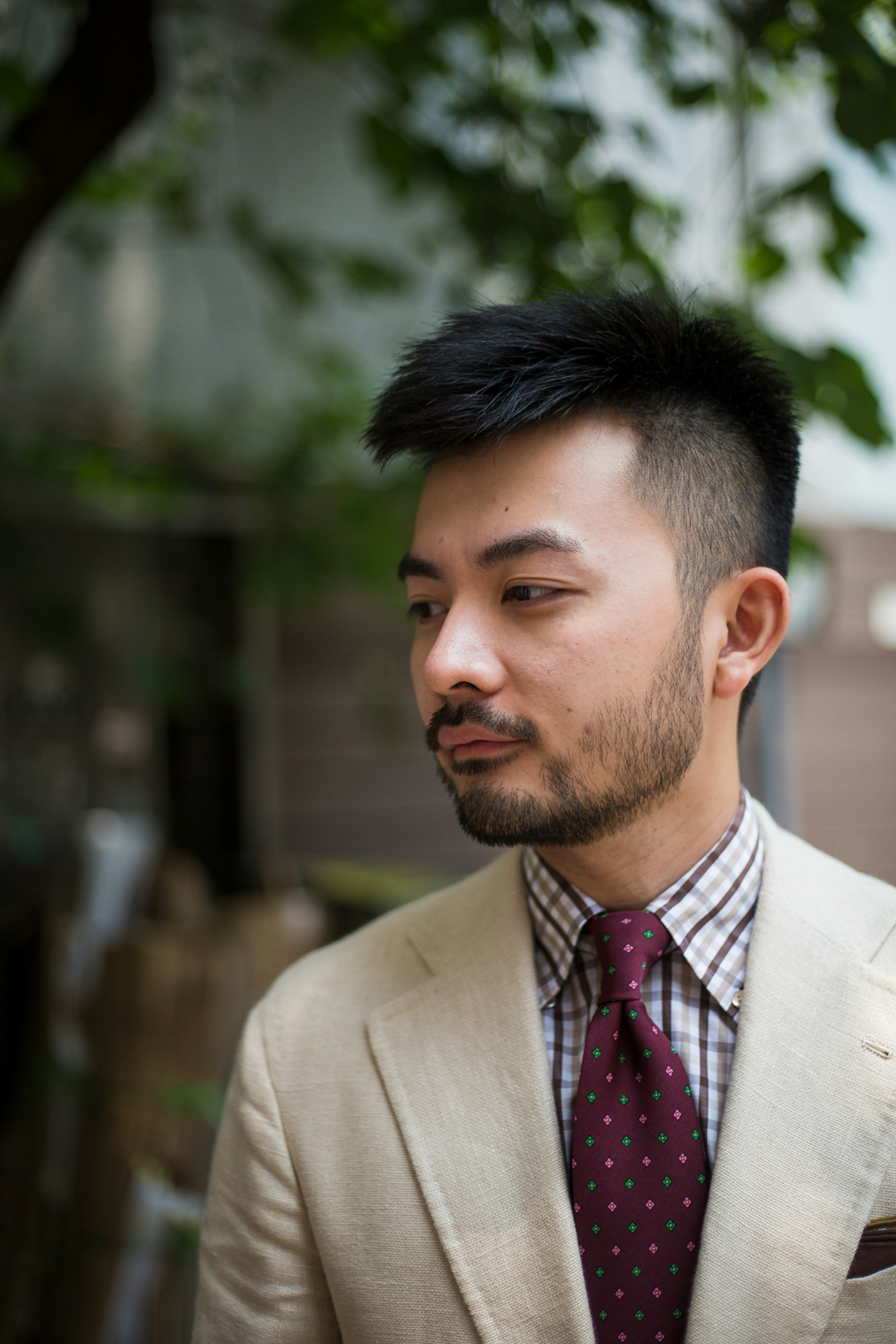 Many of my style inspirations come from old photos, illustrations or vintage pieces from the 1930’s. I love the idea of people wearing linen suits while on holiday, they are casual yet very elegant. Many of the jackets from the 30’s were ventless, paired with full cut trousers. Ueki-san’s house style was a good match and an aesthetic that I love for this suit. Another detail I requested are the patch pockets, not common nowadays, but a popular feature on many suits from the 30’s.