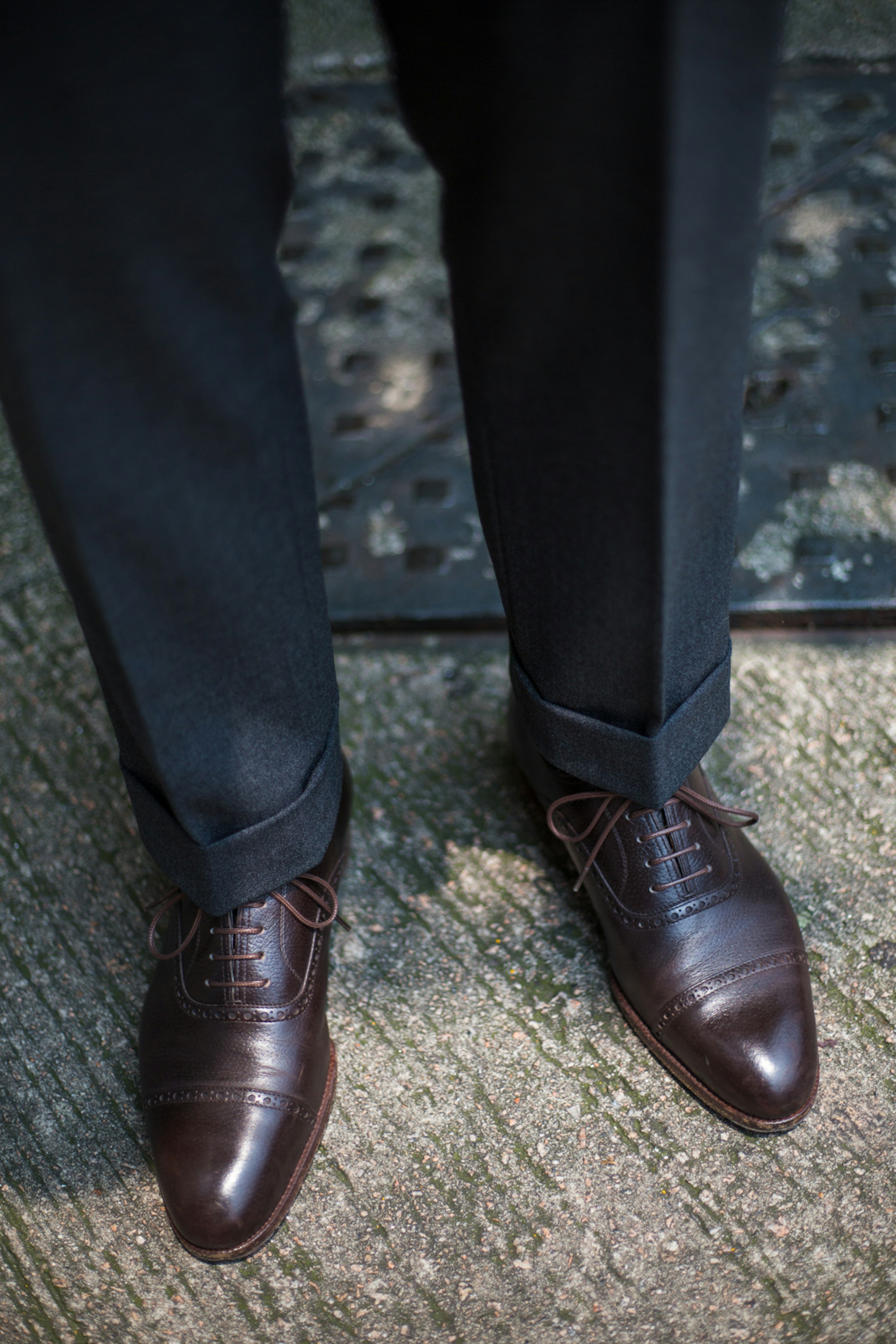The Model 6 has always been one of my favorites from The Armoury house cuts. I ordered via our made-to-order program, specifying the new wool seersucker from Vitale Barberis Canonico. Compared to traditional cotton seersucker, wool seersucker makes for a more breathable, wrinkle resistant option that also holds a sharp trouser crease. It’s good holiday or travel suit. Our Model 7 seersucker suit is made from the same cloth in a different color.
