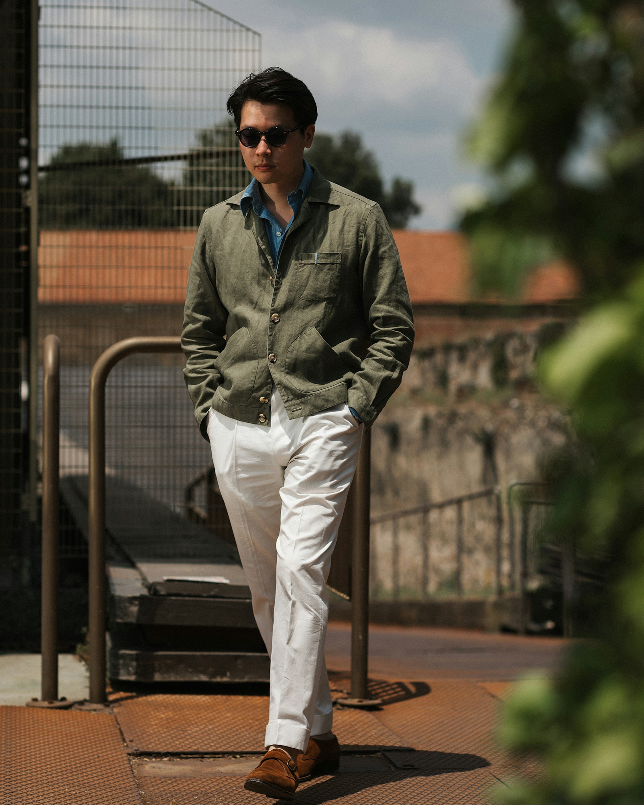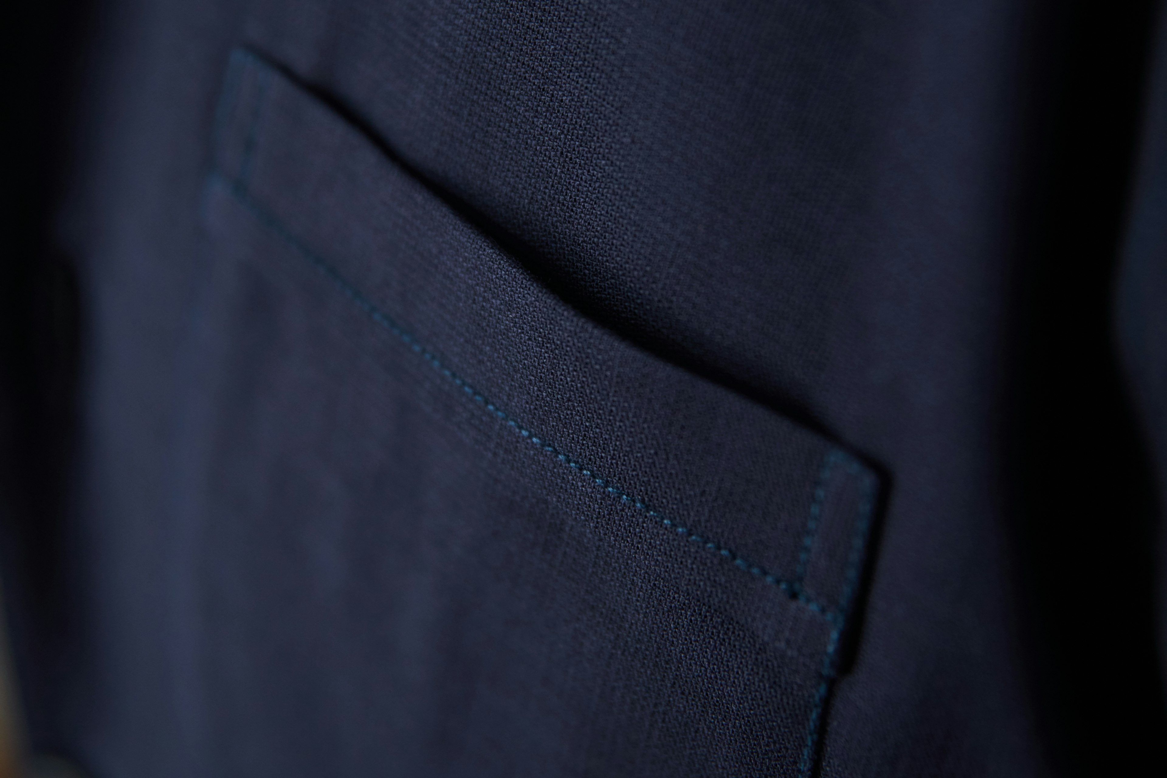 The cotton panama, feels and acts a lot like a high twist wool. It’s slightly open weave is perfect for the humid weather when a jacket is still necessary. We opted for a navy blue as it’s versatility allows it to stand in for the classic navy sport coat, yet it’s breathable weave and unlined construction make it as light as possible.
