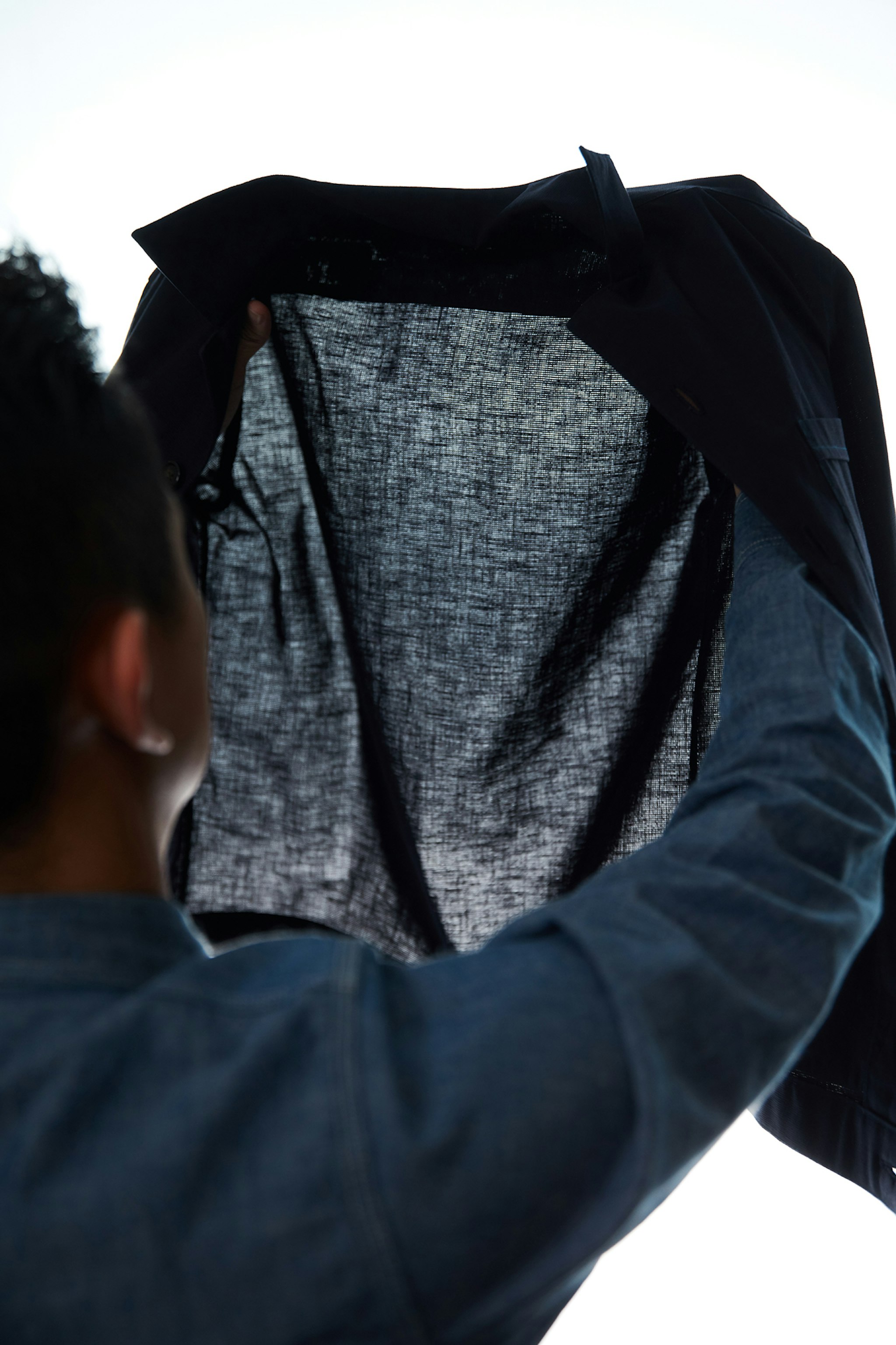 Our aim was to create a cropped jacket for everyday casual situations. As well as being short, the body is cut fairly loose to create a flattering, long leg line when paired with higher rise trousers and denim.