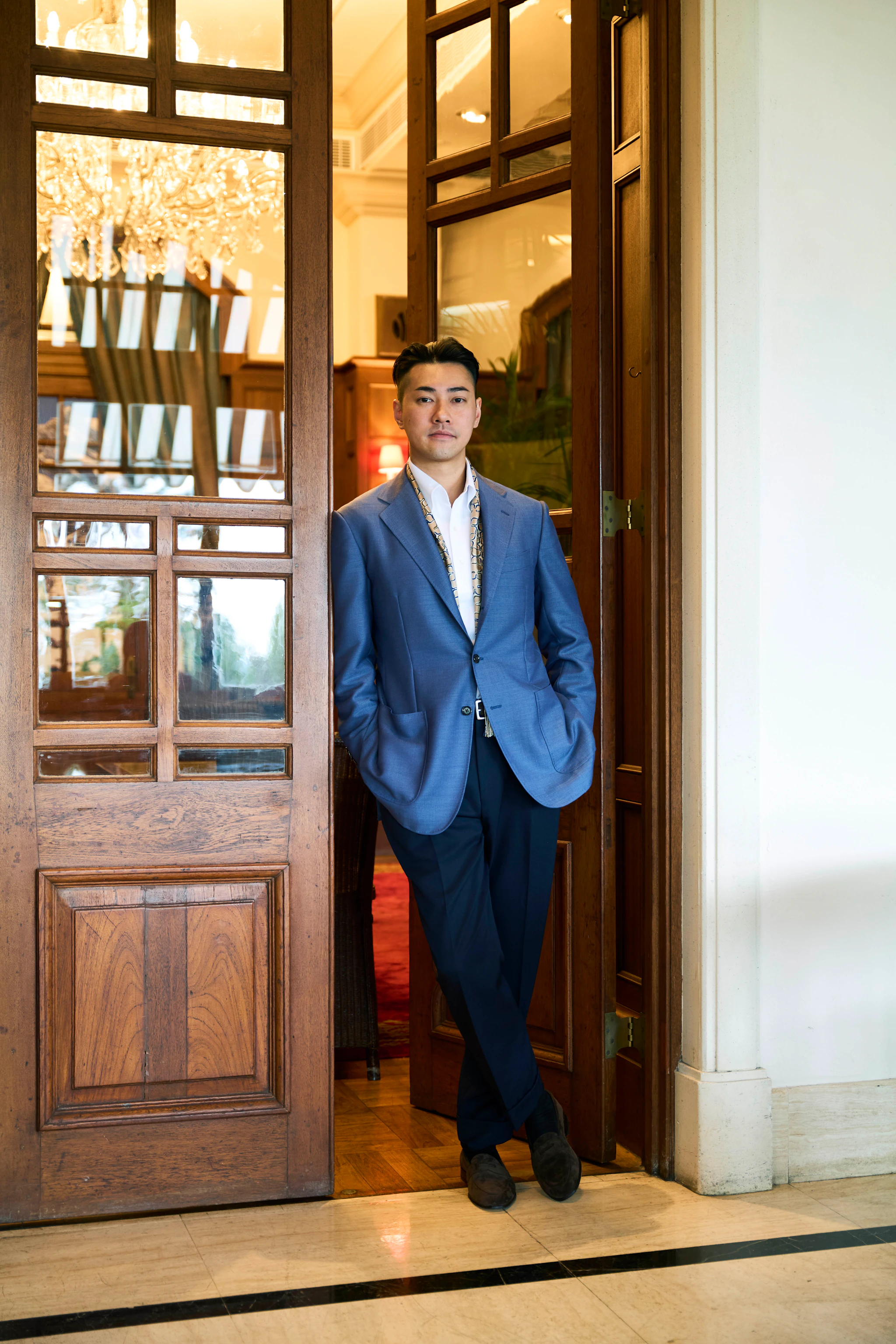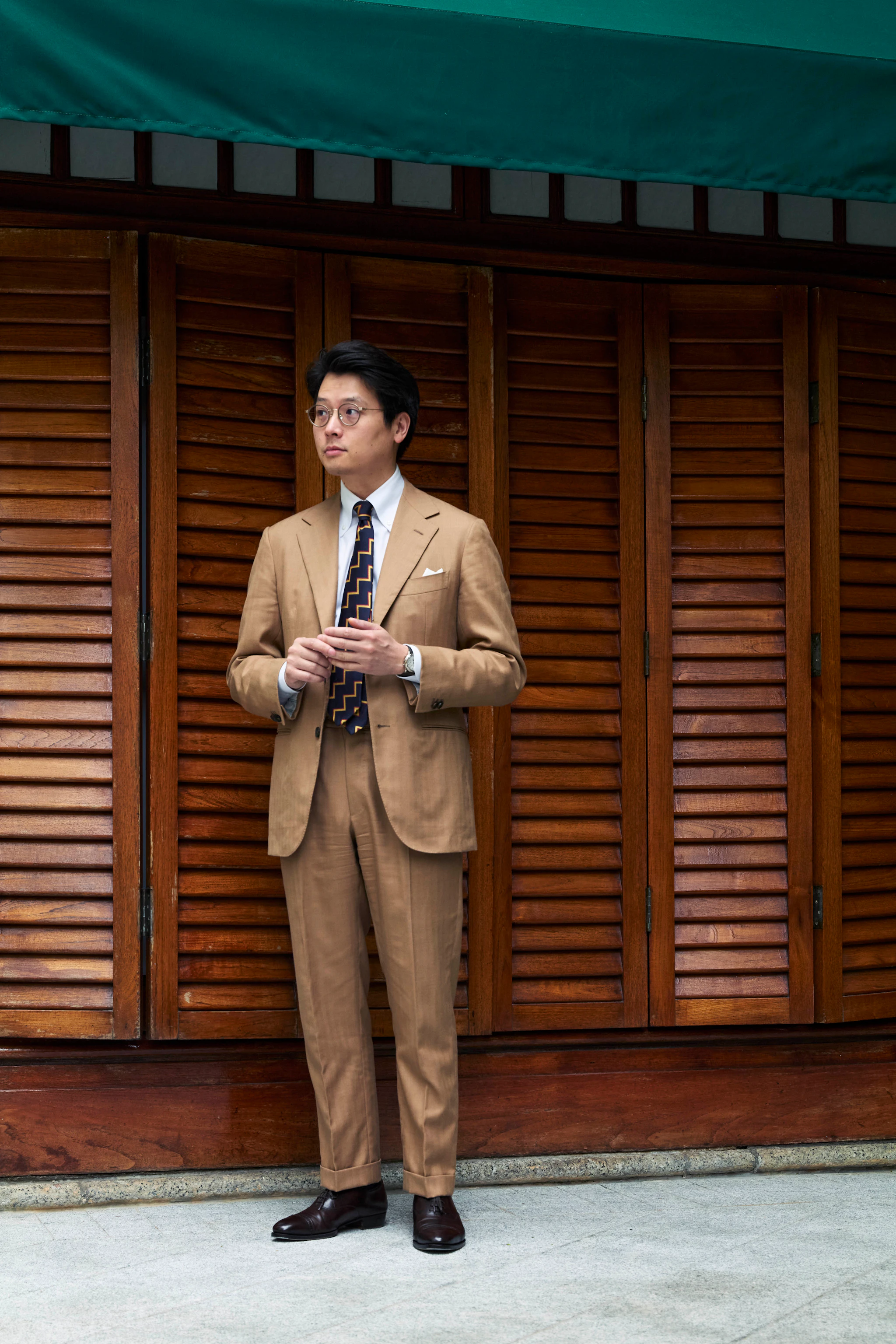 Nagayama-San wearing our Broken Twill Model 12 Sport Coat, Rota Sway Trousers and Duane-S Loafers.