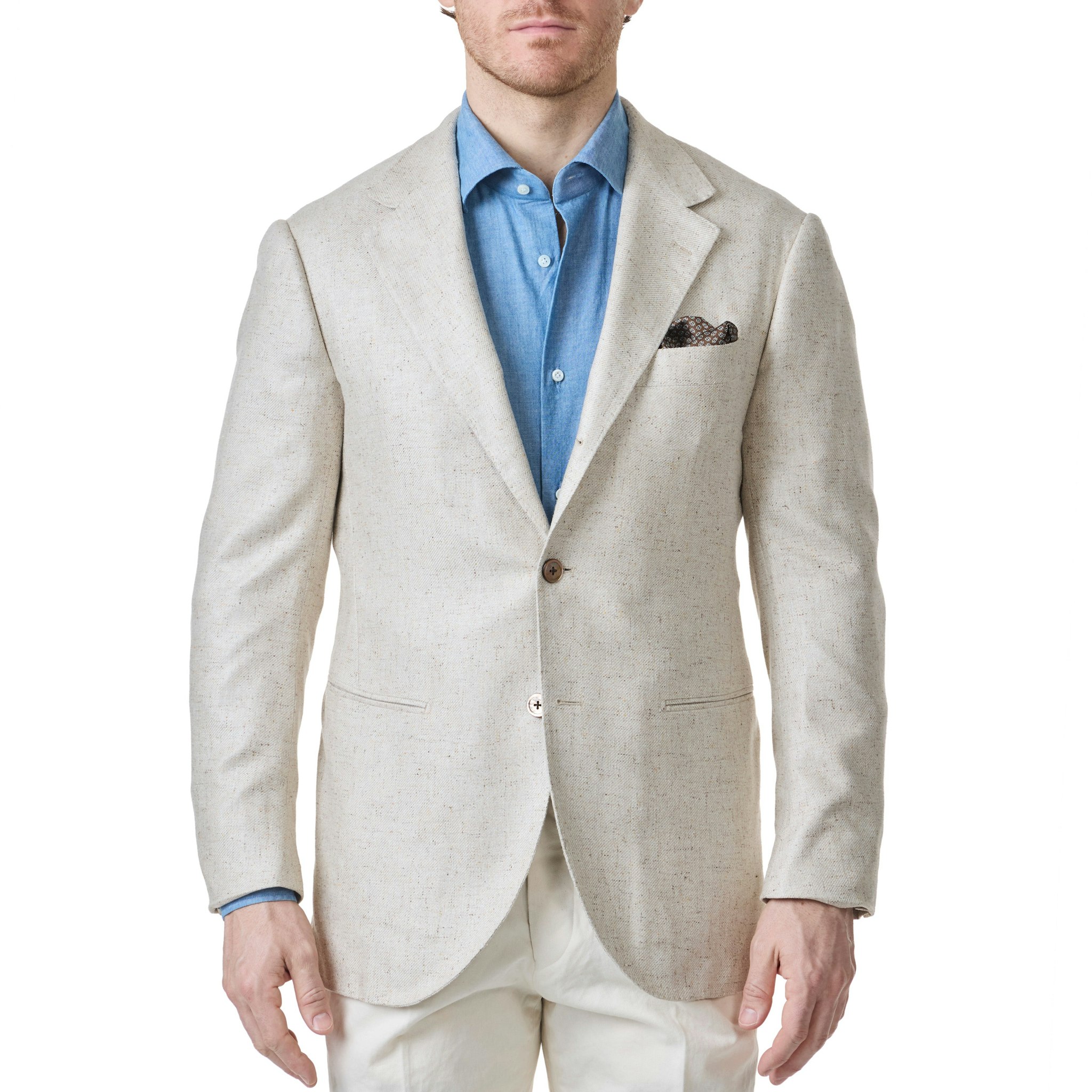 Jacky wears a Linen Model 16 Sport Coat, Armoury Shirt and Tie Your Tie Tie.