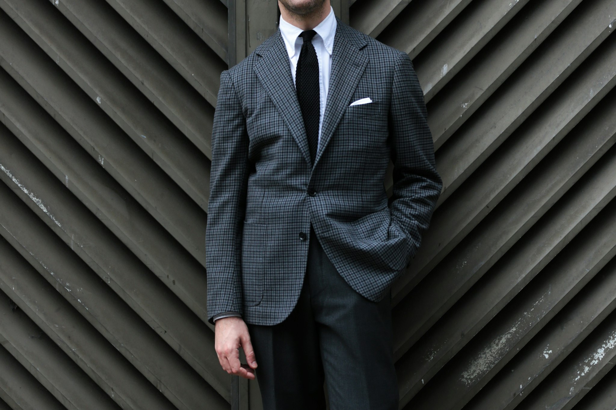 One of the most distinctive features on any jacket is the shoulder. The Model 3 features an unpadded, natural shoulder line which allows it to sit close to the body.