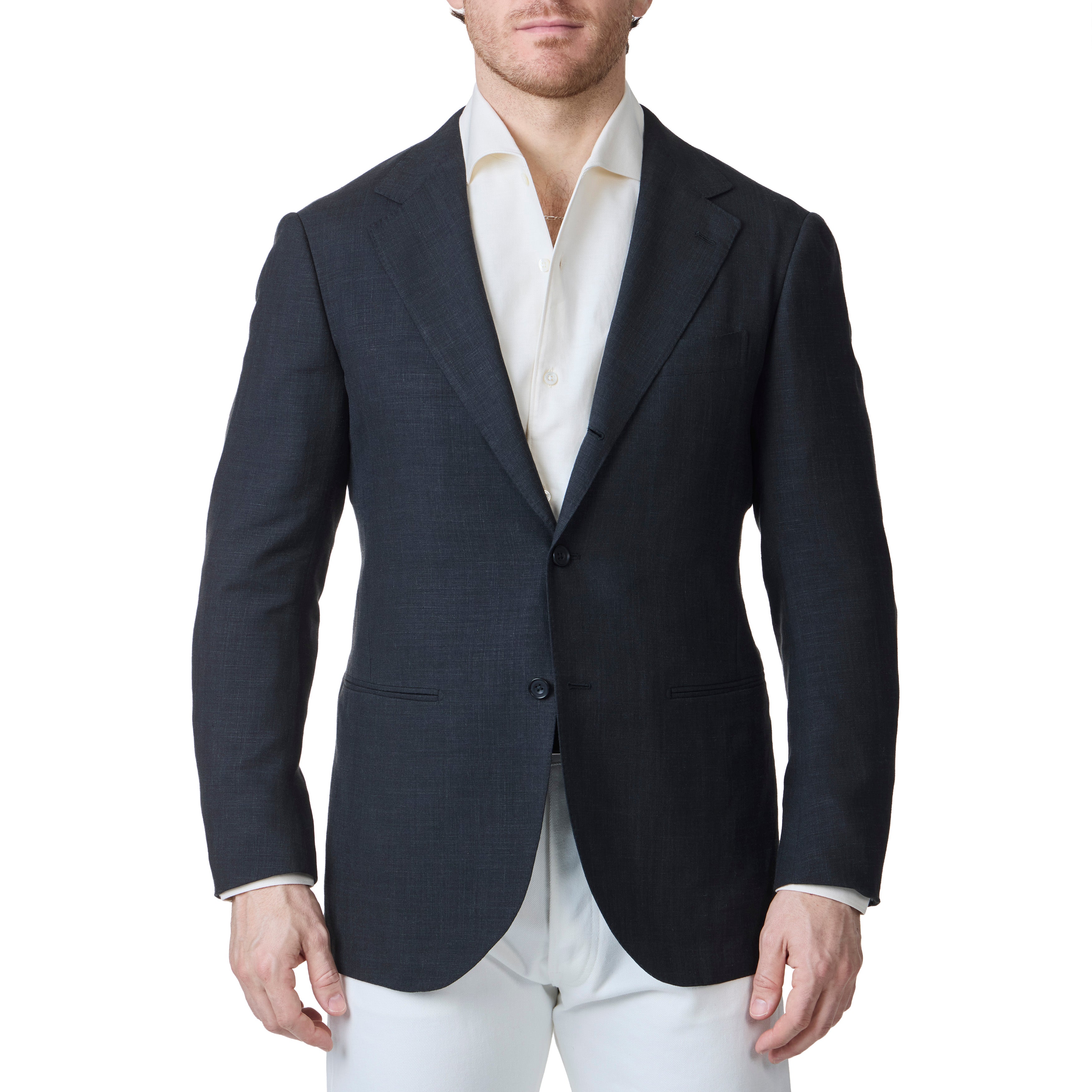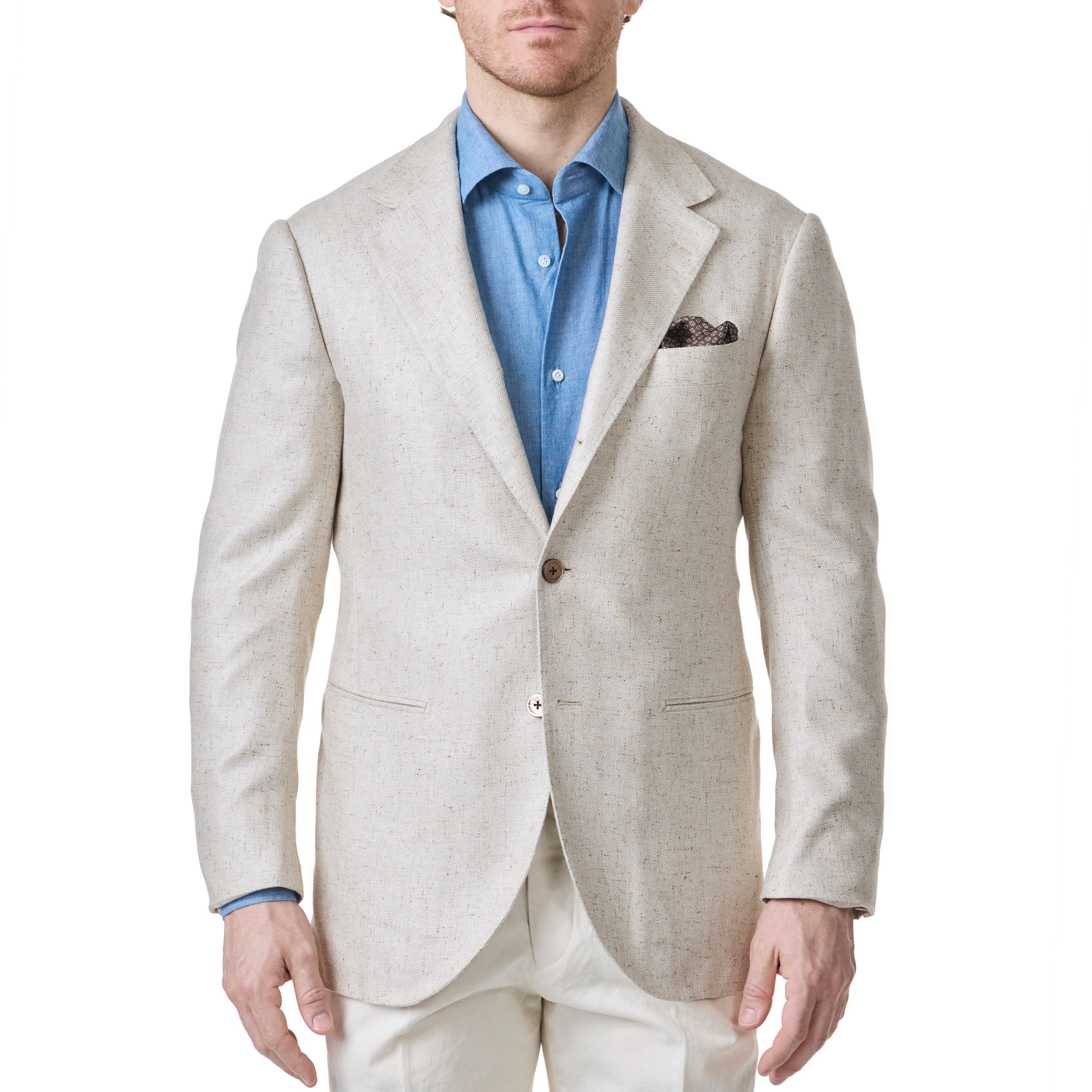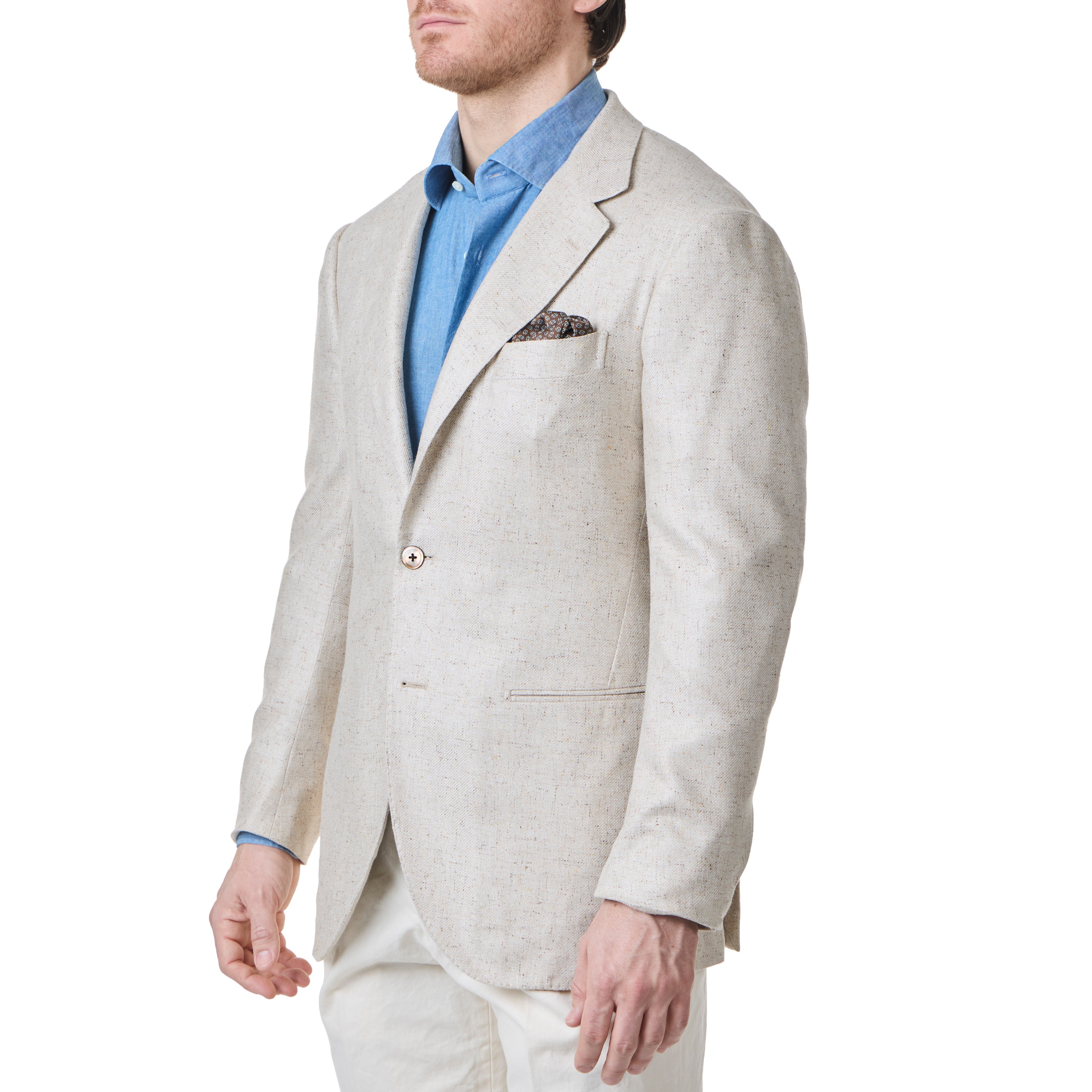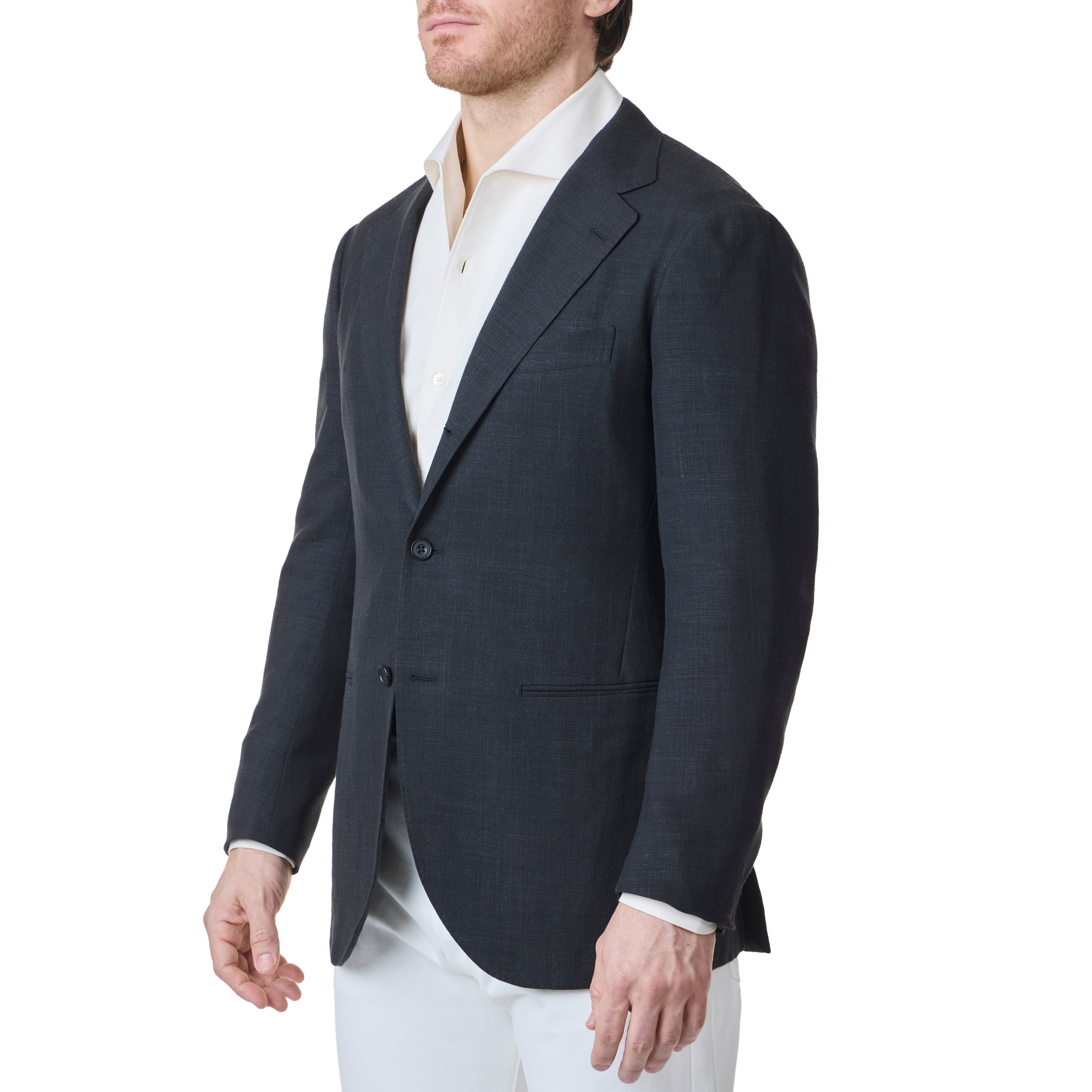 Our Model 15 is a tribute to the great city of Florence. Featuring a soft unpadded shoulder, the canvas is extended past the sleeve head providing more structure and added extension. One of the most prominent features is the lack of a front dart, achieved through use of an angled side dart, which hides cleanly behind the arm of the wearer.