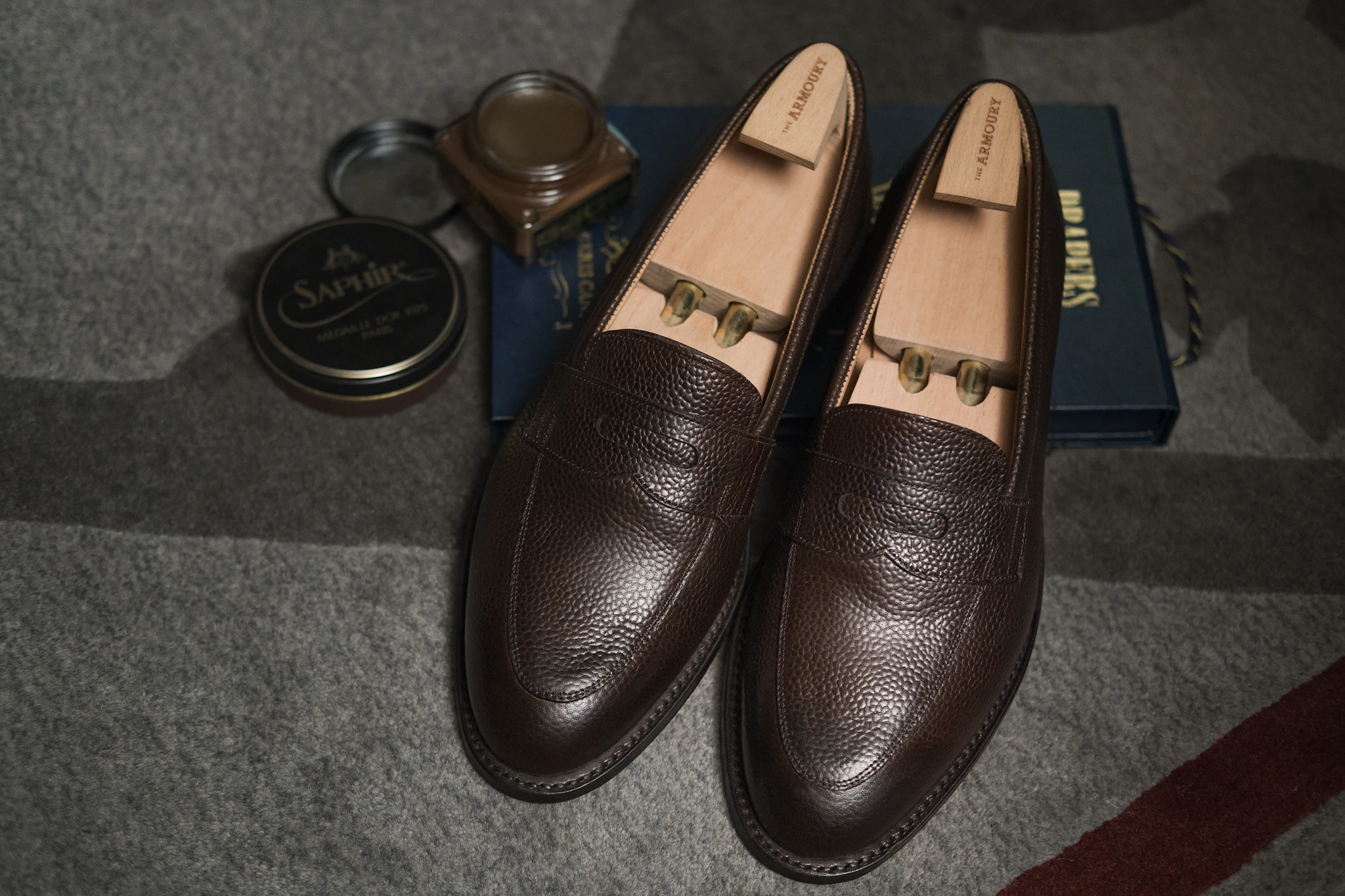 The goal of The Armoury Shoe Collection was to produce a new line of shoes that was uniquely ours. We partnered with the renowned master shoemaker, Yohei Fukuda. Fukuda-san was trained in England and developed his skills under the tutelage of great English shoemakers: John Lobb, Gaziano & Girling and Cleverley. He is an exemplar of classic English shoemaking.