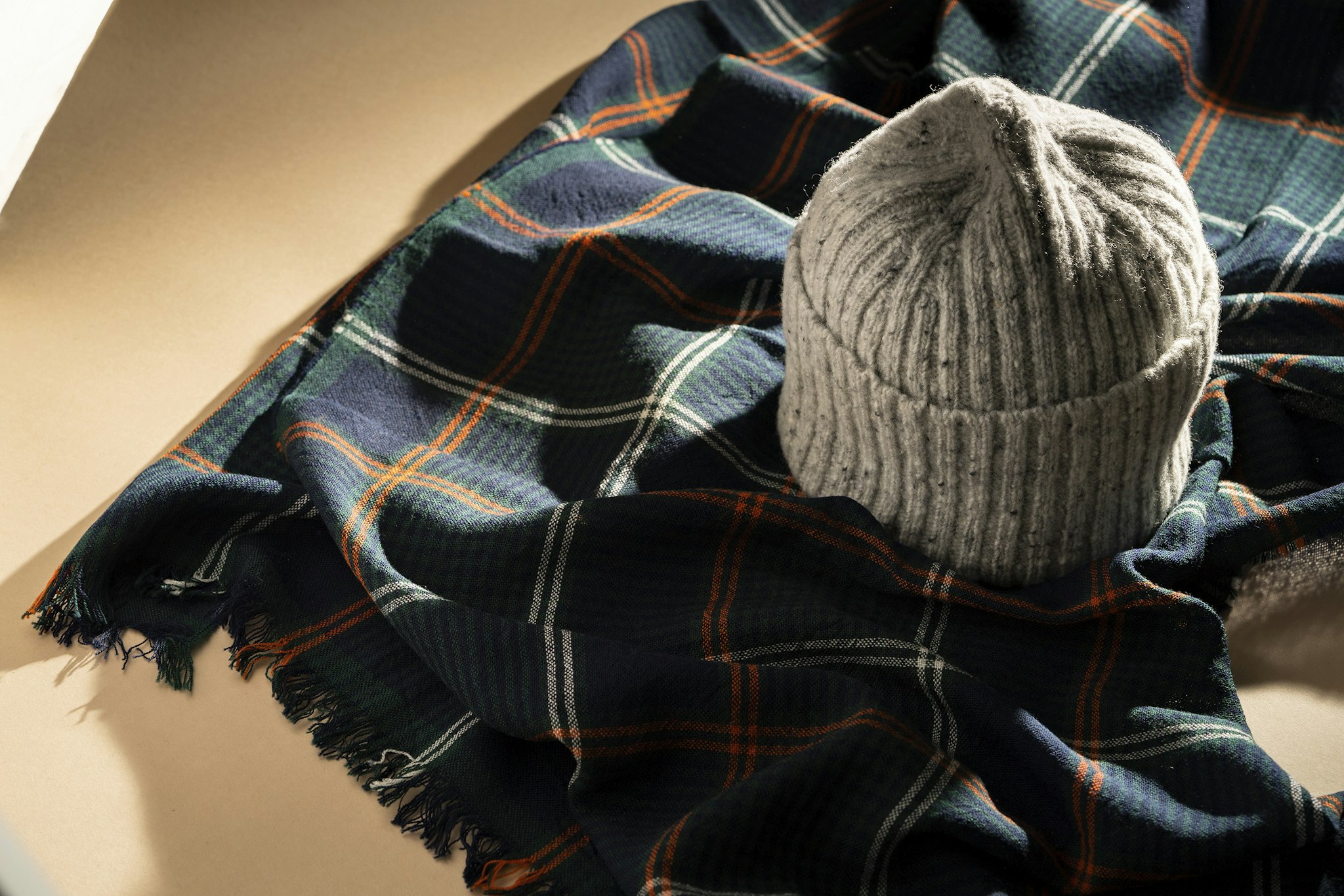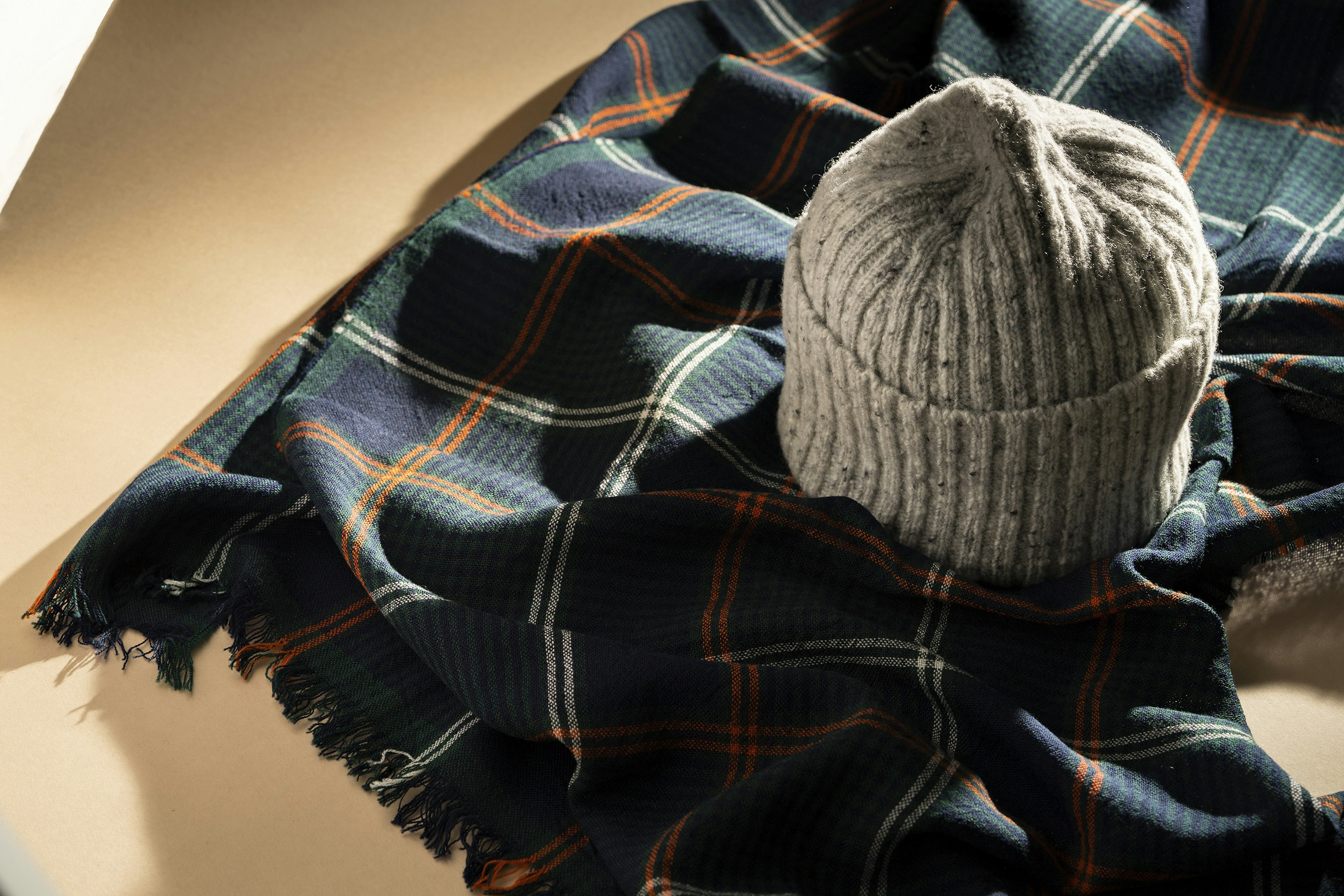 As with all thing Drake’s, their scarves and hats have a relaxed, enduring elegance to them. The crinkle scarf has an intriguing feel, made up in a classic check pattern with soft merino wool.