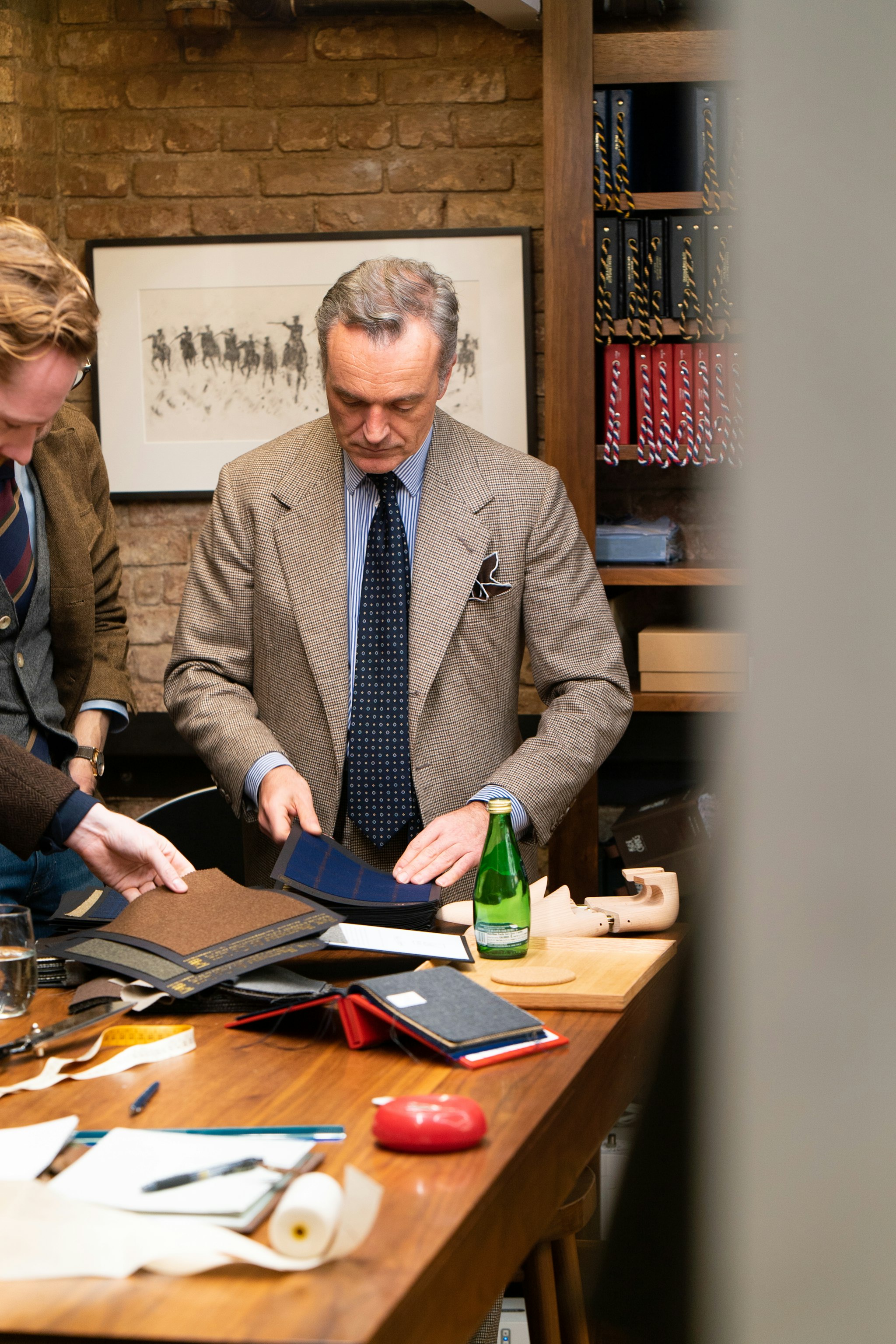 One of the first things you notice when going through old swatch books is the colours that were used two hundred years ago. We often see classic menswear through black and white photographs so we miss a lot. Those same photographs in color were not blue or grey. At Fox Brothers we’re revisiting colour. Each season we add more, whether that be new colours or forgotten patterns.