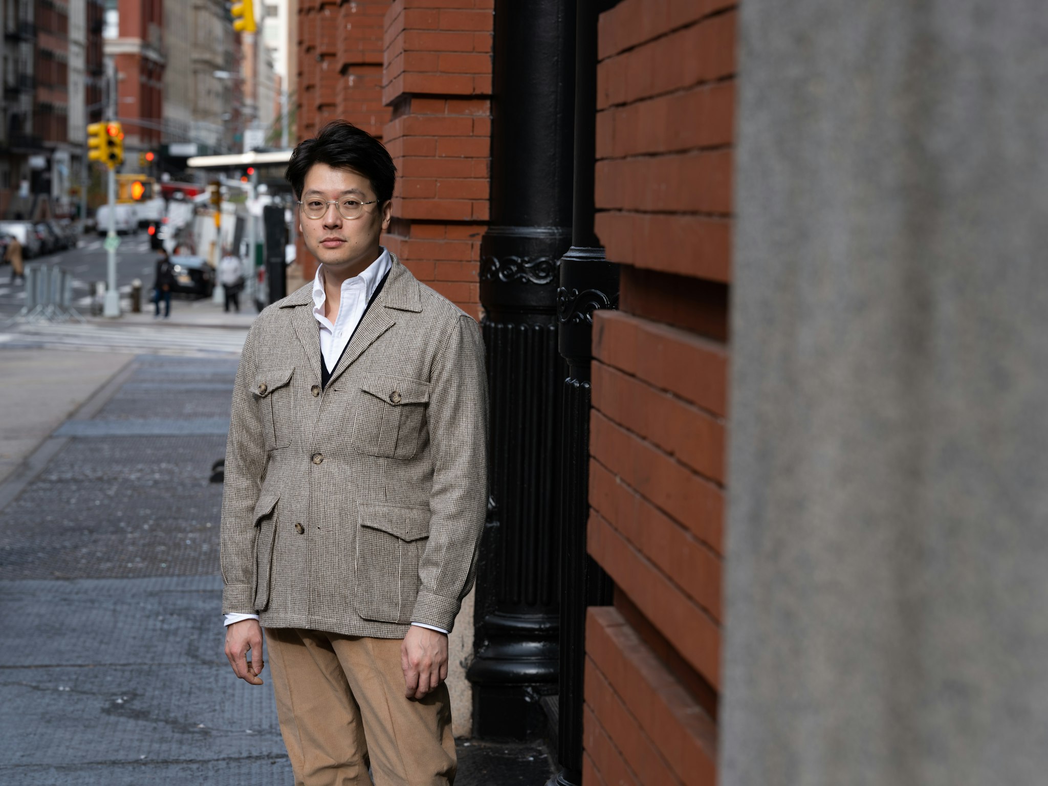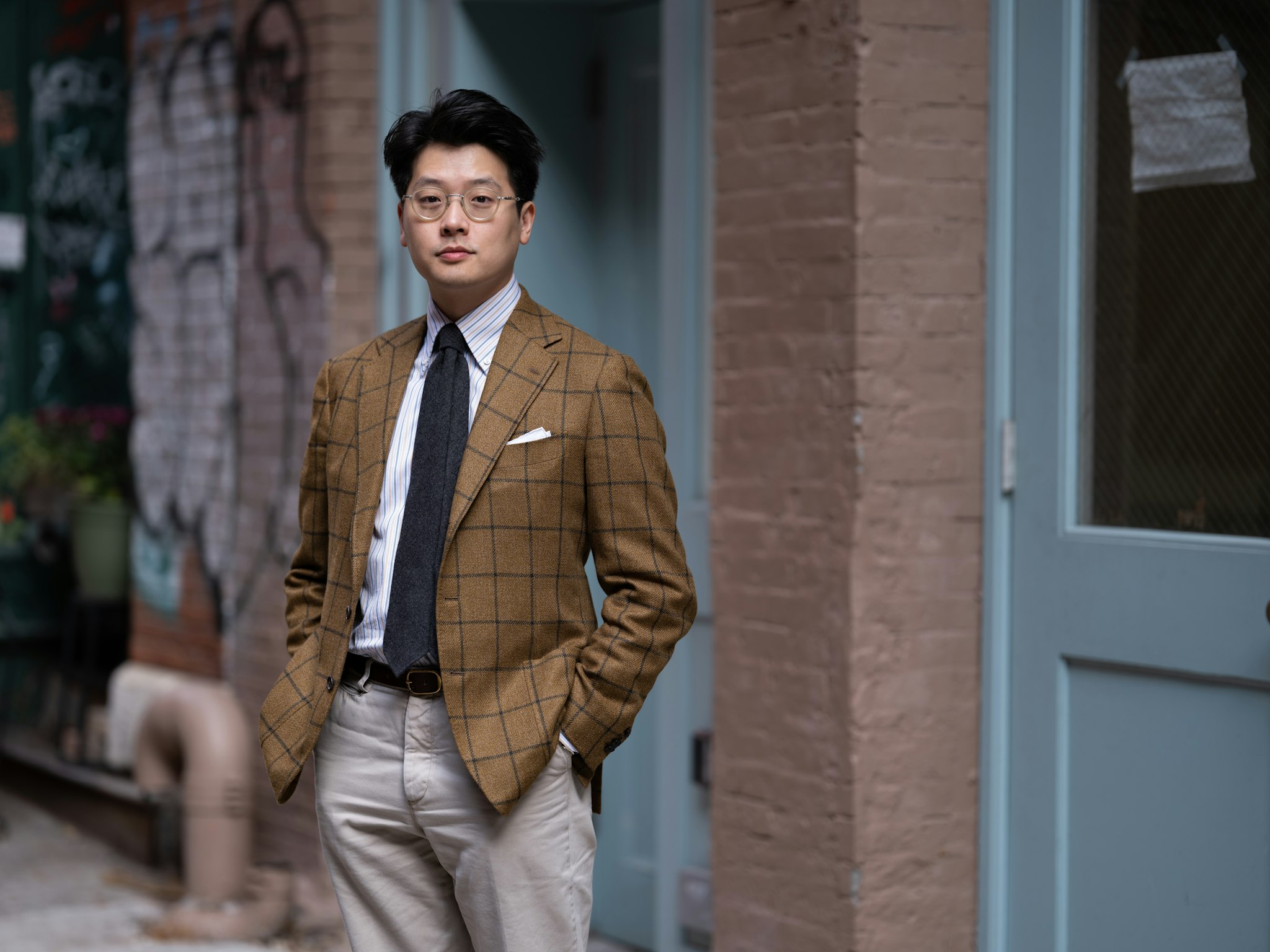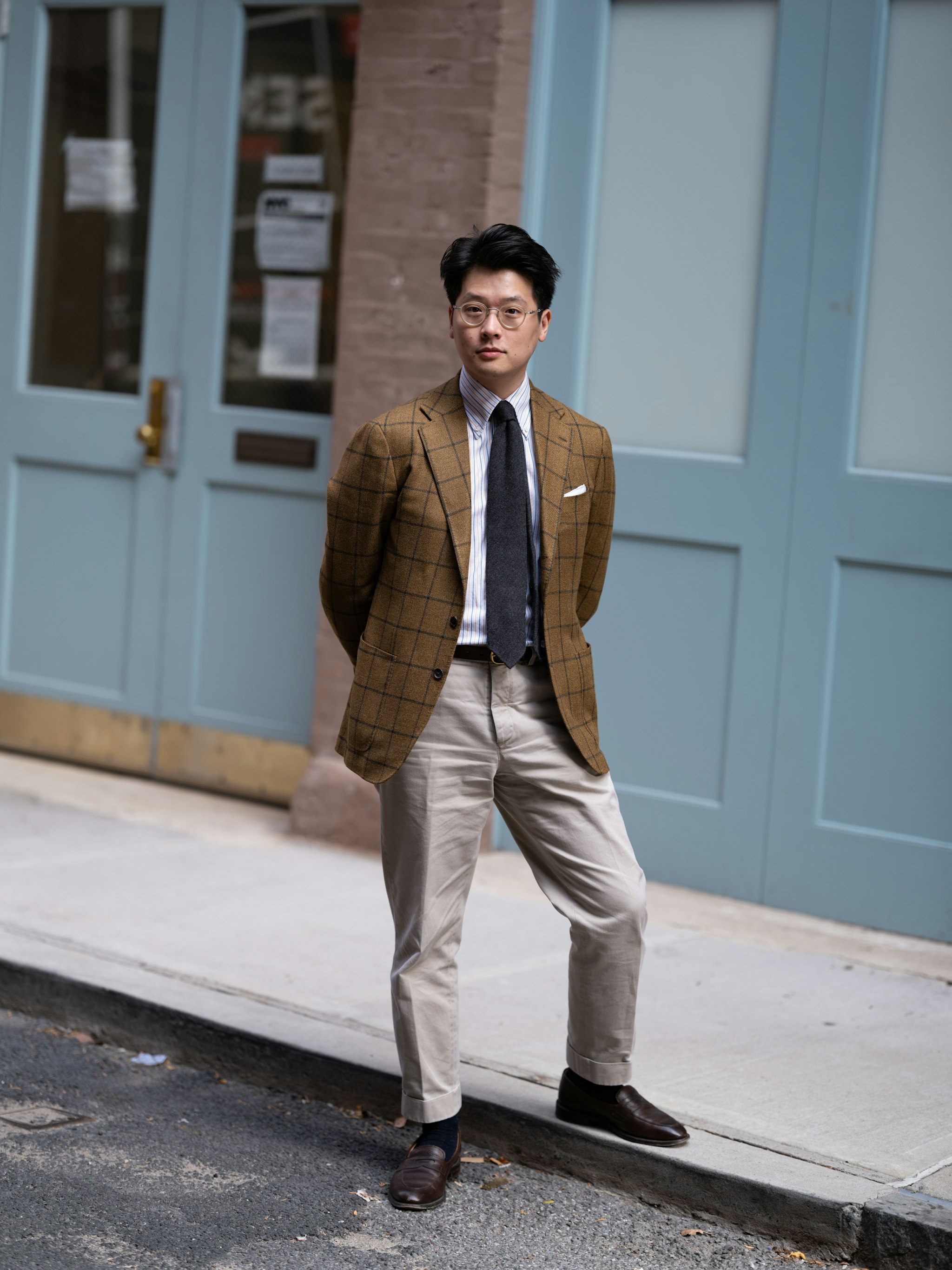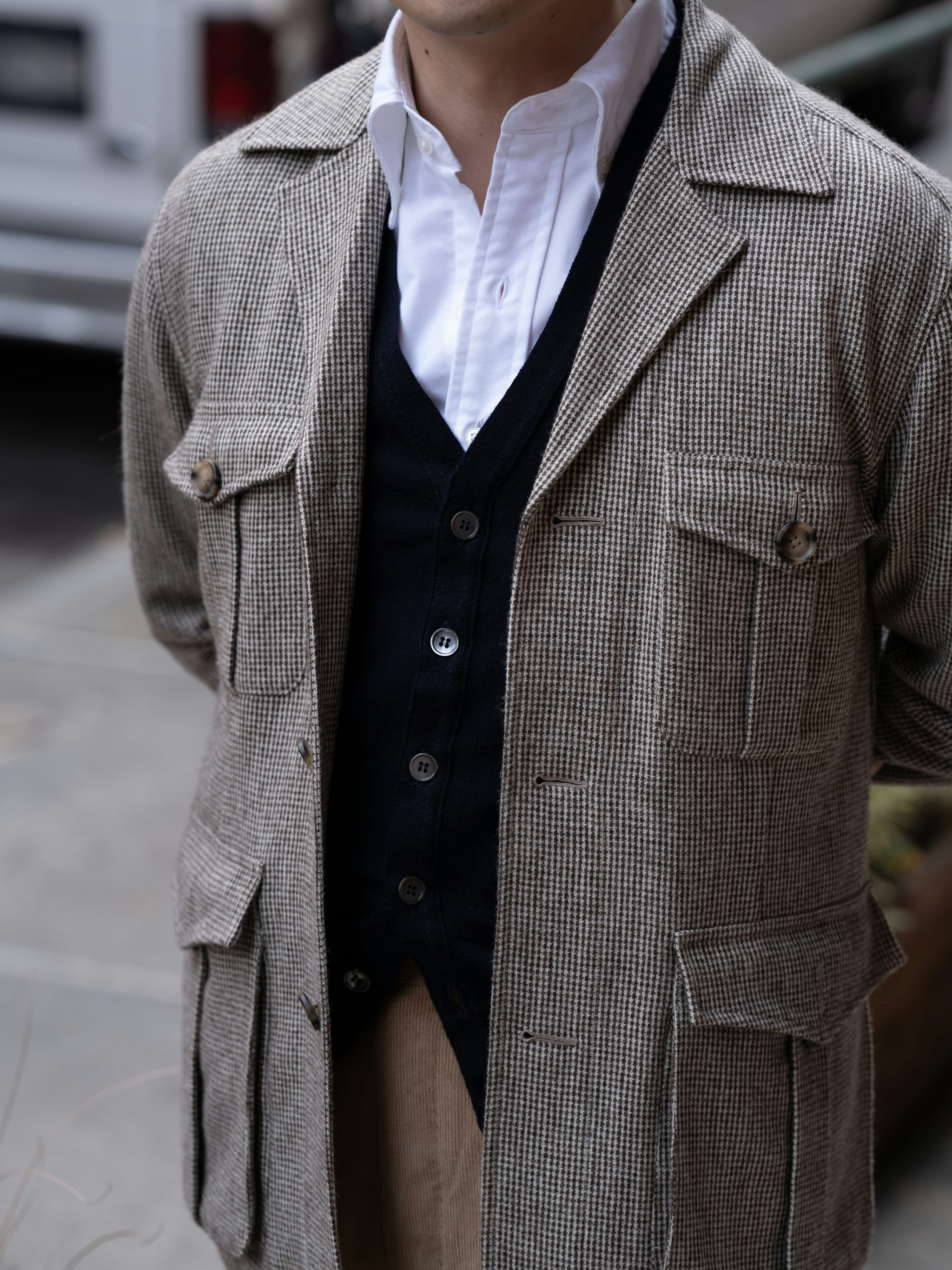 Marling & Evans is a fantastic source for those earthy brown wools. Mark chose brown & cream houndstooth for his new Safari II Jacket, and paired it with a pair of bespoke corduroy trousers by Pommella Napoli.