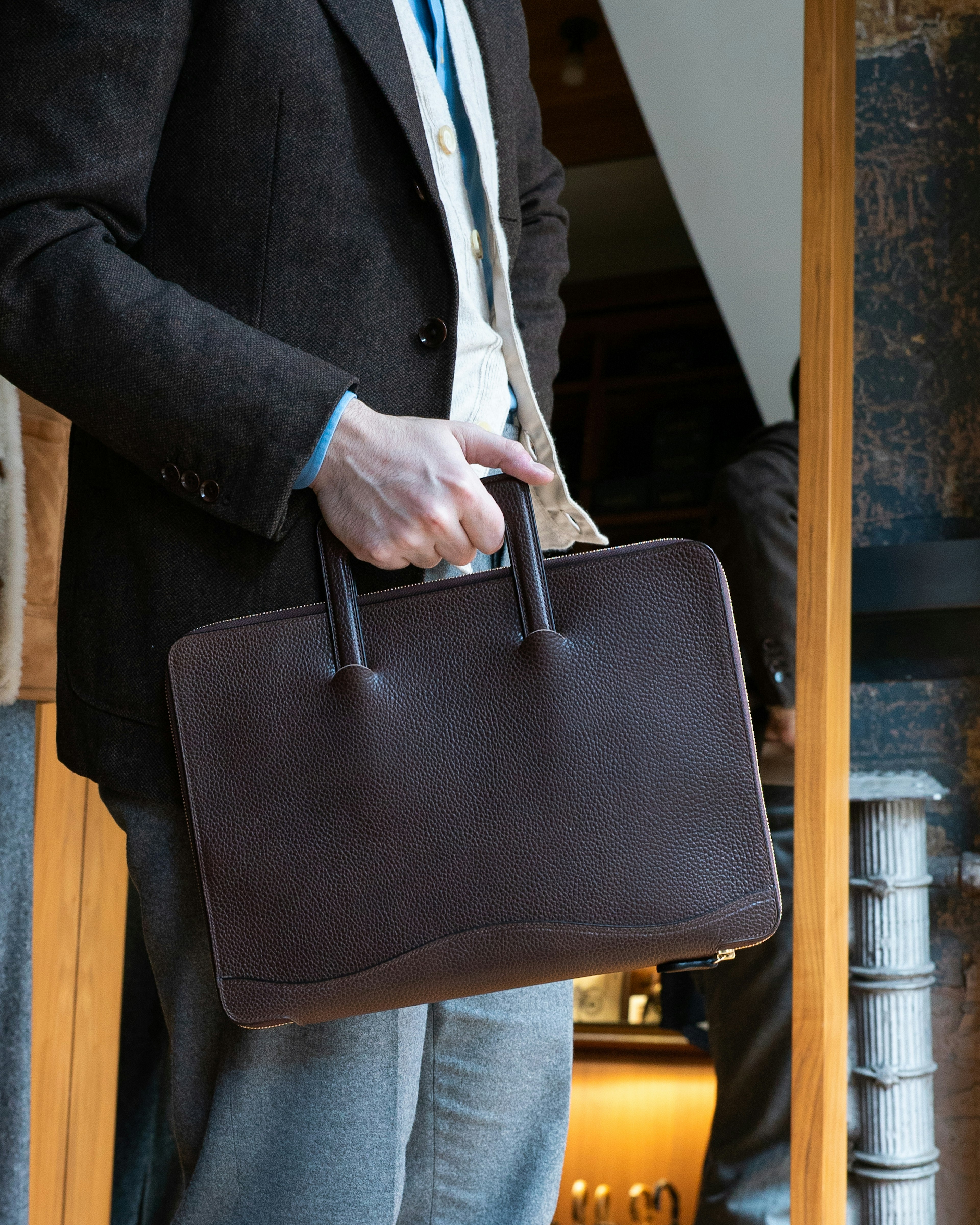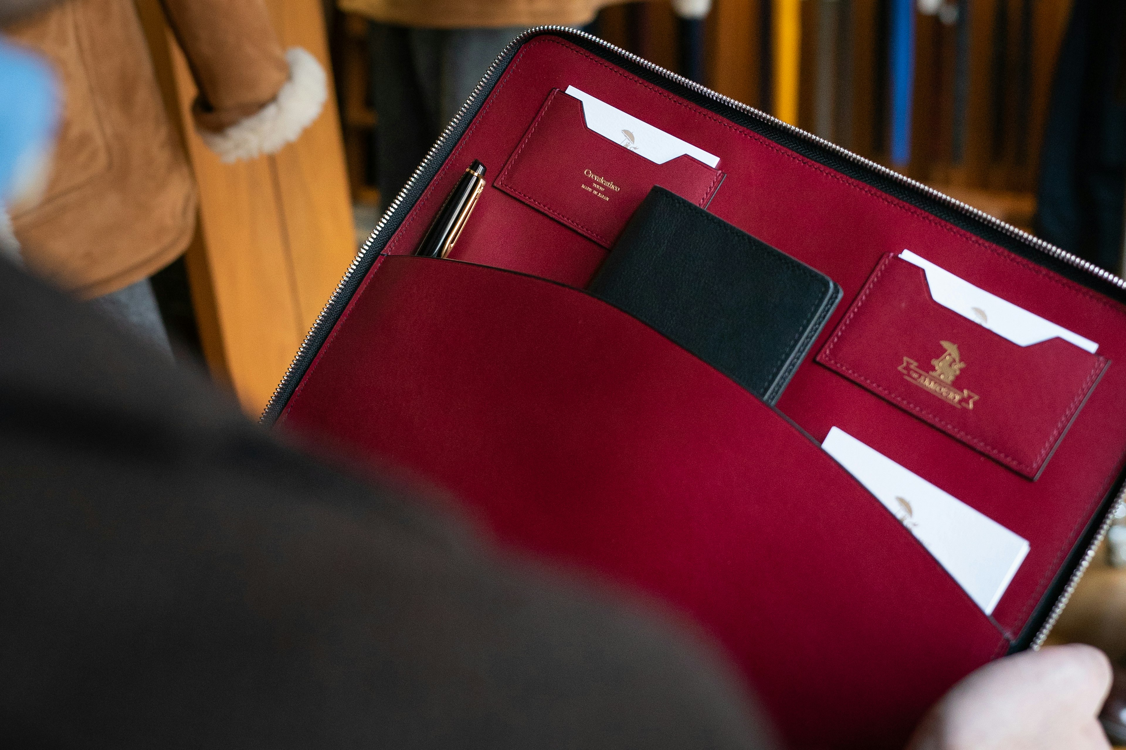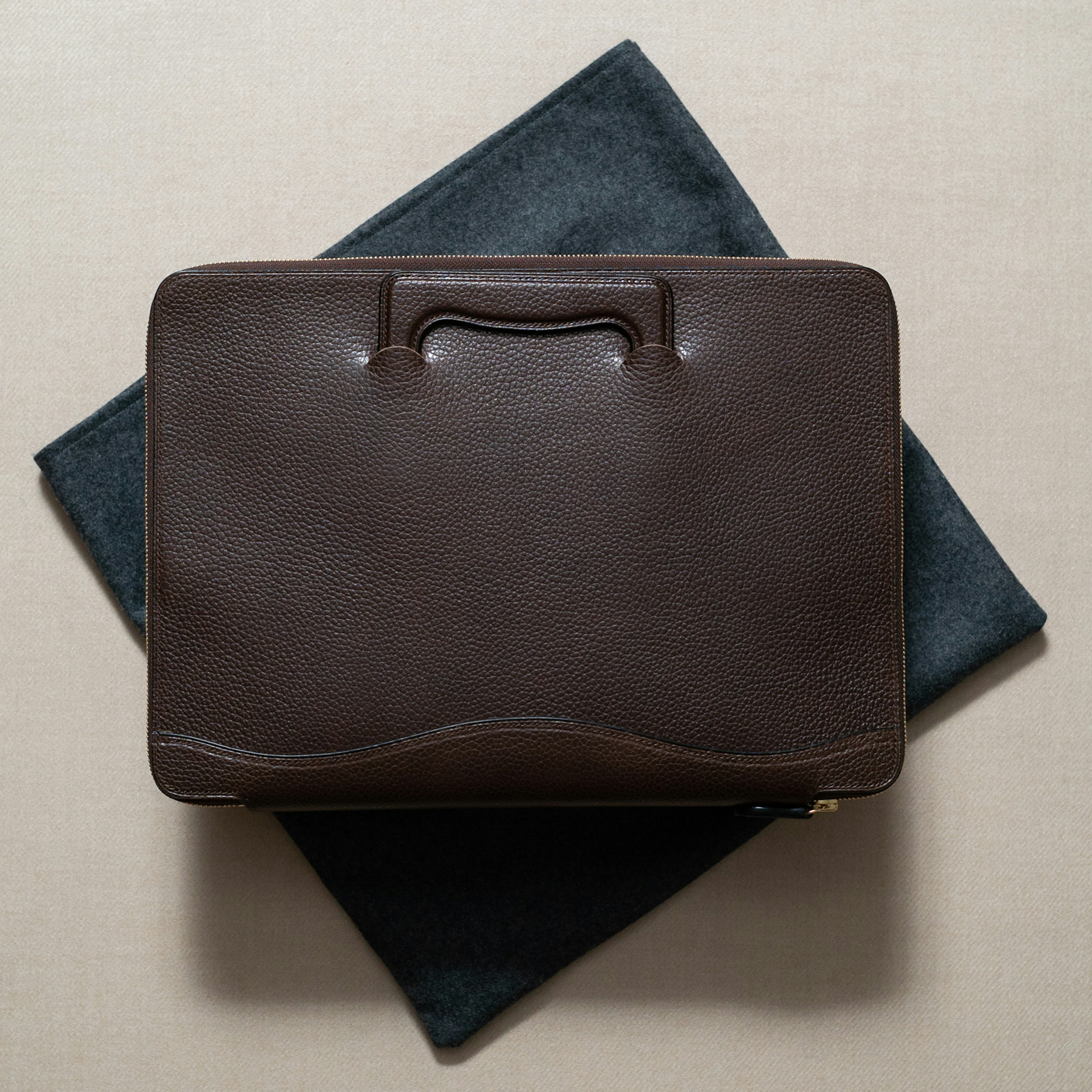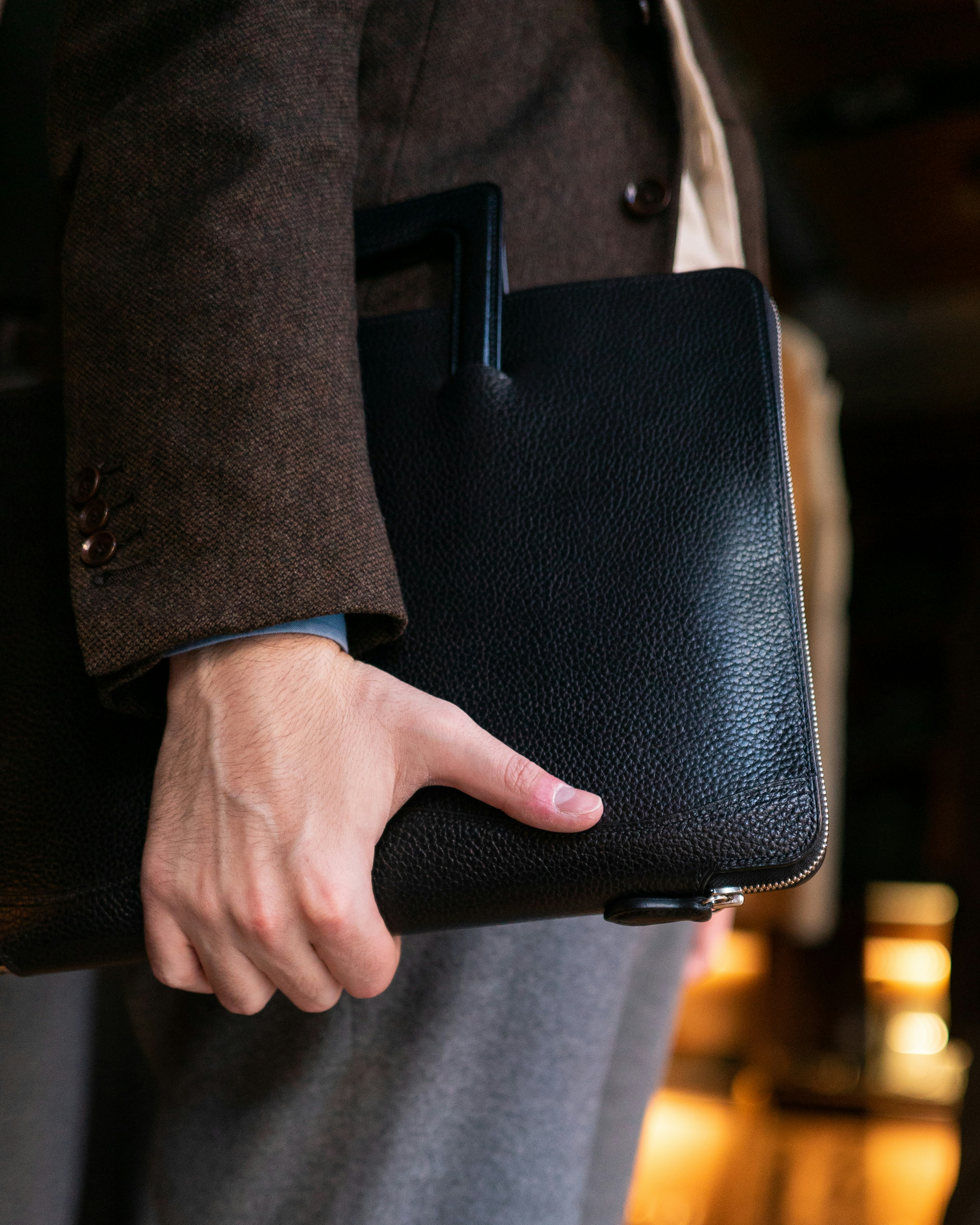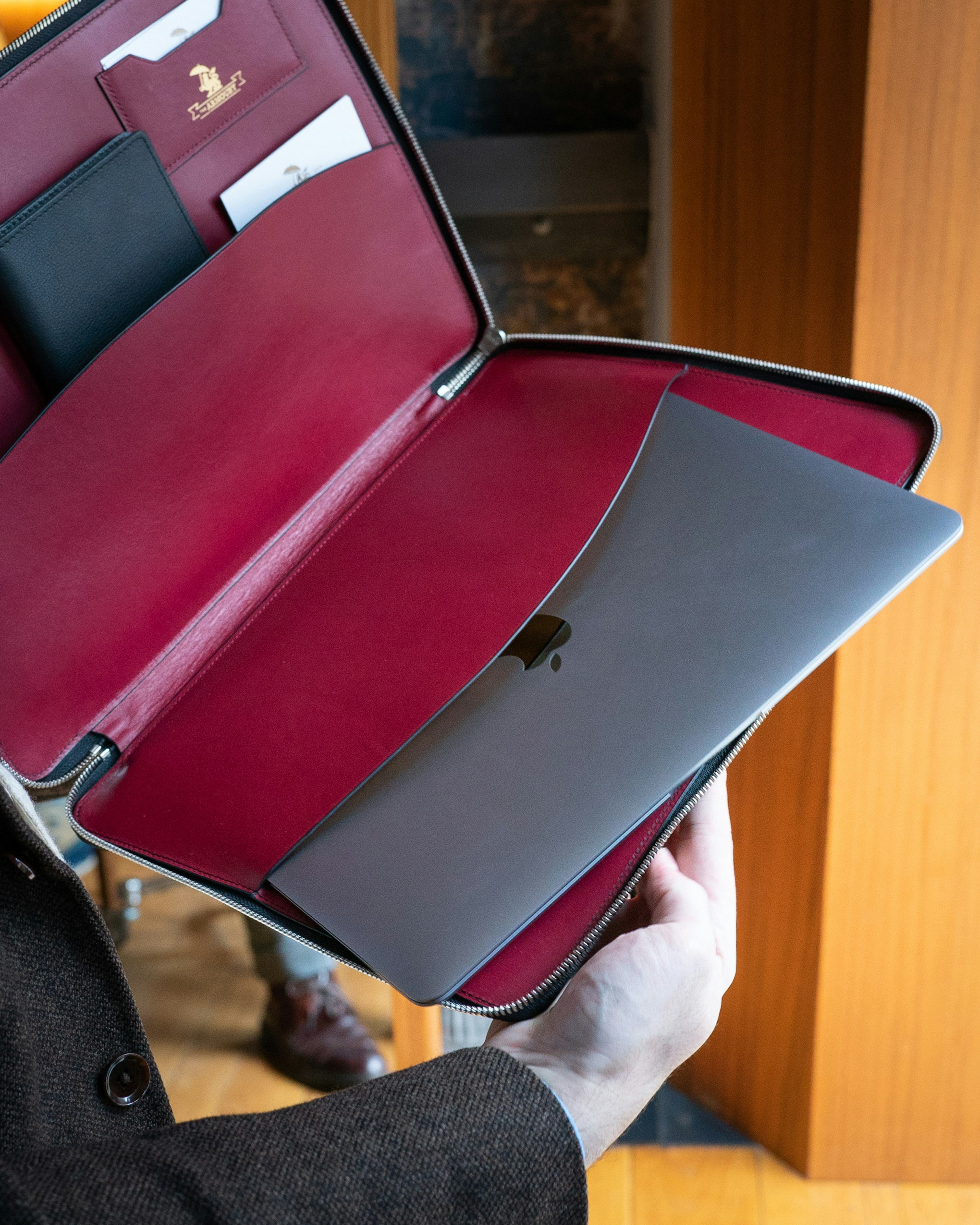 We collaborated with Crevaleathco on a document case that we think is just the right size, not too big and not too small. It features retractable handles and a magnetized zipper that keeps the tab from dangling.