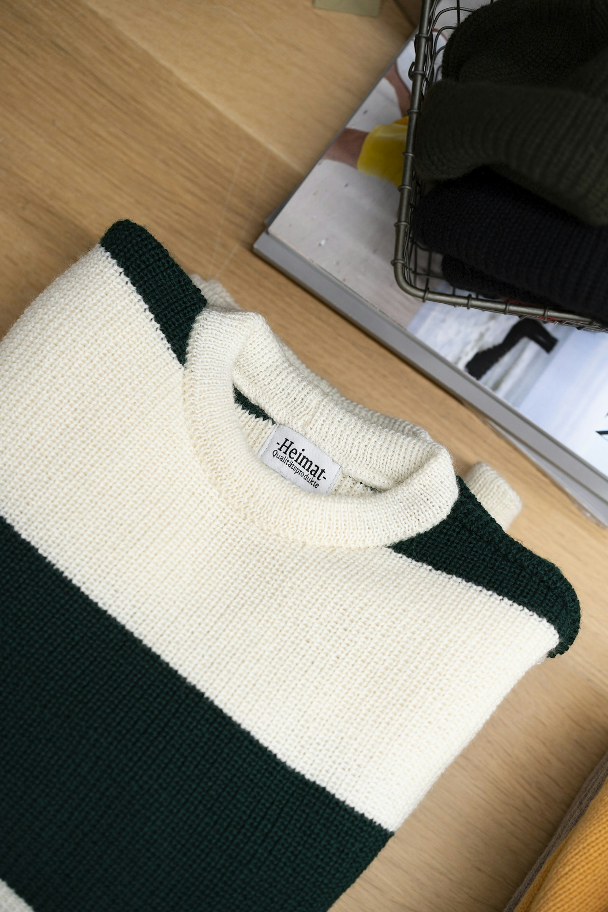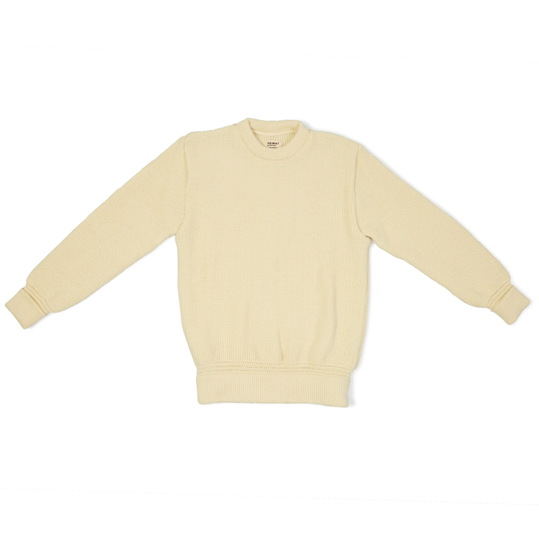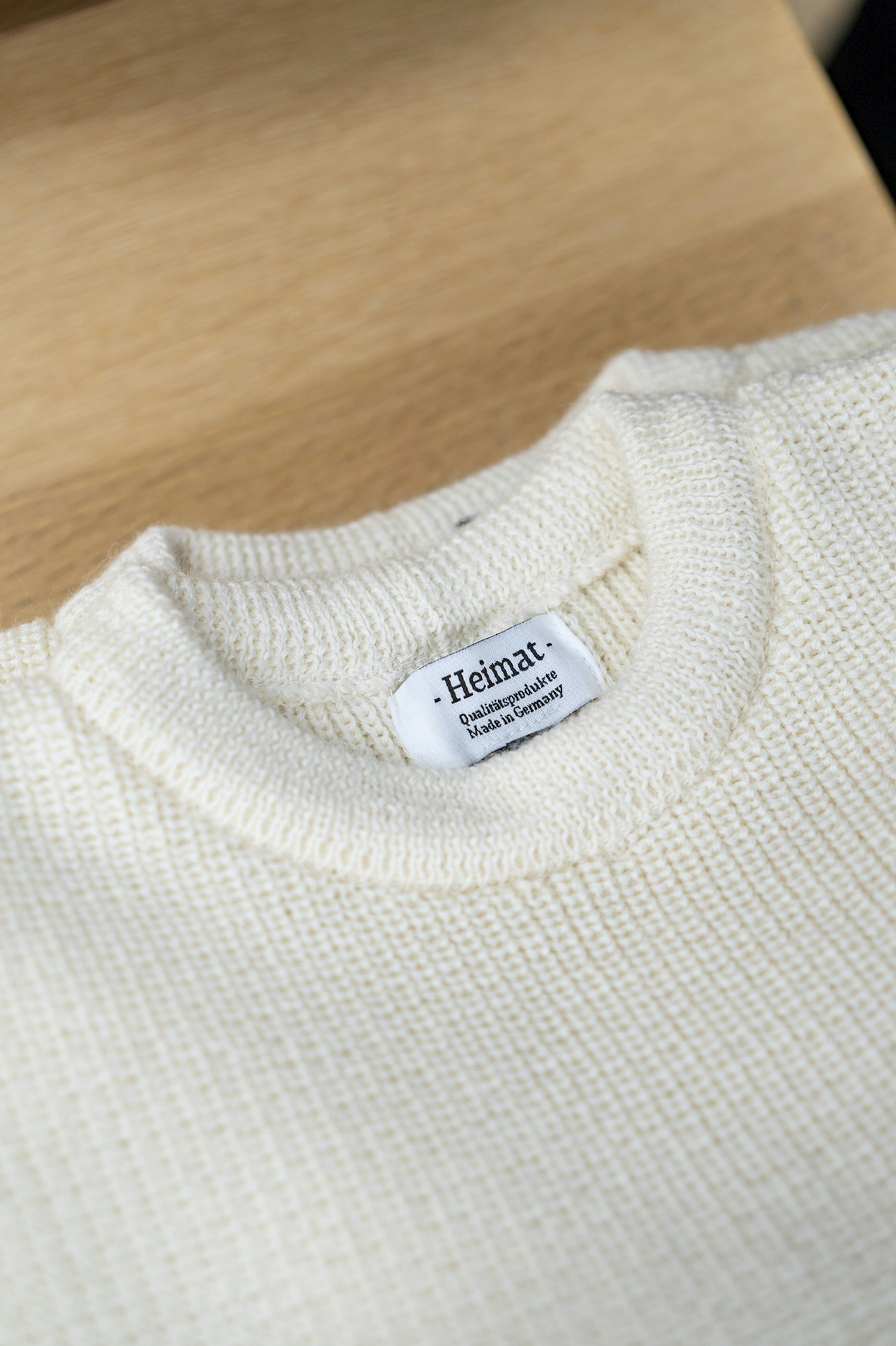 Heimat use traditional knitting machinery to create hardy knitwear from high quality yarns. All of their pieces are made in a small factory in Germany, famous for their high quality and attention to detail. Their silhouette is modern although they take inspiration from nautical references including classic U.S. Navy sweaters.