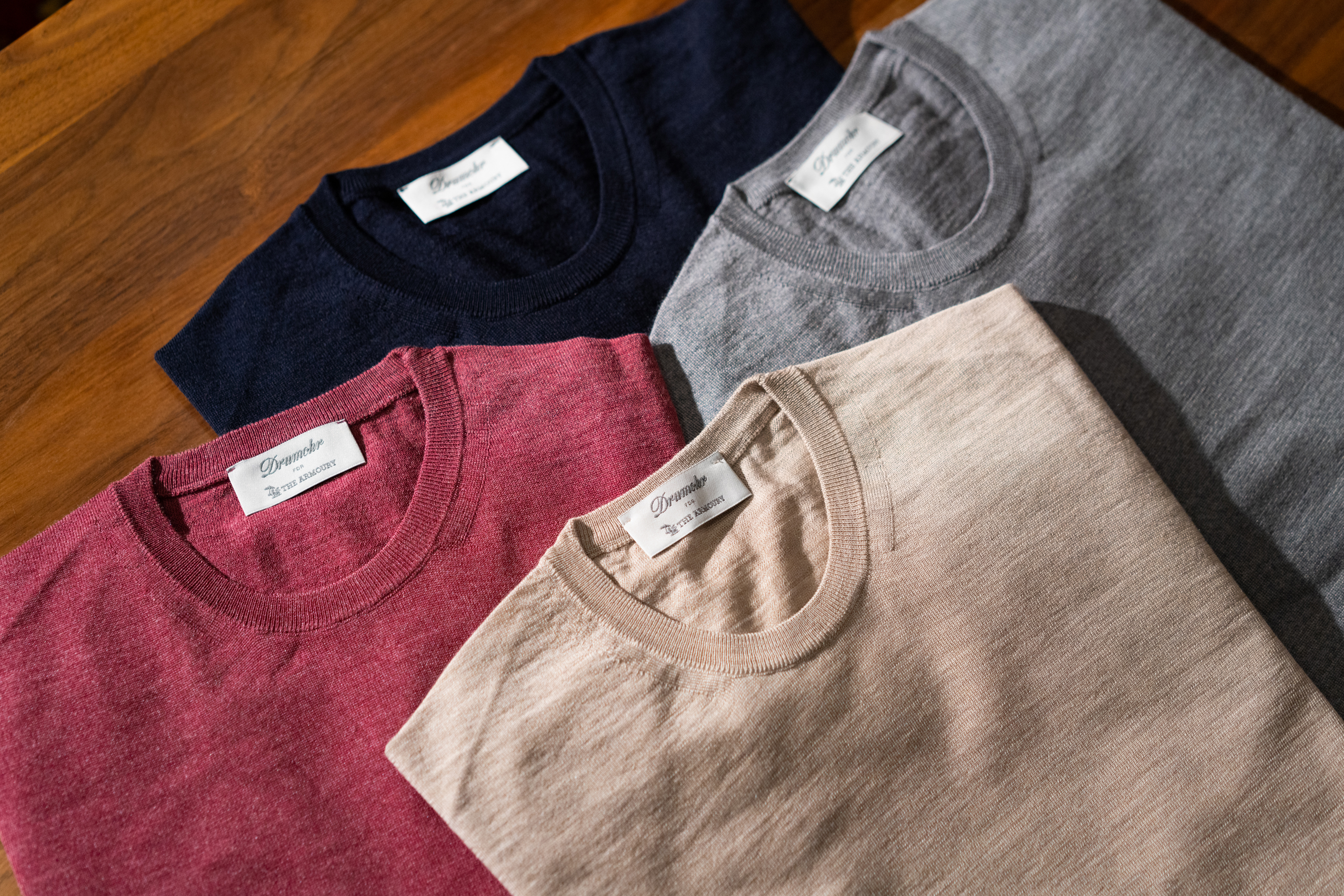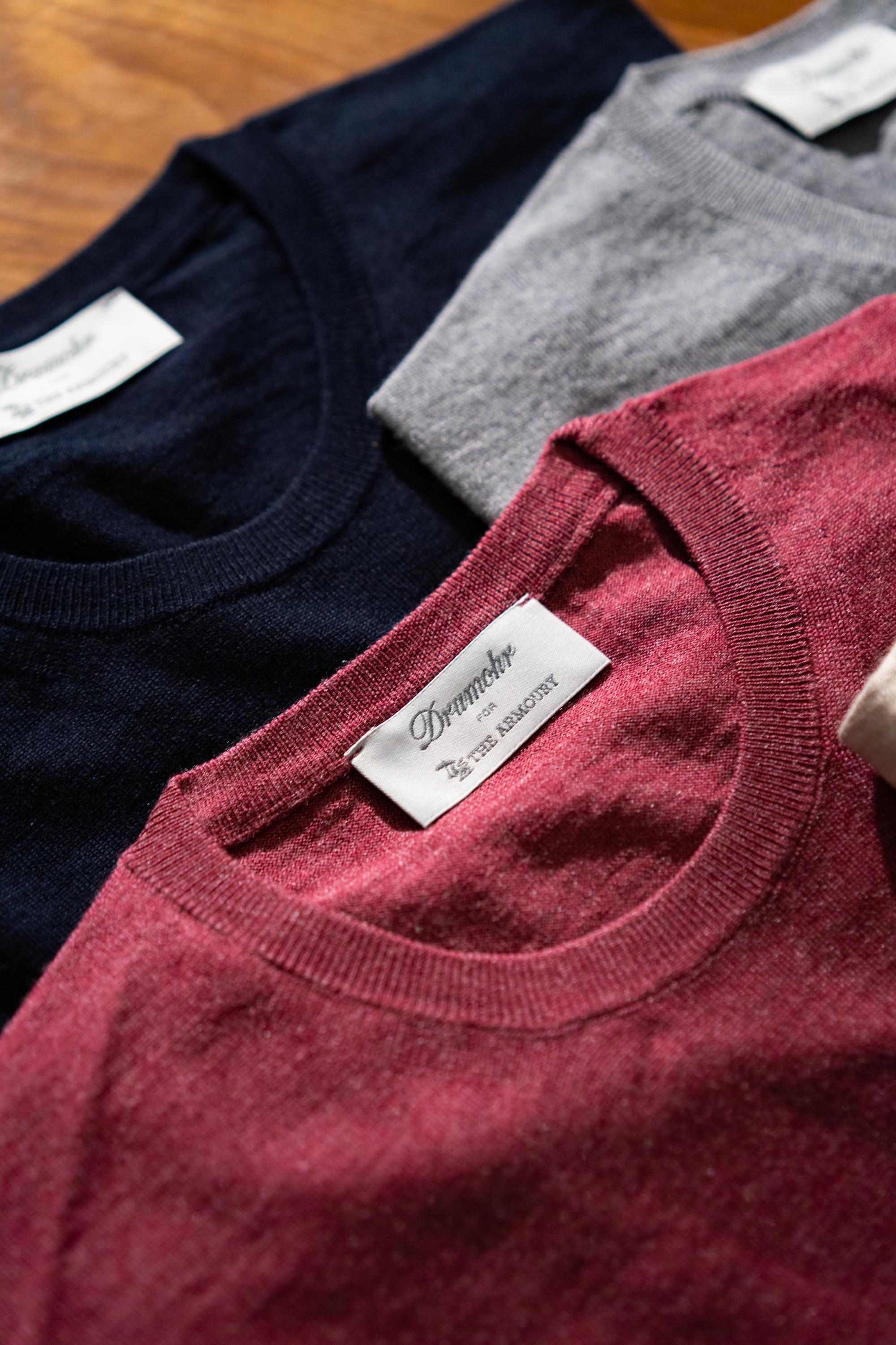 We developed our own line of knitwear in partnership with a historic Scottish mill. Each of our designs is exclusive to The Armoury, featuring specific details and refined fit which make them the perfect compliment to tailoring and casual outfits.