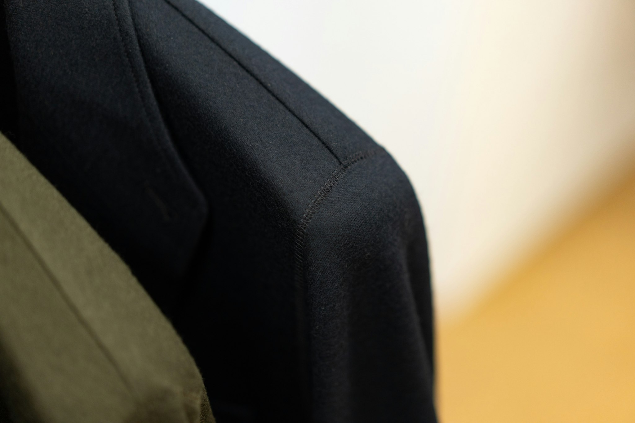 Our Japanese partners specialise in a special construction method which uses ’TPS’ seams. Instead of the seams being folded and overlapped for stitching, the ‘TPS’ process allows for the panels to meet edge-to-edge for an almost seamless look. When made up in the our specially sourced Japanese wool jersey, it is as comfortable as a jumper but looks as elegant as a tailored jacket.