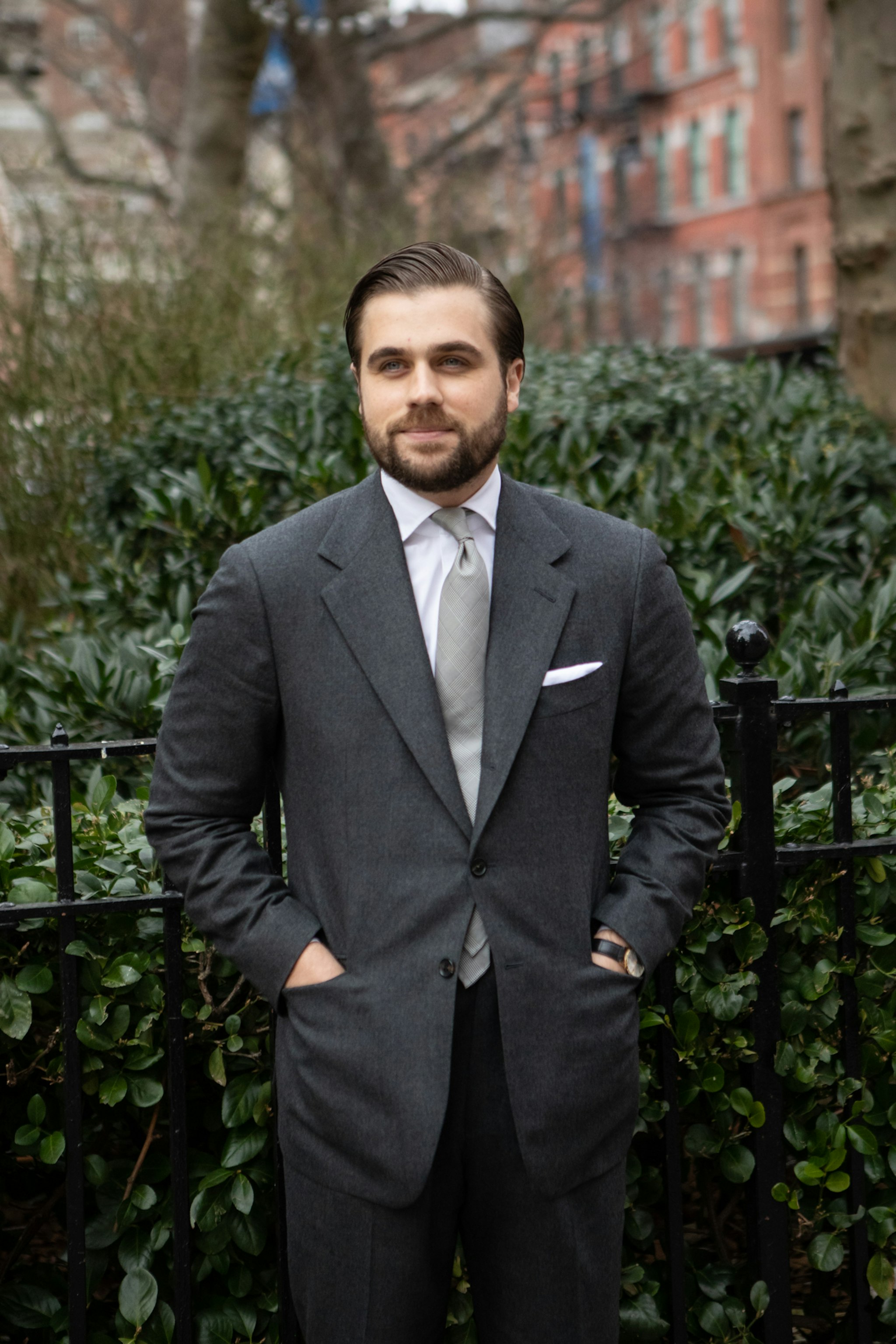 "I've been wearing soft tailoring by The Armoury for years, building a collection mostly consisting of sport coats. When I saw the new model 101, it seemed like a great chance to try something a bit more formal. I've been a fan of heavy fabrics from Dormeuil for years and this dense grey flannel was an obvious choice for the bitter New York winter."