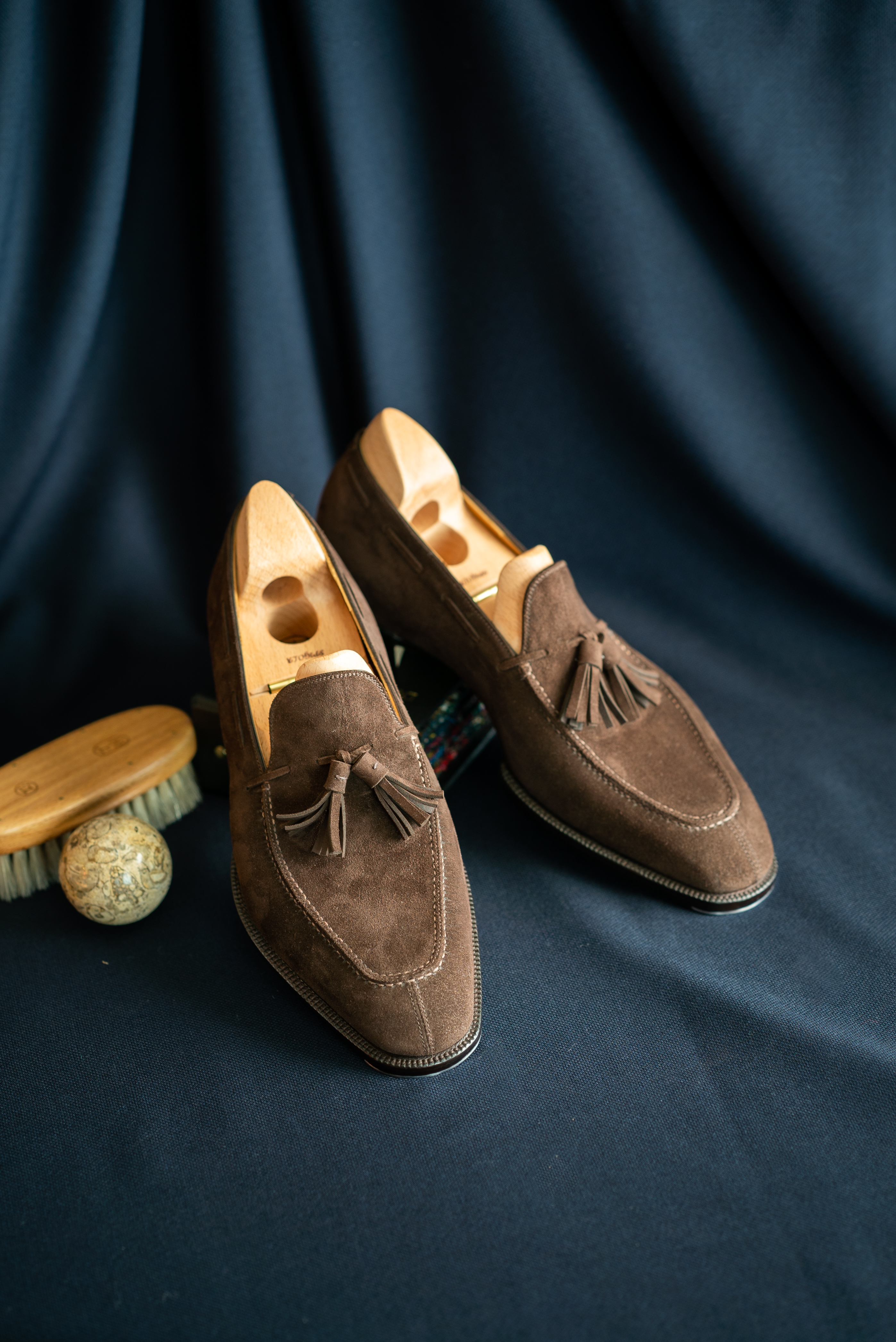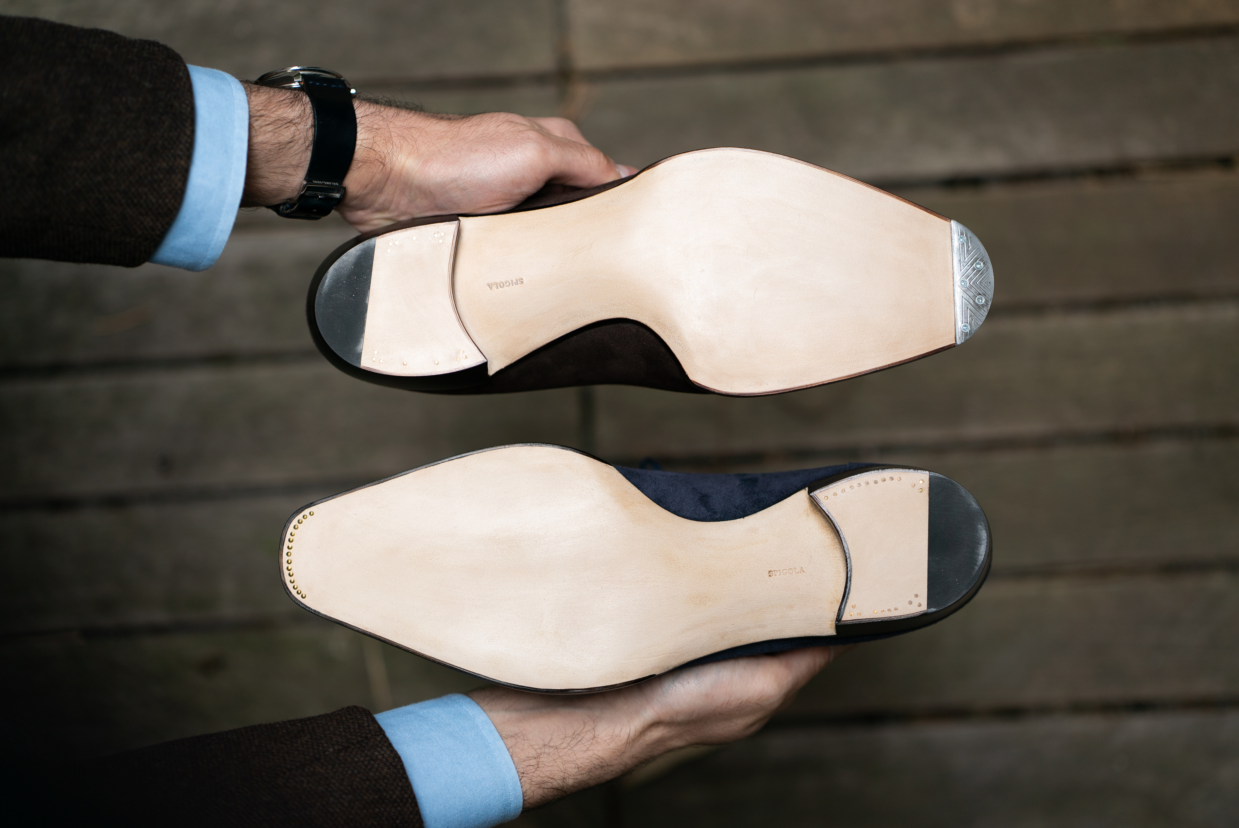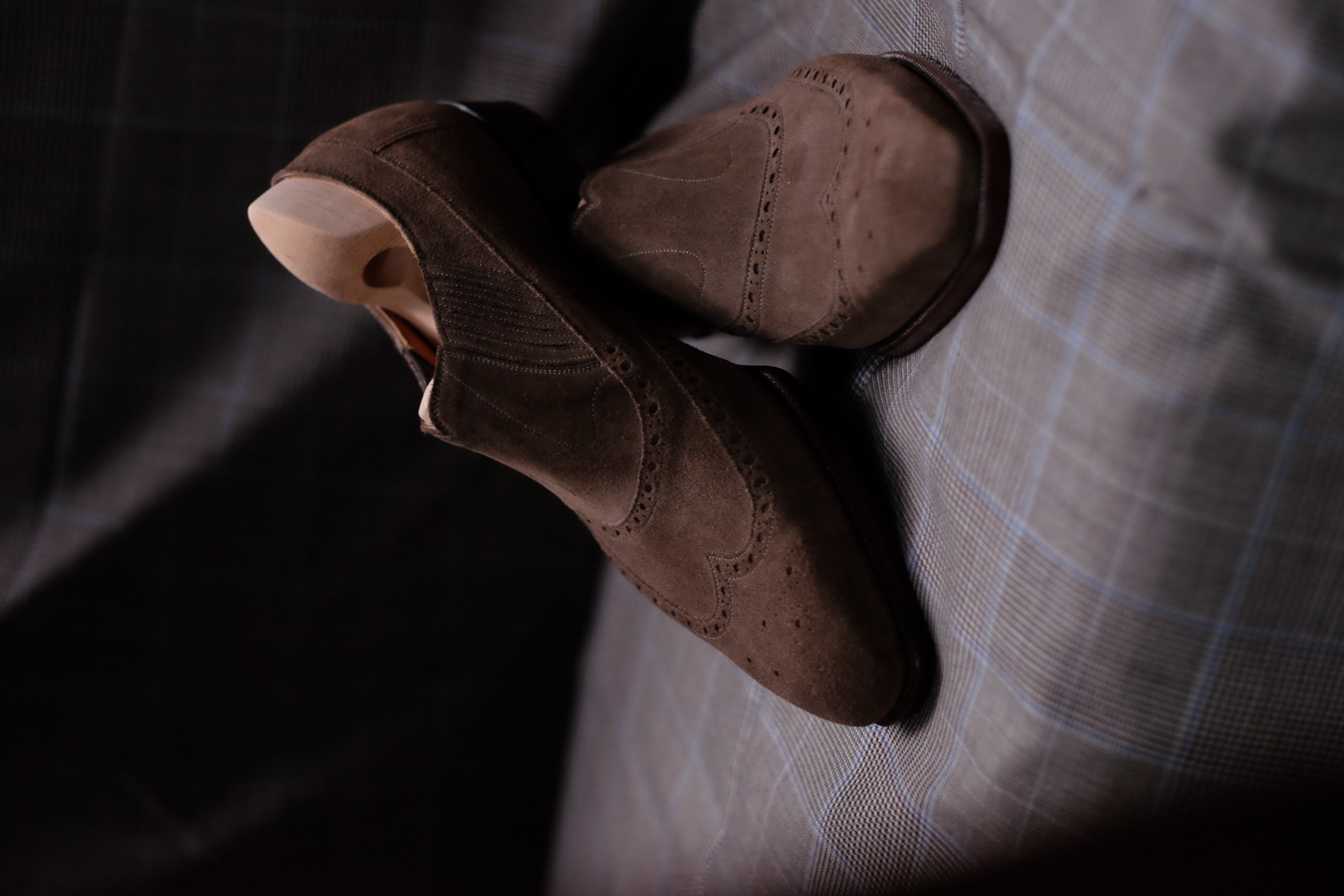 "I always recommend suede for a person's first pair of custom shoes, In shoes, millimeters matter in ways that would never be noticed in a suit. Customer feedback is also more important because a shoemaker can't feel out fit through the leather in the way a tailor can pinch through fabric. Suede has a little more give and lets you communicate any feedback to improve the next pair, while still letting you live through any minor fit imperfections that might come with a first custom pair."