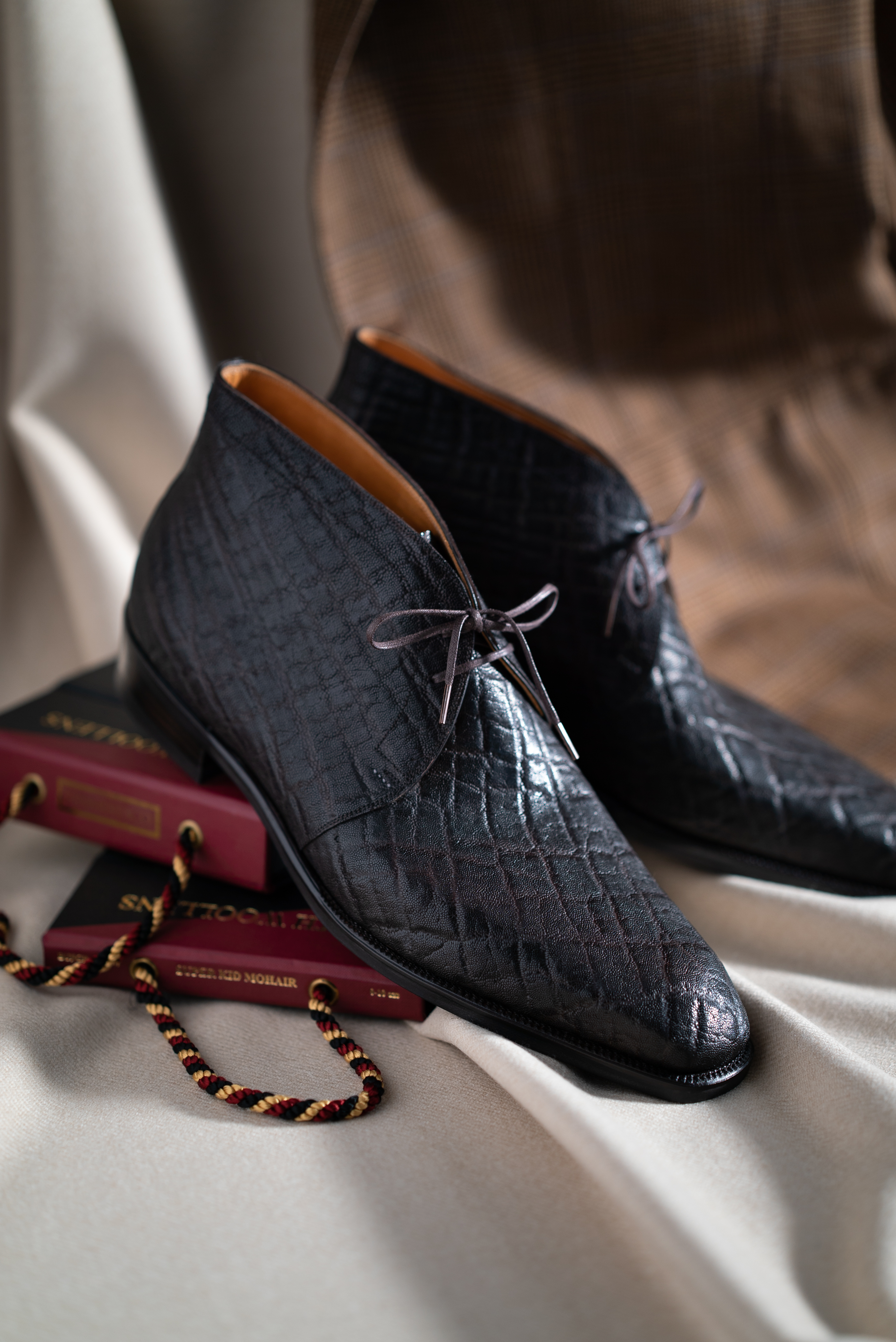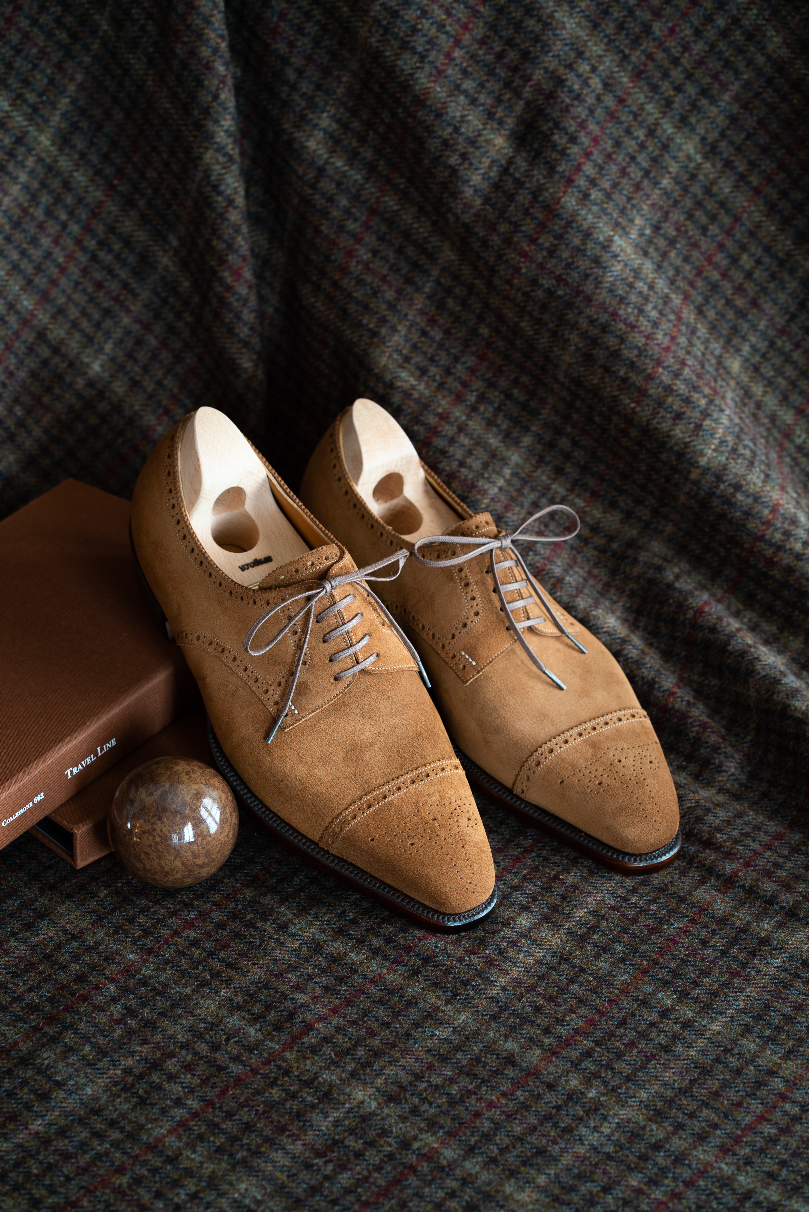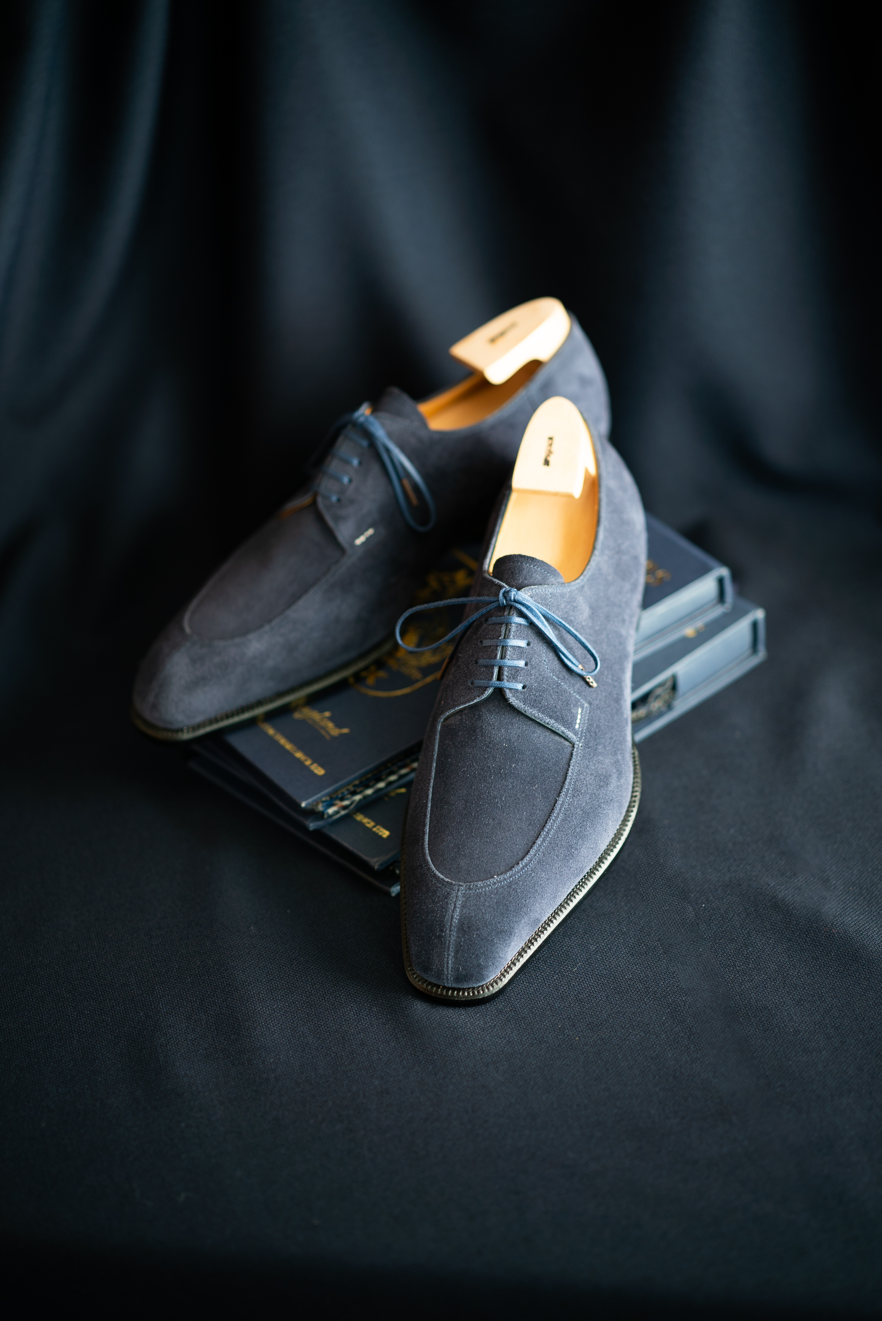"I always recommend suede for a person's first pair of custom shoes, In shoes, millimeters matter in ways that would never be noticed in a suit. Customer feedback is also more important because a shoemaker can't feel out fit through the leather in the way a tailor can pinch through fabric. Suede has a little more give and lets you communicate any feedback to improve the next pair, while still letting you live through any minor fit imperfections that might come with a first custom pair."