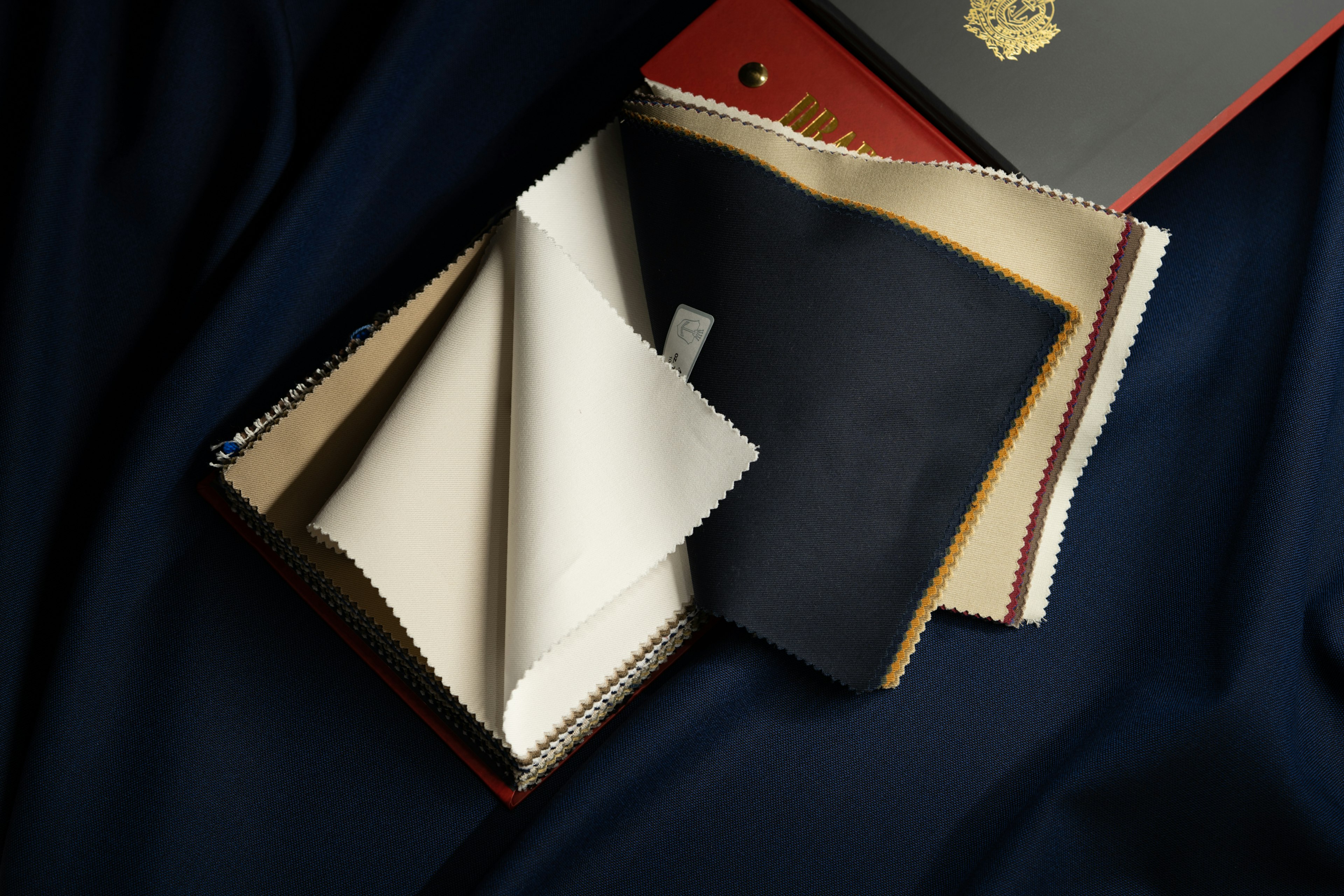 "I’m not saying they invented it, but The Ascot bunch from Vitale Barberis Canonico is a very good example of 2-ply and 4-ply. However, the real highlight is the 6-ply — this is a fabric for connoisseurs. At almost 500g it's heavy, but heavy doesn’t necessarily mean warm because it's a very dense yarn in an open weave. I was wearing my trousers in 18c (65f) and they were too cold for me. If you made an unlined jacket with that cloth then you can wear it until July here in Italy. After July no jacket can survive! It comes in 10 colors, they’re all brown, taupe or grey. I think it's beautiful."