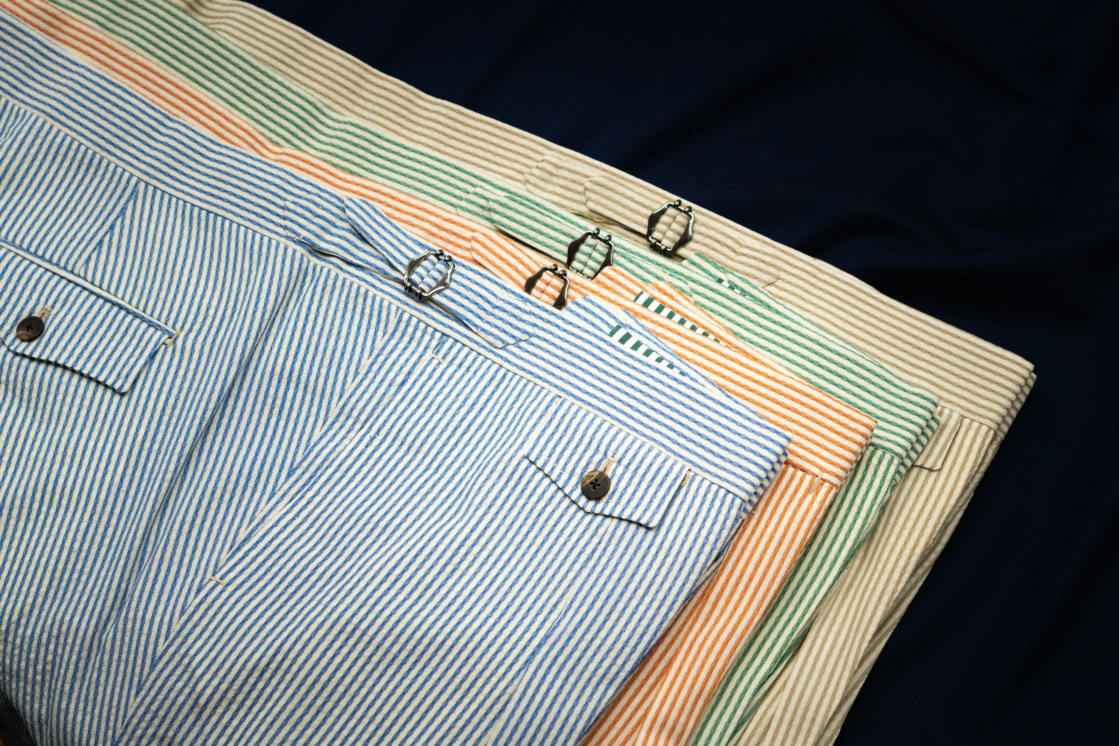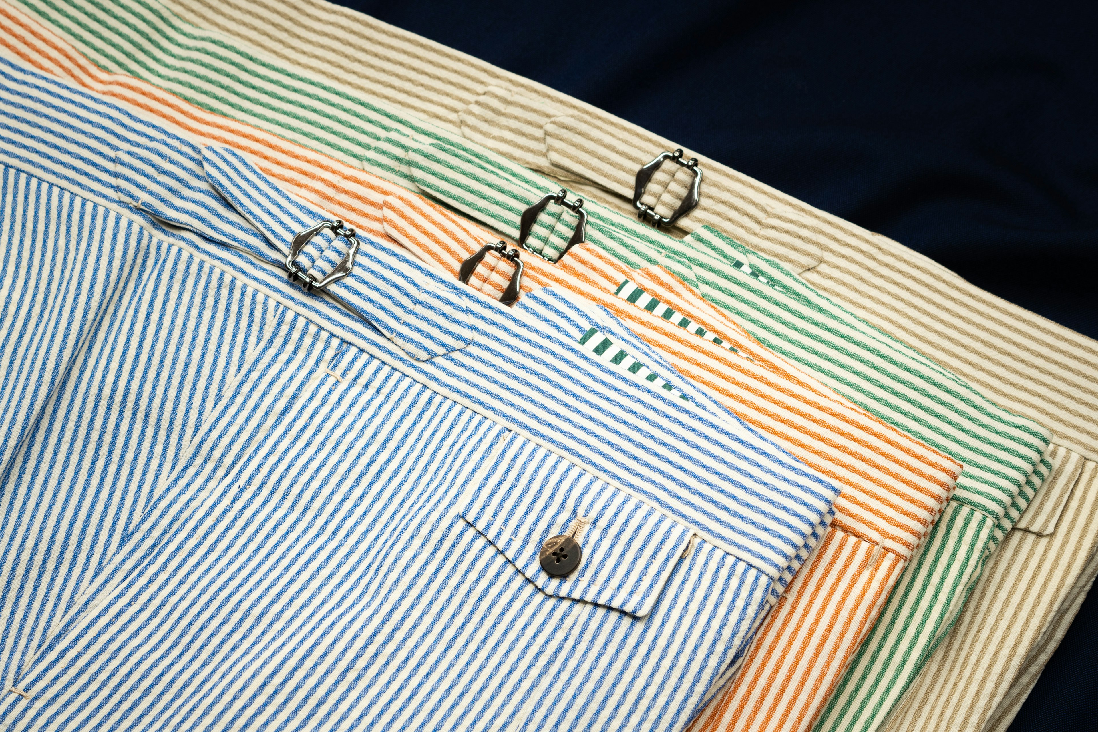 "Summer trouser have to be made from what I call a ‘nervous wool’ like the Ascot 2 or 4-ply. When you take the cloth and you pinch it in your hand it springs back out flat, as if it has some nerves! Try this with cotton or linen and you’ll have a cloth full of wrinkles. When you need to look more formal, go for these 2 to 4-ply wools. They look sharp and the biggest pleasure is that they breathe.
