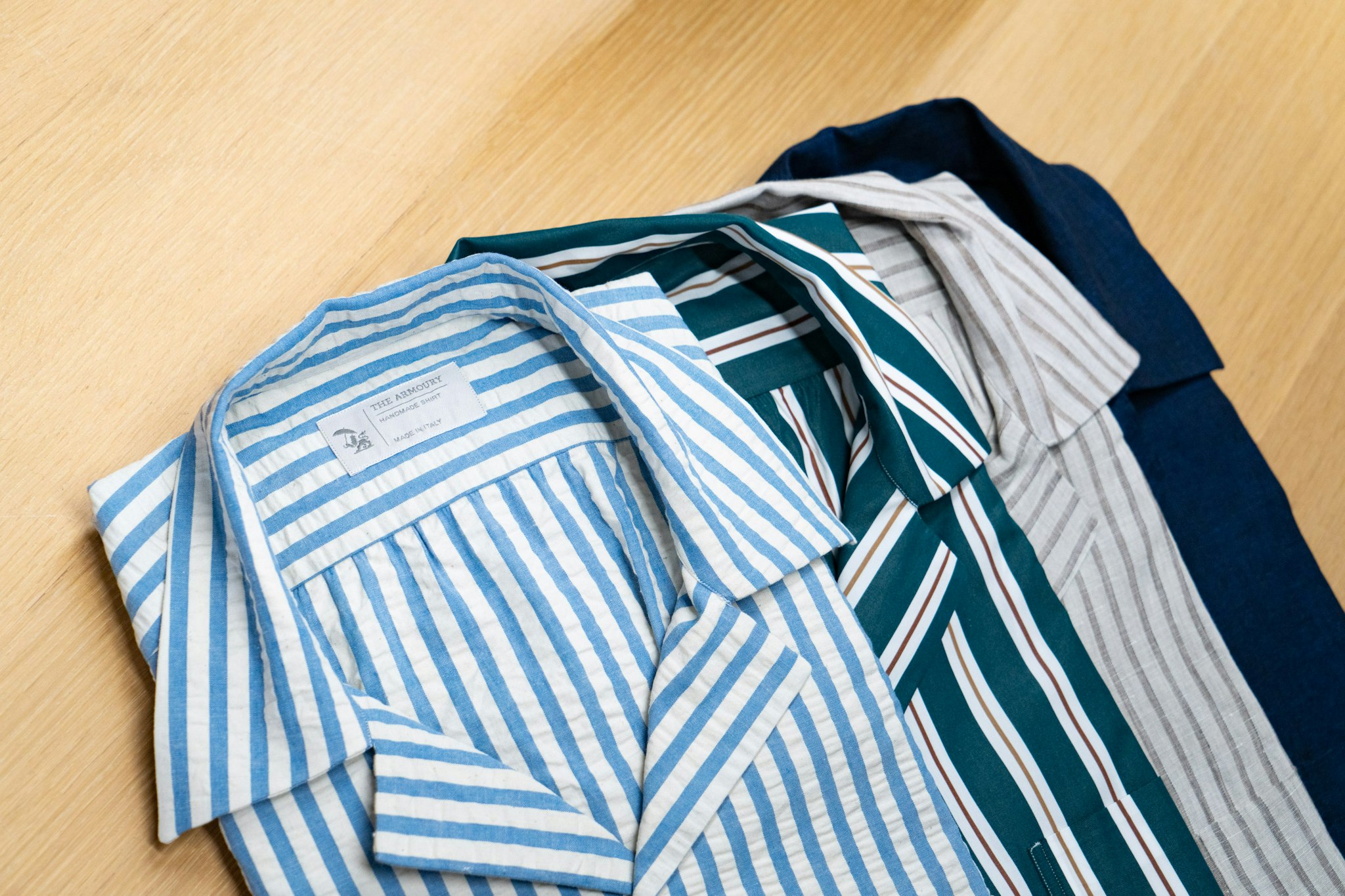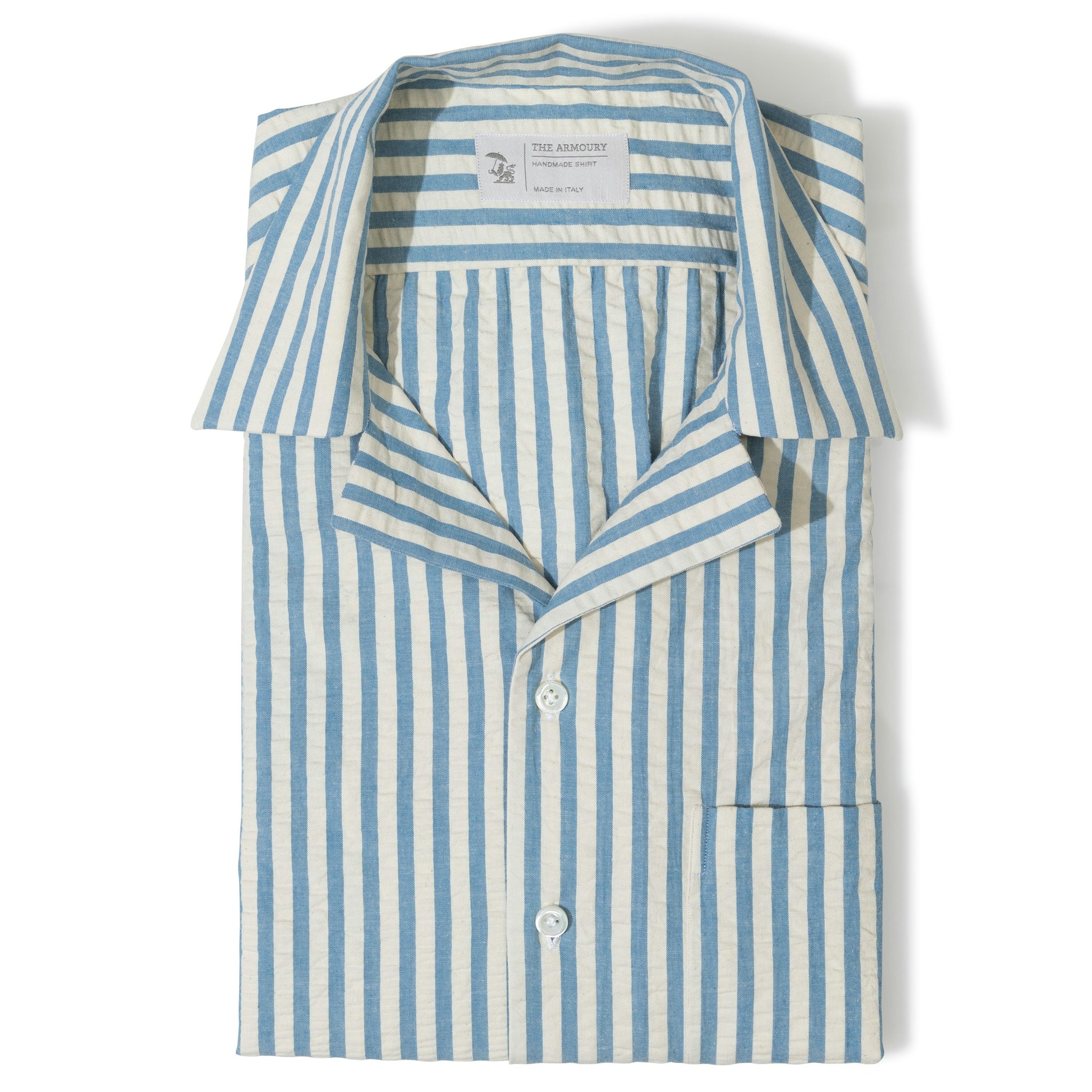 Hand made in Italy exclusively for The Armoury, the Summer Shirt features a generous one-piece collar, hand detailing, and is made in a selection of high quality fabrics.