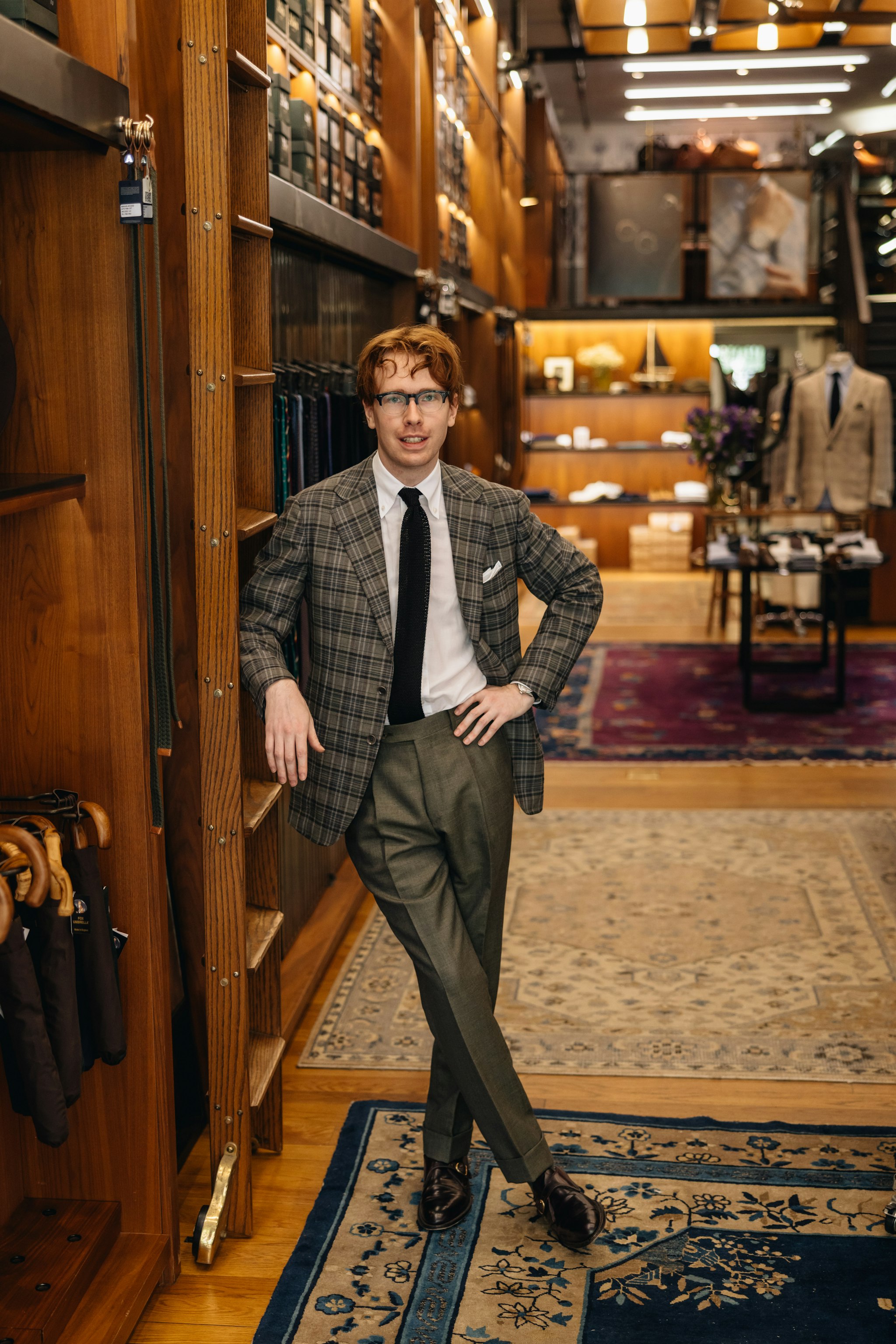 "Classic, American Ivy Style was one of the first kinds of tailored clothing I was excited about, and it's still a huge influence on the way I dress today. This Fox Brothers wool madras jacket reminded me of classic, heyday Ivy, so it became my first Armoury purchase when I started here a few years back. I went for understated '60s style with a black knit tie and cordovan shoes, plus fantastic trousers from this season in a very period-correct muted olive.