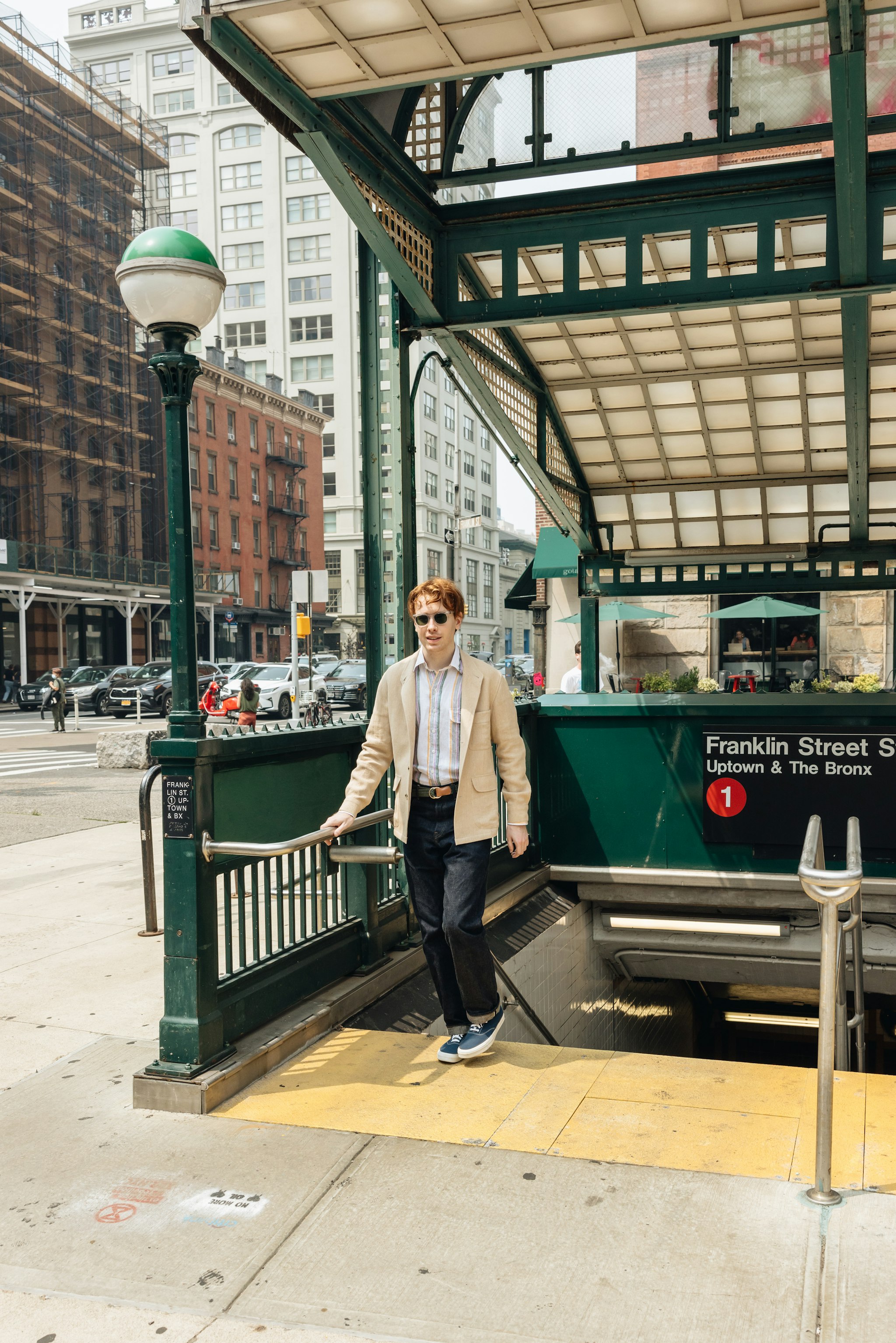 "When I worked for Drake's, I lived in checked jackets and blue jeans. Lately, I tend to break this kind of look out on wet days: no need to worry about losing the crease in the trousers if there was never a crease to begin with, and our navy polo is a nice alternative to a shirt and tie: it's almost the summer version of a turtleneck.