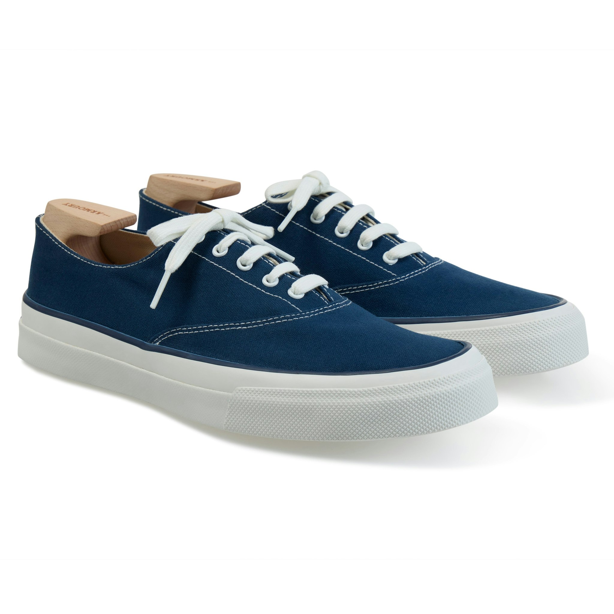 There's a little bit of a contradiction in this suit: I think of it as a bold experiment, because it's a bit fuller than our typical Model 101, but then again it's navy pinstripes in English wool high-twist, so about as conservative as you can get."