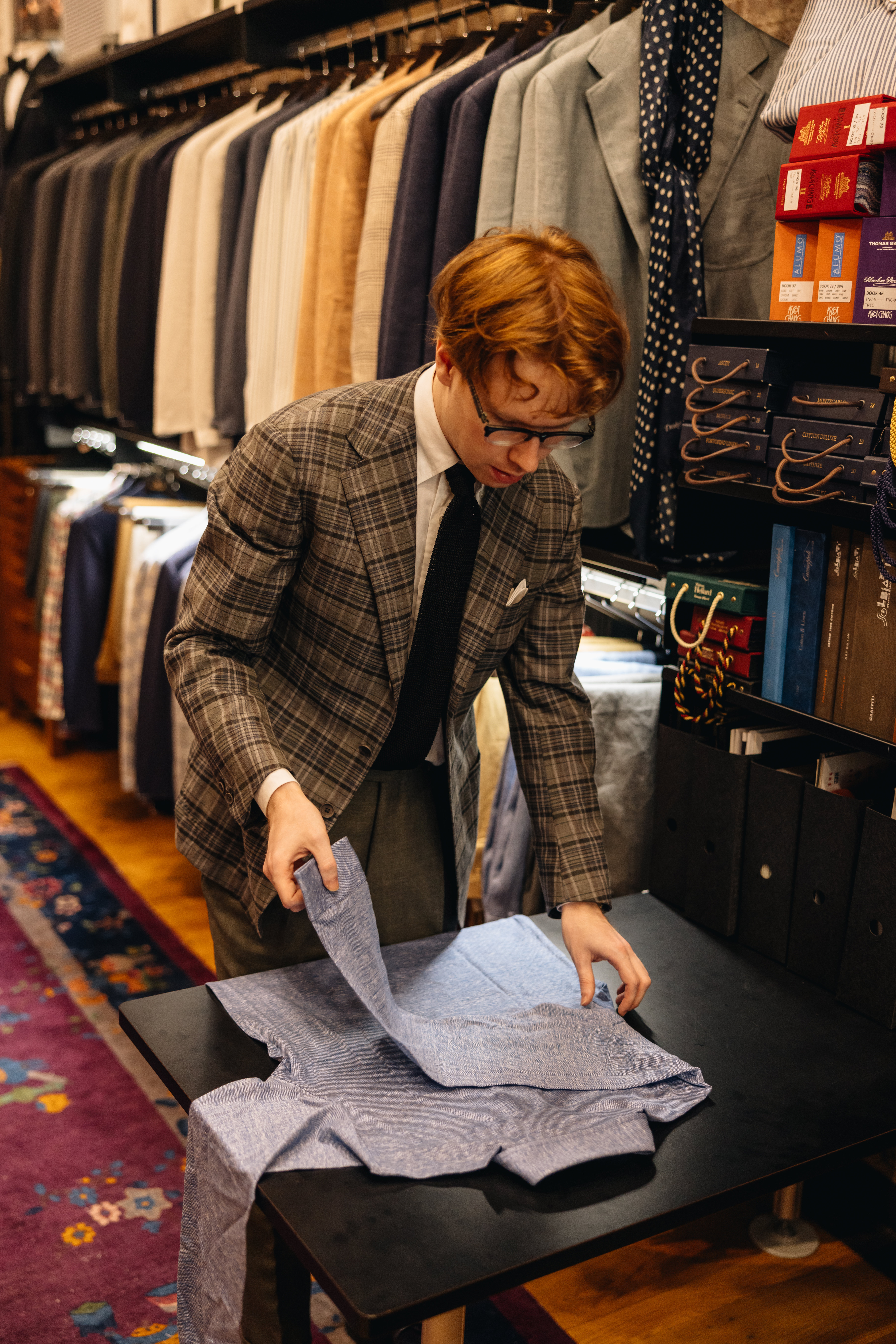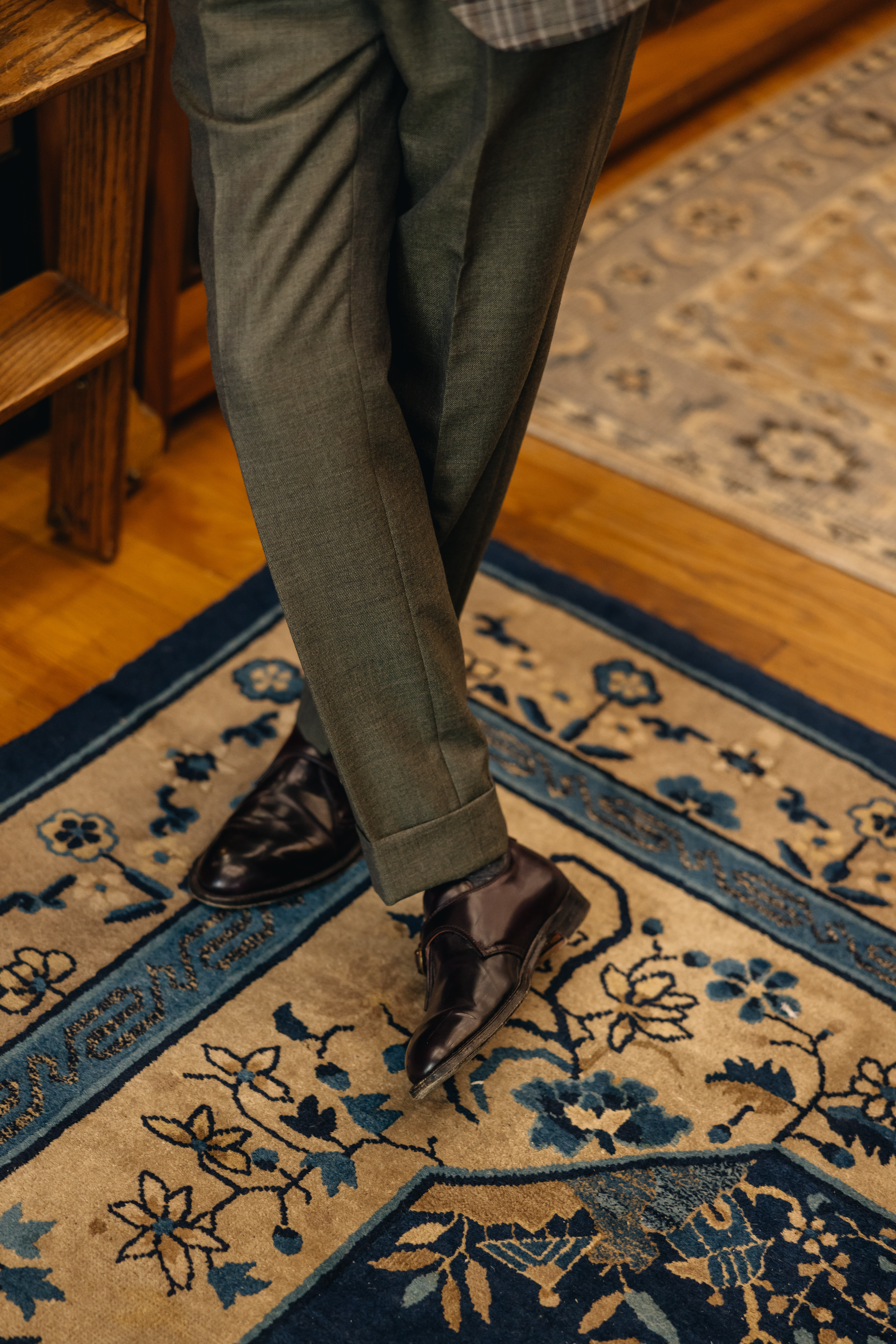 "Classic, American Ivy Style was one of the first kinds of tailored clothing I was excited about, and it's still a huge influence on the way I dress today. This Fox Brothers wool madras jacket reminded me of classic, heyday Ivy, so it became my first Armoury purchase when I started here a few years back. I went for understated '60s style with a black knit tie and cordovan shoes, plus fantastic trousers from this season in a very period-correct muted olive.