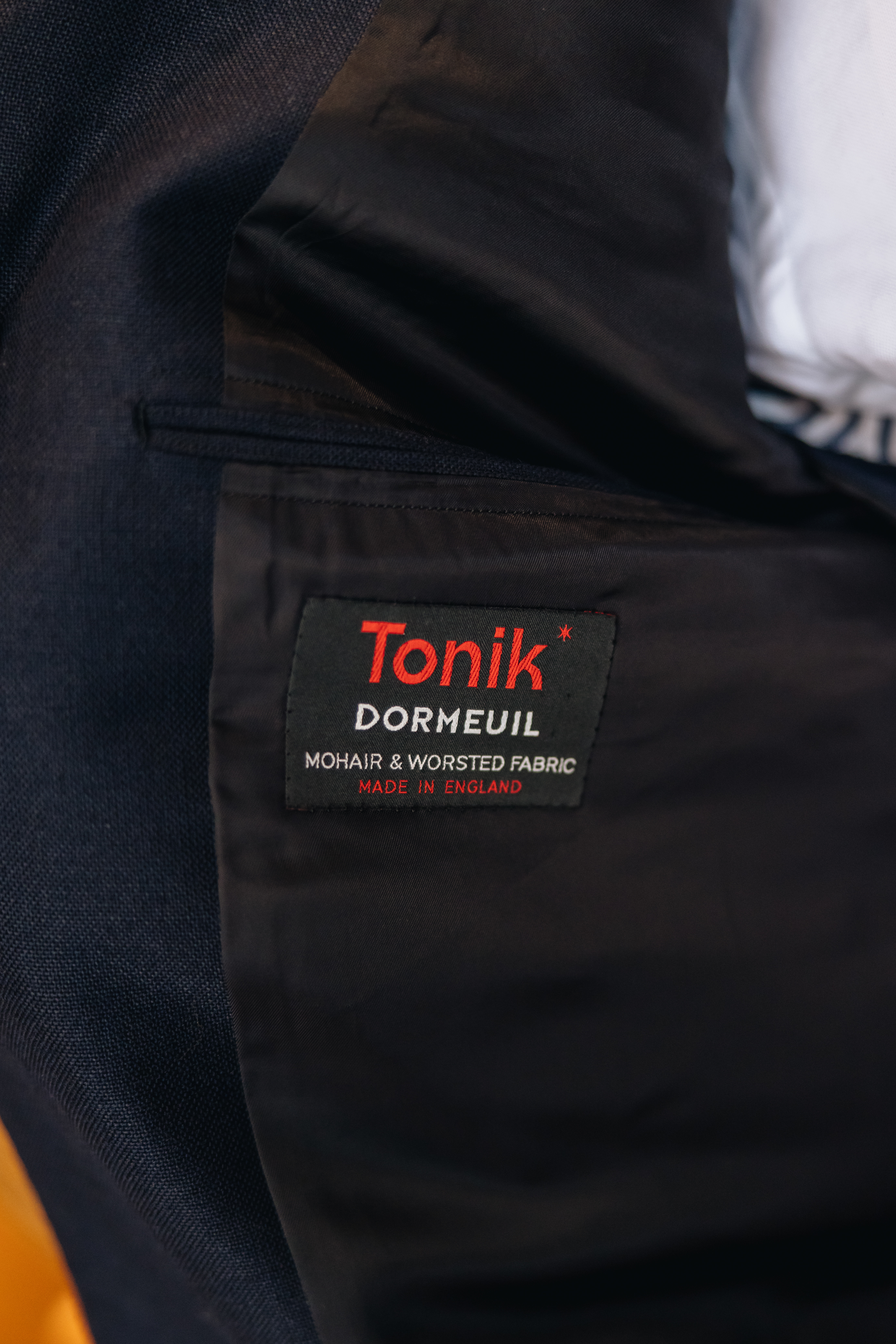 "For the world’s leading bespoke tailors Dormeuil’s Tonik is the top tier of mohair blend fabrics. The hand is crisp and dry, the drape robust, the color deep and vibrant. Tailor Caid’s eye for detail including his signature self belt combined with this material makes for a truly four season garment, and not just because I don’t want to stop wearing it."