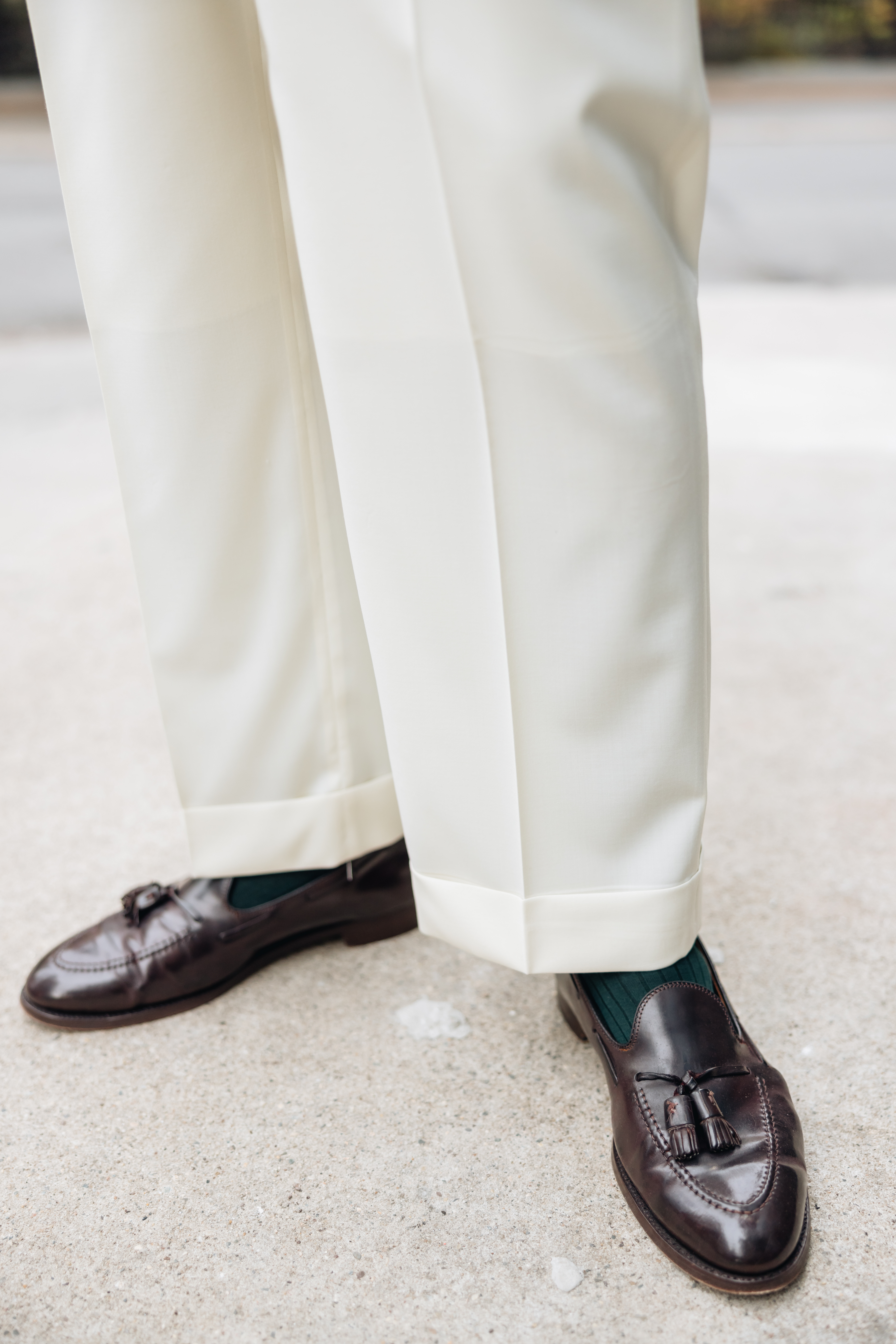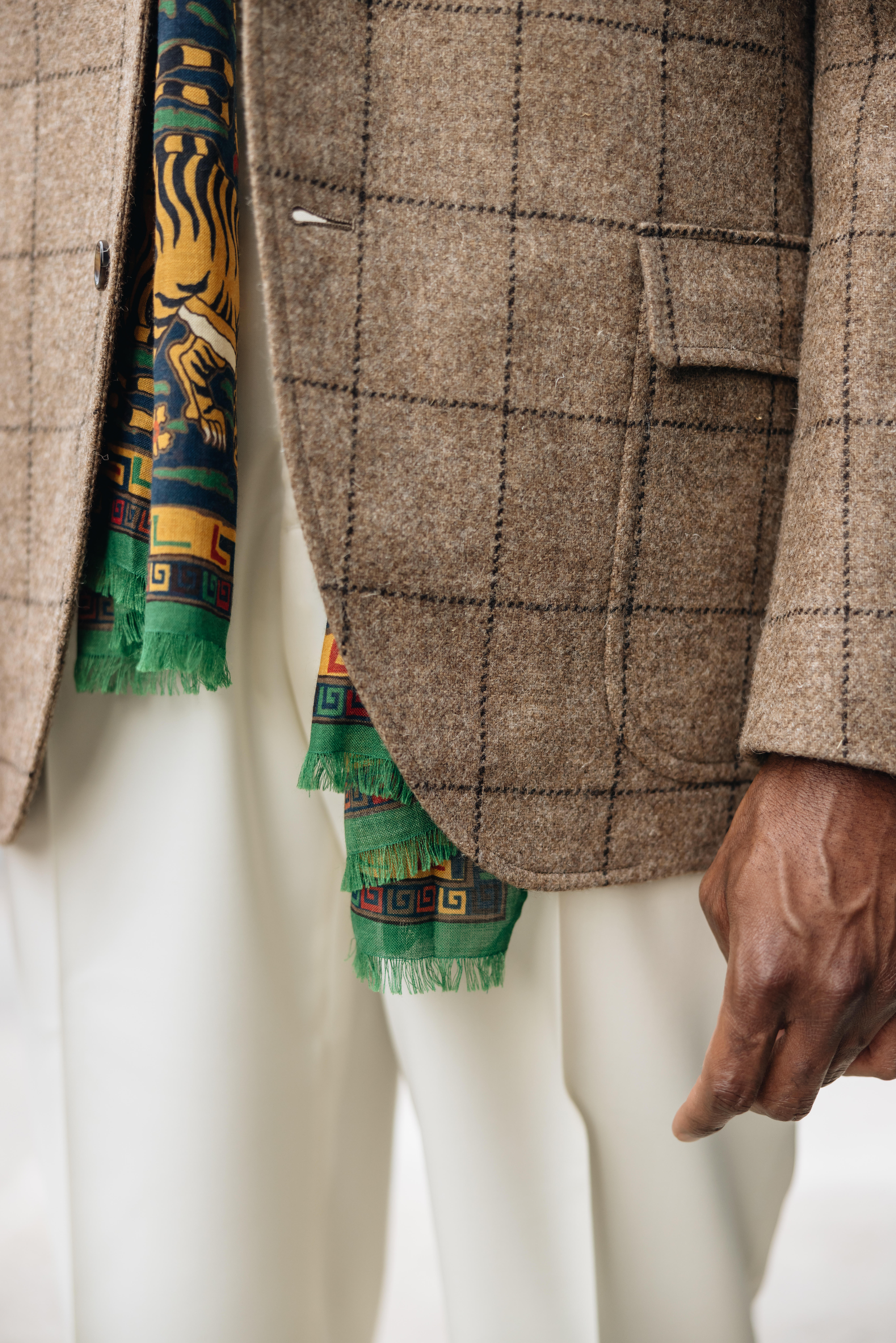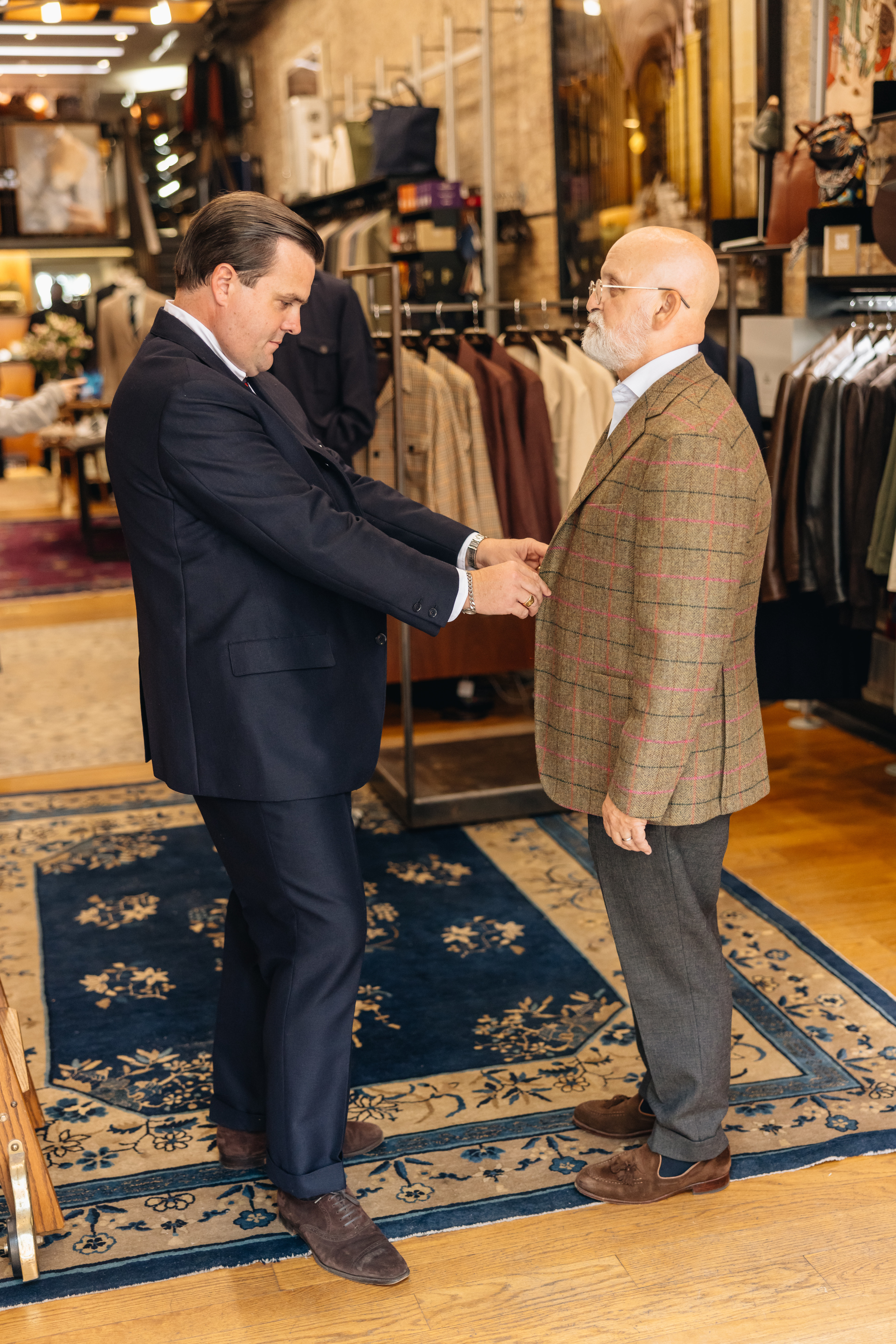 "If you want something that evokes American style during the 50s-60s in the ivy/trad aesthetic you go with Tailor Caid. Being my first commission, I went with a classic undyed wool from Marling & Evans, in an elegant brown windowpane. I wanted the 'house special' and went with the Ivy model that speaks to what I was looking for."