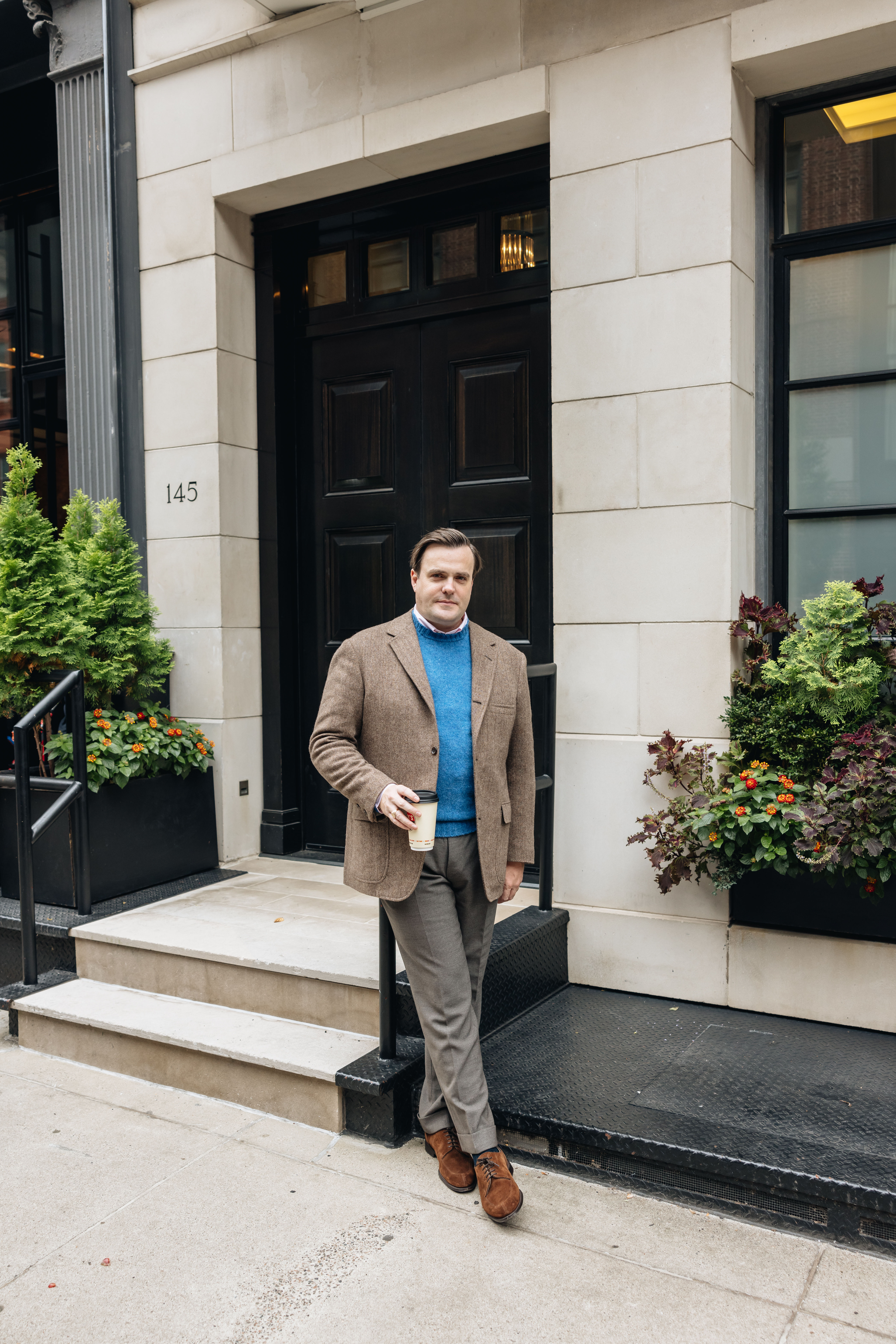 "Magee of Donegal has a great history of making softer Irish tweeds for campus tailors. Heavier tweeds have their season, but this lighter fabric makes for an ideal transitional piece, as well as layering without overheating."