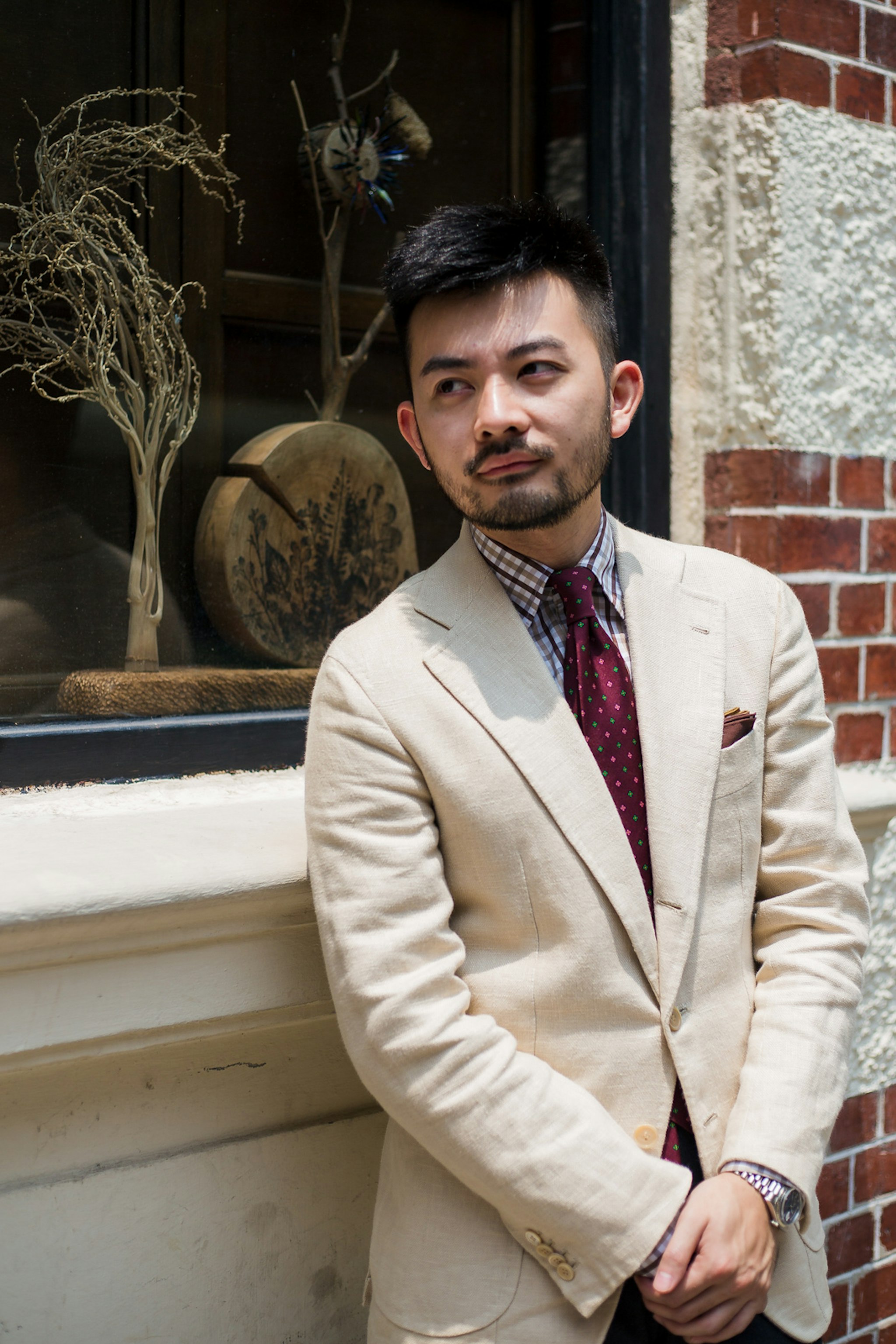Many of my style inspirations come from old photos, illustrations or vintage pieces from the 1930’s. I love the idea of people wearing linen suits while on holiday, they are casual yet very elegant. Many of the jackets from the 30’s were ventless, paired with full cut trousers. Ueki-san’s house style was a good match and an aesthetic that I love for this suit. Another detail I requested are the patch pockets, not common nowadays, but a popular feature on many suits from the 30’s.