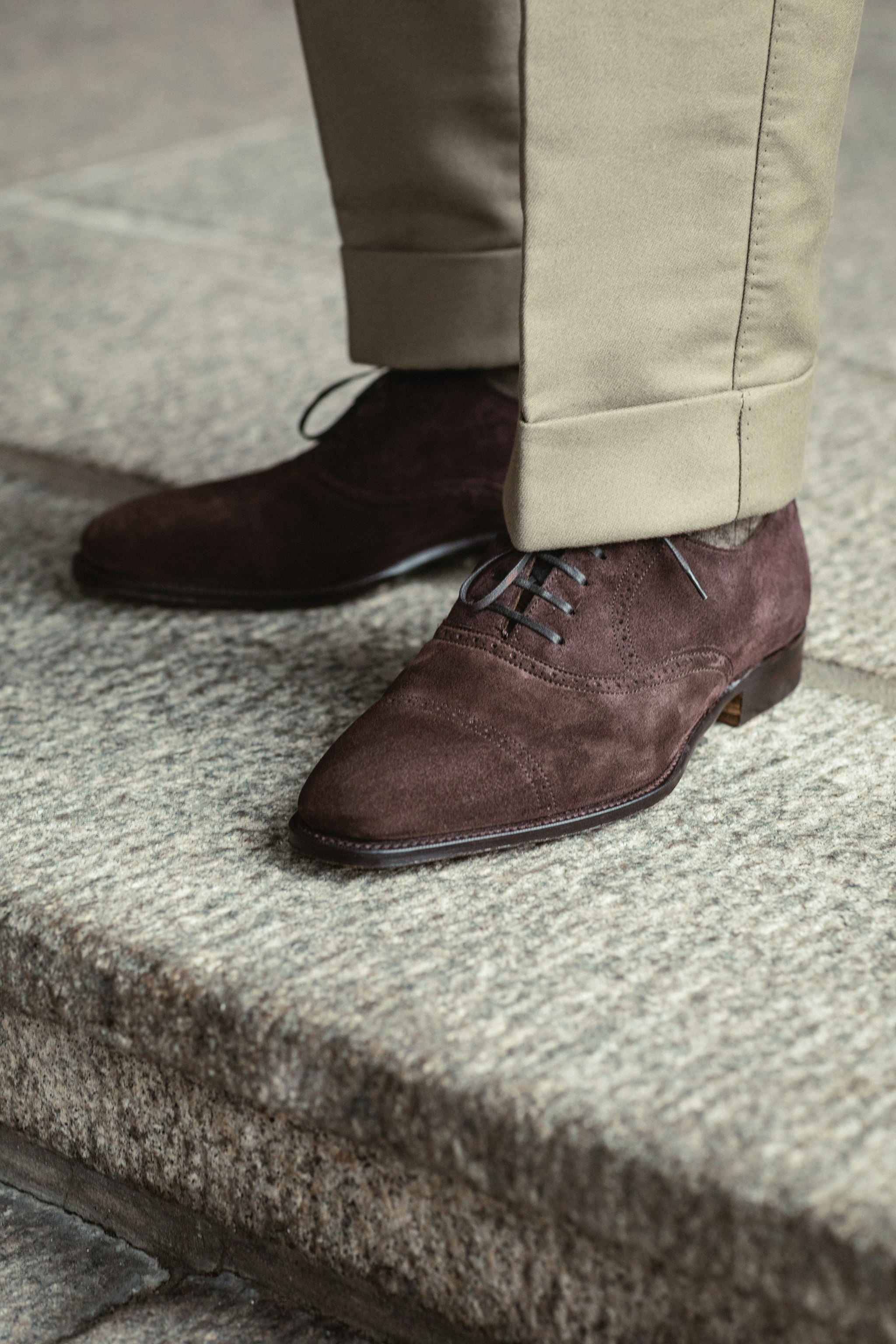 "Last but not least I opted for the dark brown suede version of the Wyndham semi brogue. I simply love suede shoes and the matte texture works very well with the rest of this outfit."