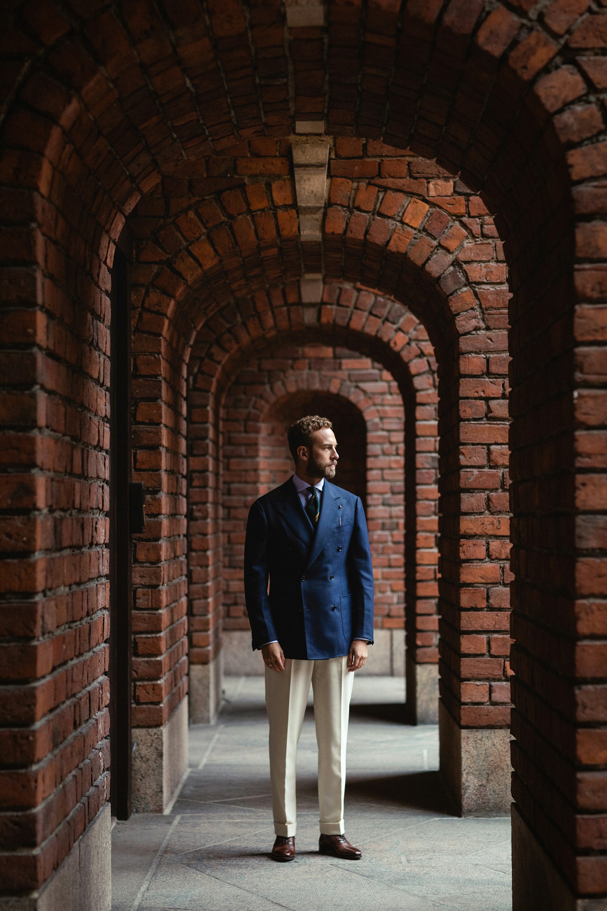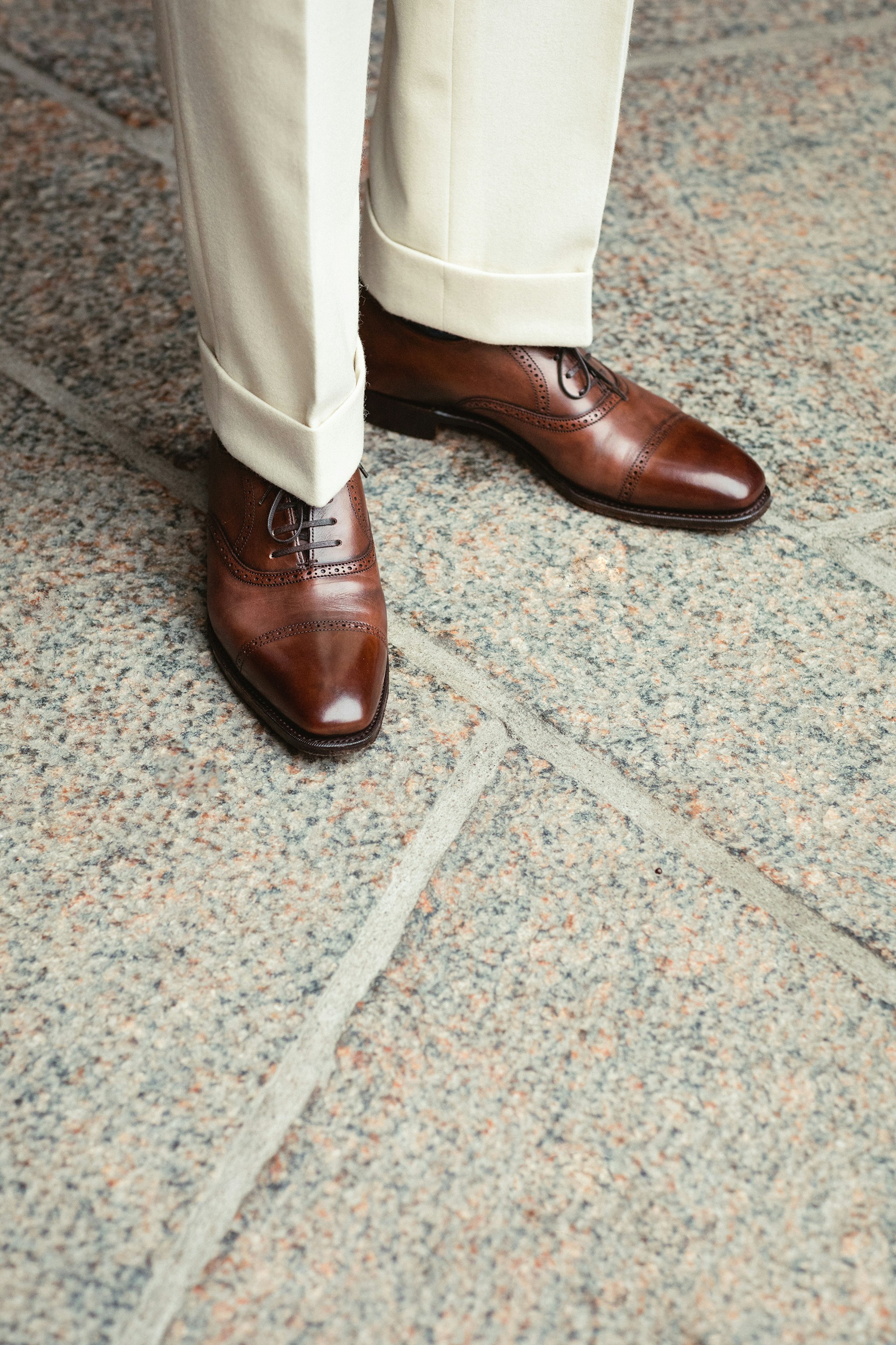 "For this look I went with the brown calf version of the Wyndham semi brogue for a little less contrast against the cream trousers."
