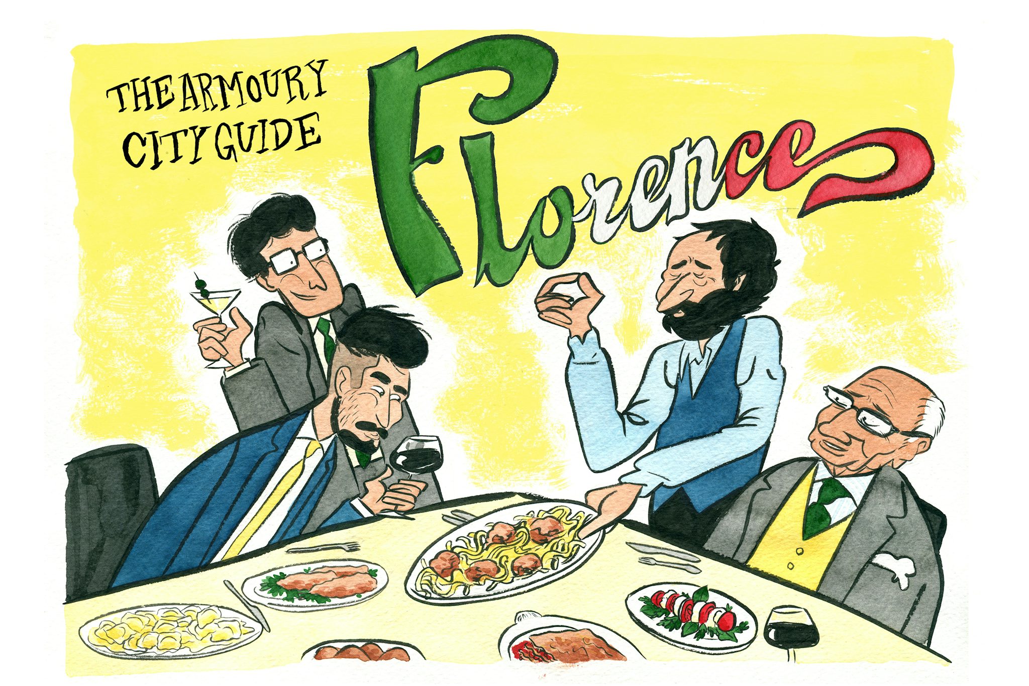 We take you through some of our favorite places to eat and drink in Florence, Italy. Illustrated by our in-house illustrator Richard "Dick" Carroll.