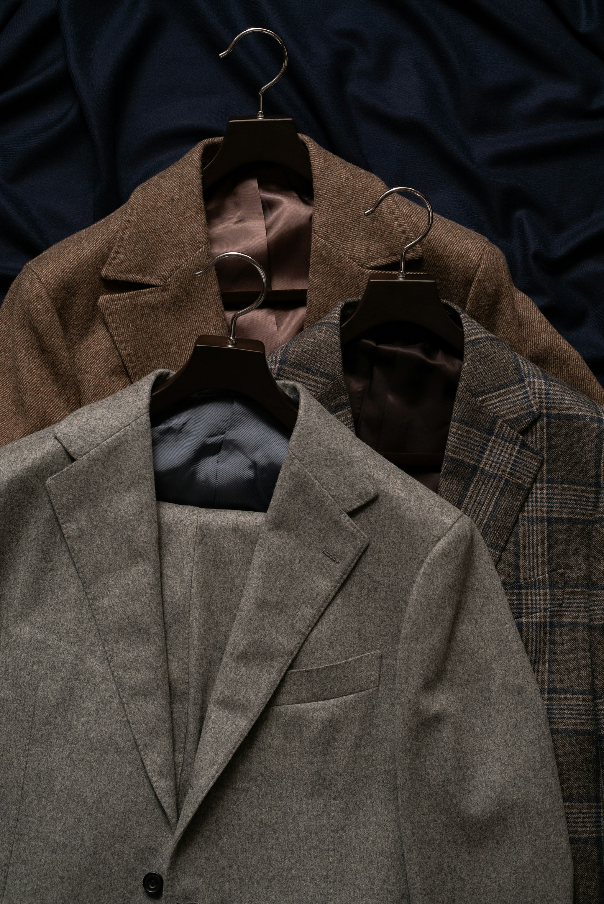 A good quality jacket hanger is important because a well-made tailored jacket is a three-dimensional piece of clothing. The shape is carefully created by skilled sewing and ironing, but this shape can be lost over time if the jacket is stored on improper hangers. Our exclusive hangers are made by hand in Japan and are designed to preserve the natural drape of a jacket by supporting the neck and shoulders over time.