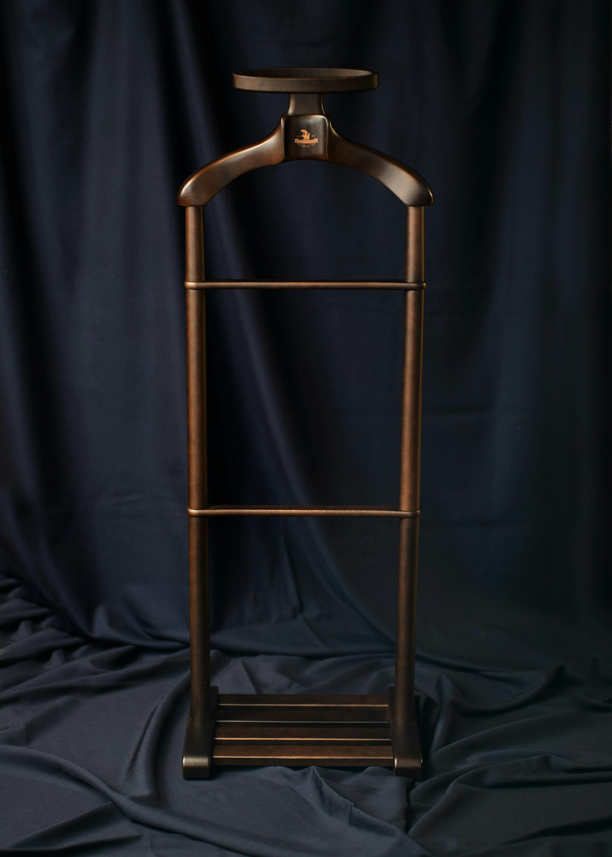 Engineered to fit a day’s worth of clothing and accessories, our valet features a one-piece solid wood hanger that’s specifically shaped to preserve the shape of your jackets. On top sits a felted valet tray for accessories and below are bars for trousers. Our valet makes a unique gift for anyone who loves tailored clothing.