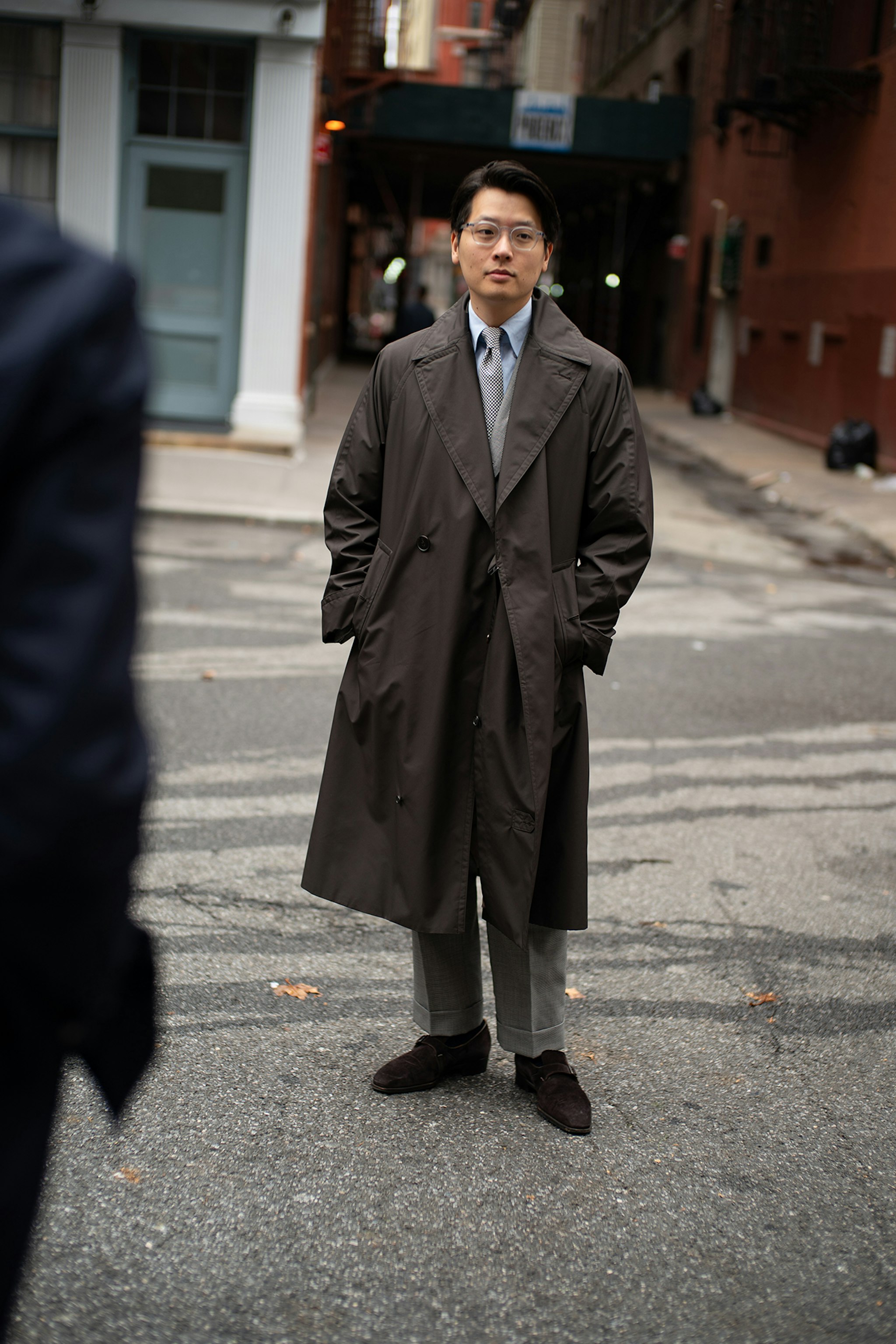 The Armoury exclusive Marc Coat was inspired by French-American painter and writer Marcel Duchamp. The style is originally derived from the dispatch rider's coat from WWII. We added a simplified belting system and adjusted the proportions with a lower waist and buttoning point. The Marc is modified to make the style more practical and suitable for city life than the original.