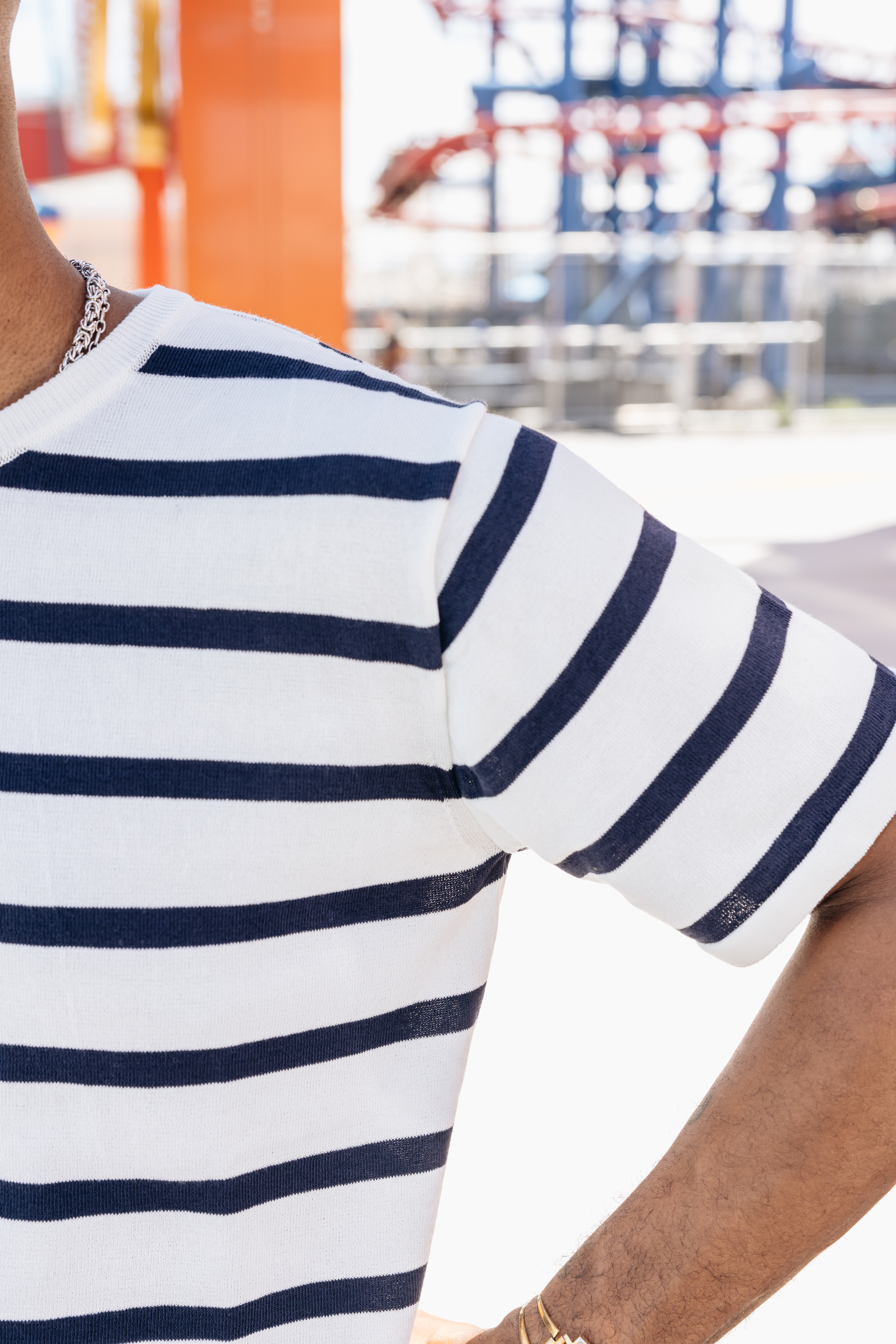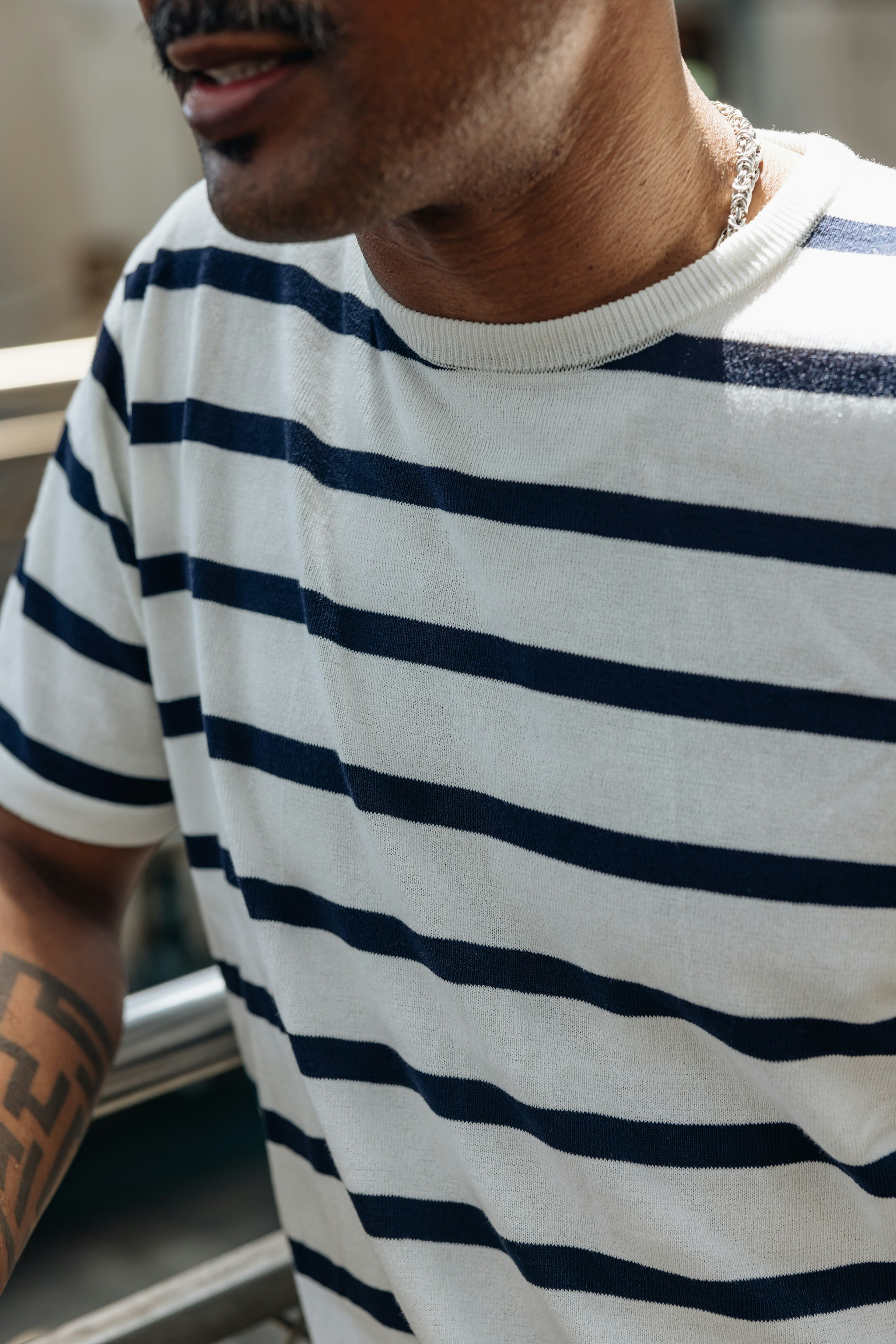 “The striped Ice Tee has a classic nautical sensibility that's charming and apropos, especially in coastal areas. It echoes the frivolity of summer dressing in a really pleasant way. From a construction standpoint, it's both light yet quite smart with the ribbed hem and collar, a perfect combination. It's exactly what I want to combat warm weather.”
