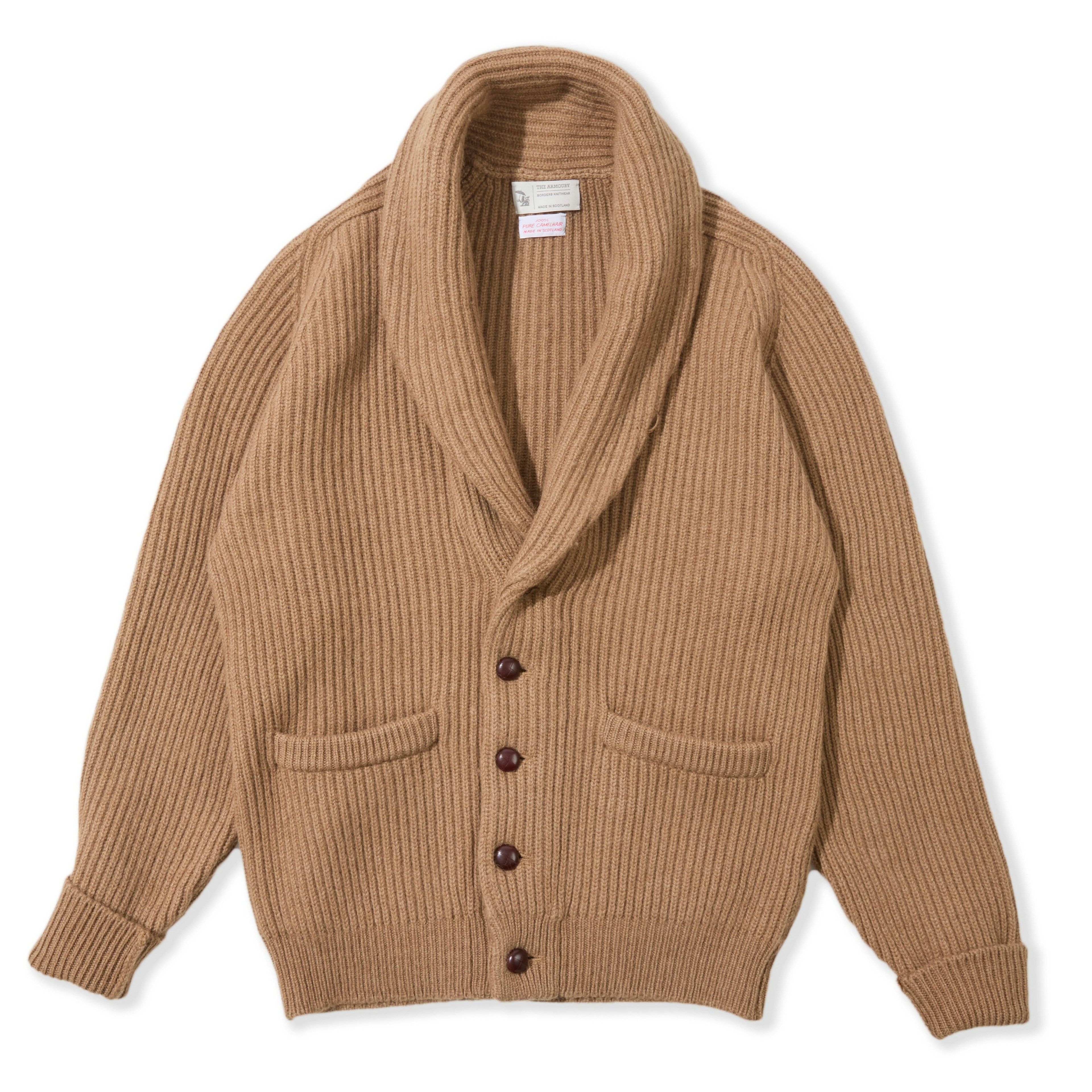 Our shawl-collar cardigan is an incredible piece of clothing. Made in conjunction with our favorite mill in Scotland, it features a generous collar that can be flipped up for extra warmth, two exterior pockets, fold-back cuffs, and leather buttons. It’s the perfect garment for lounging through the winter.