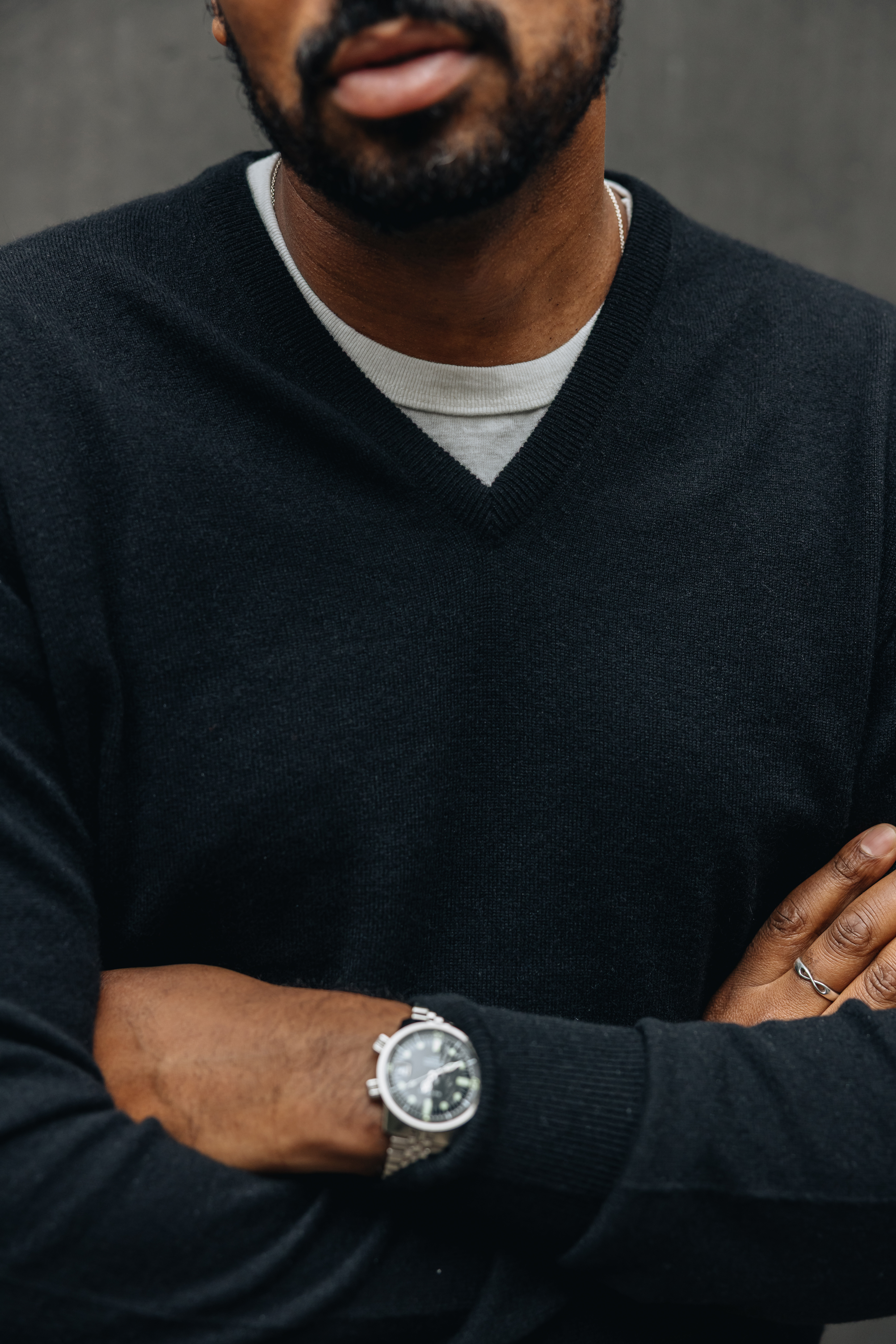 An ideal gift for the colder months, our cashmere V-Neck sweater embodies quiet luxury and timeless versatility. Knitted in Scotland from the finest 100% cashmere, it’s exceptionally soft and warm without bulk. With its balanced V-neck and subtle ribbed details, it layers effortlessly over a Maru tee or under a tailored jacket — a classic piece that will be appreciated season after season.