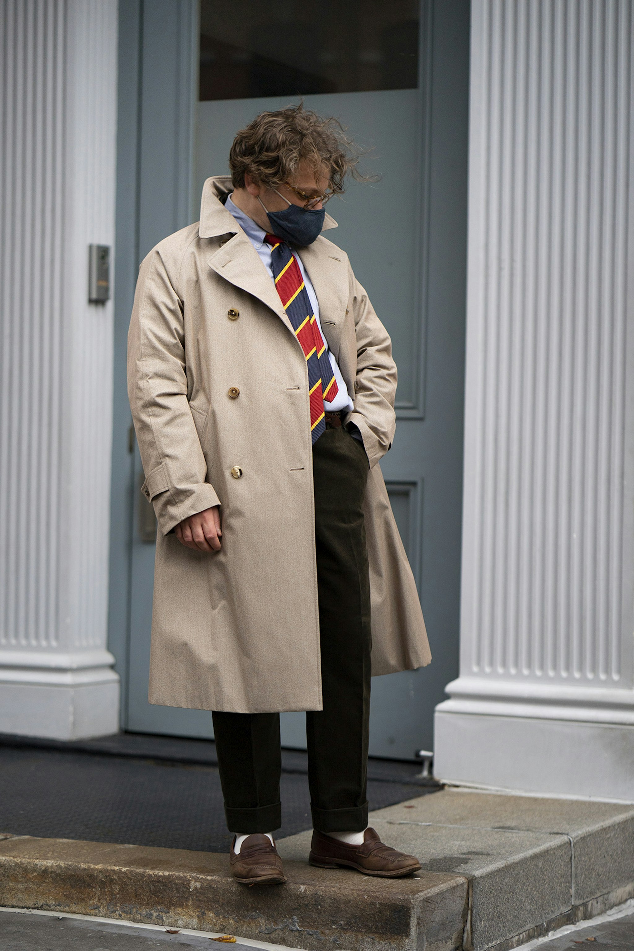 This season we brought back the Fou Fou model which was named after Leonard Foujita, a Japanese-French painter who worked in France during the early 20th Century. We chose a heavy cotton twill with a beige and reddish brown hue. The back of the coat features an umbrella back and the front is finished with side slash pockets.