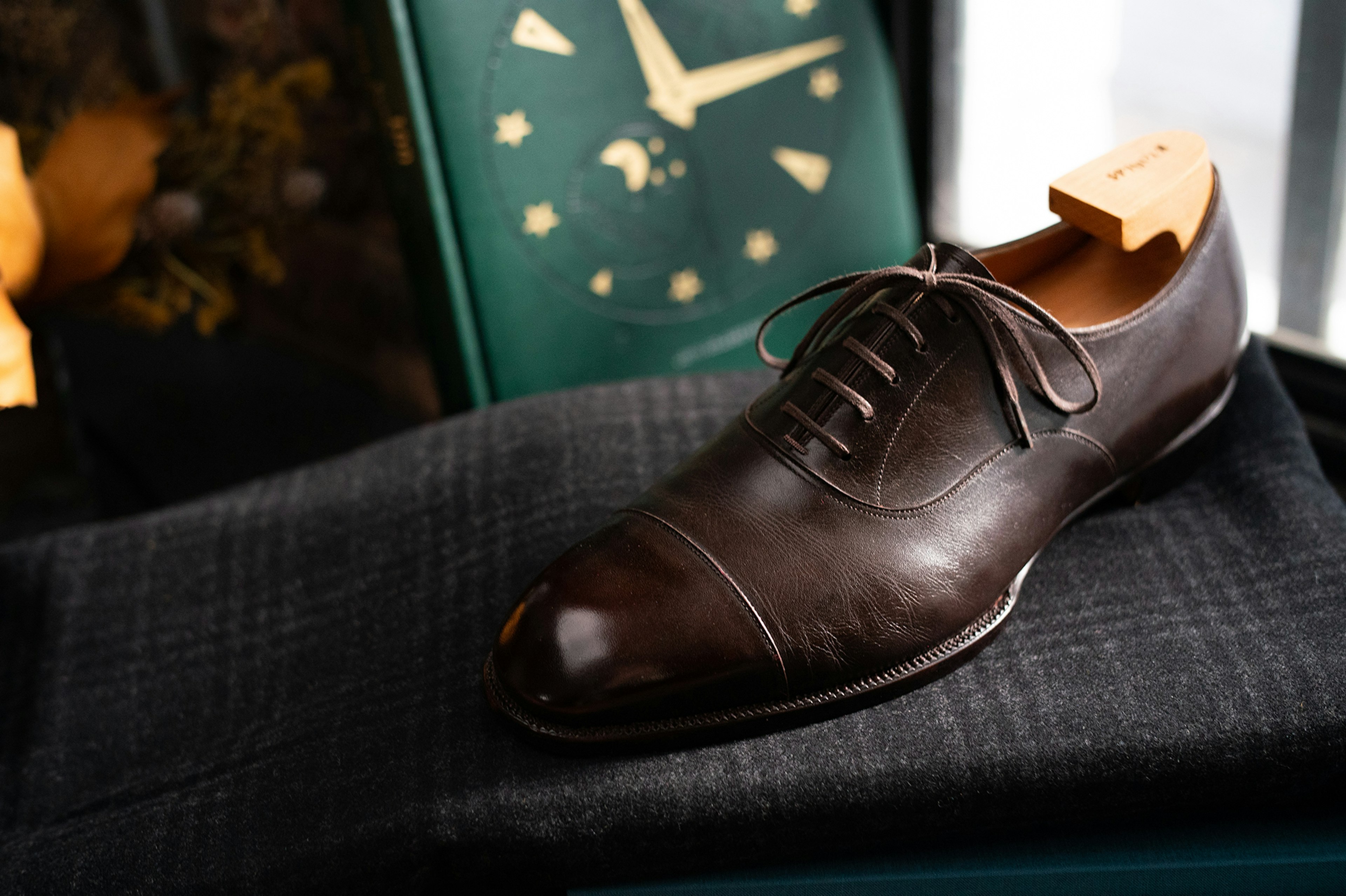 "I've always admired Koji's eye for proportions. To me, he makes the quintessential classic captoe. Not too square, not too round. Simple and elegant. Common advice says to get black captoes first, but I find dark brown to be much more versatile. I wear mine with sport coats and all but the darkest of suits. They only seem to get better with time. Sometimes I wish I aged as well as my shoes..."