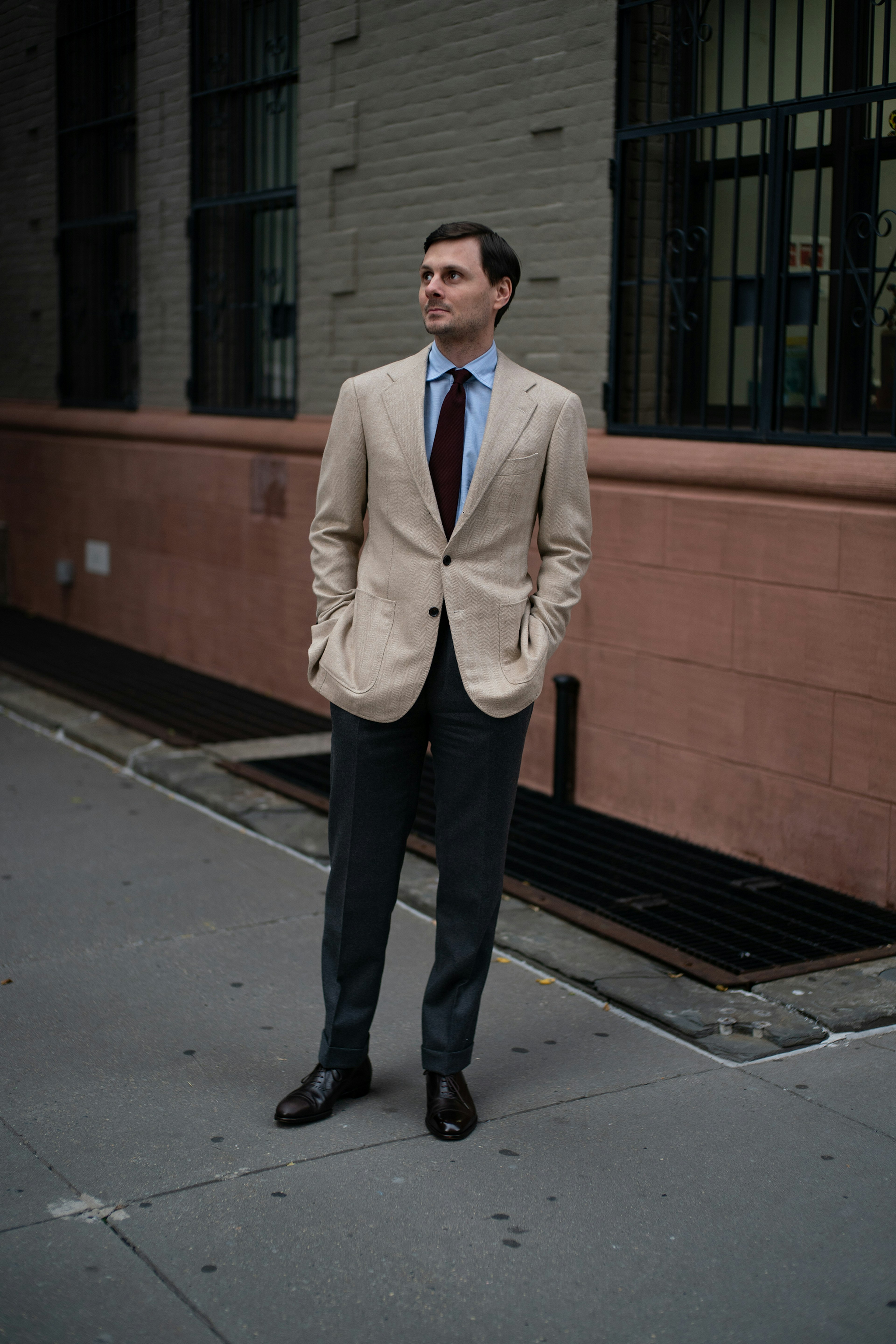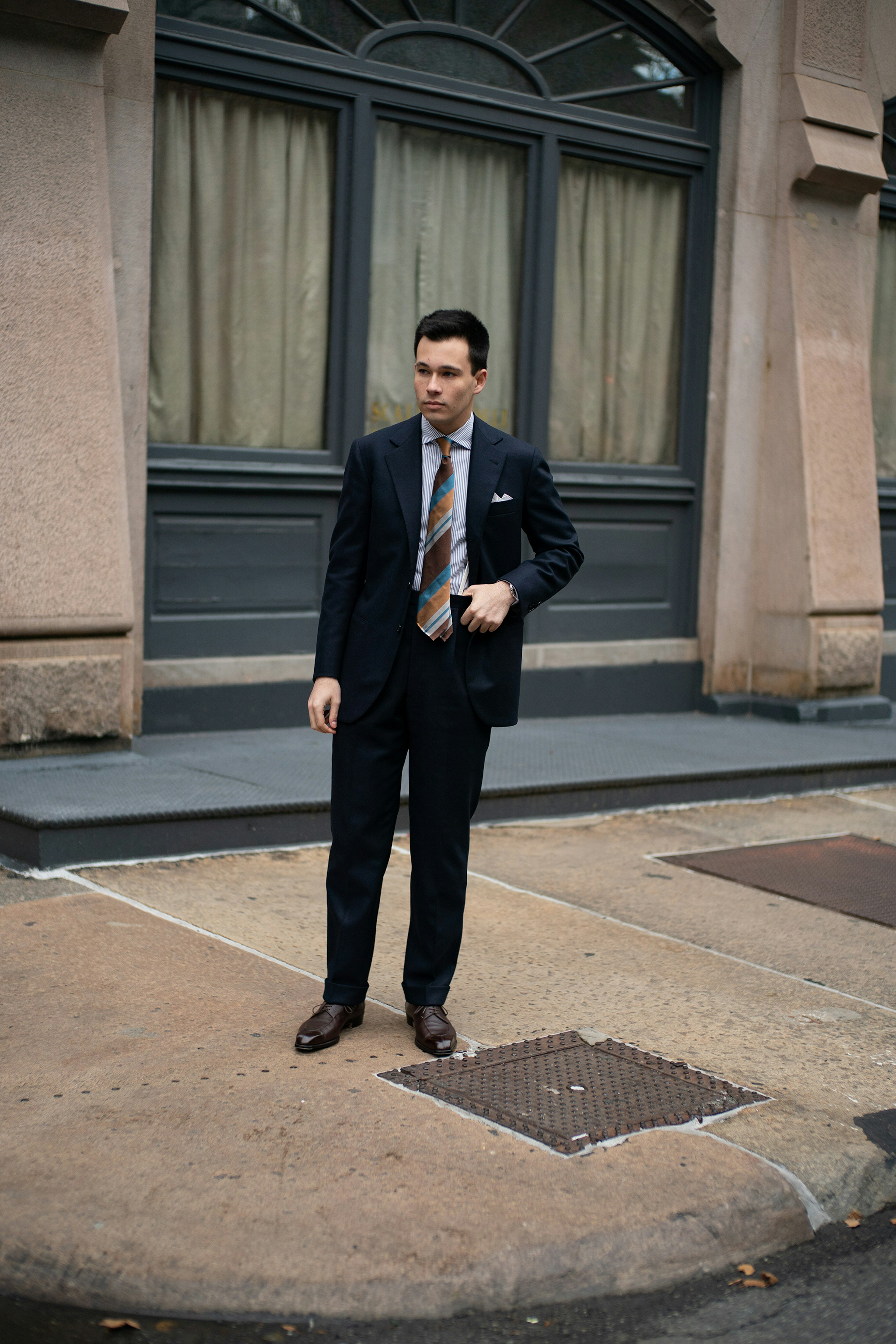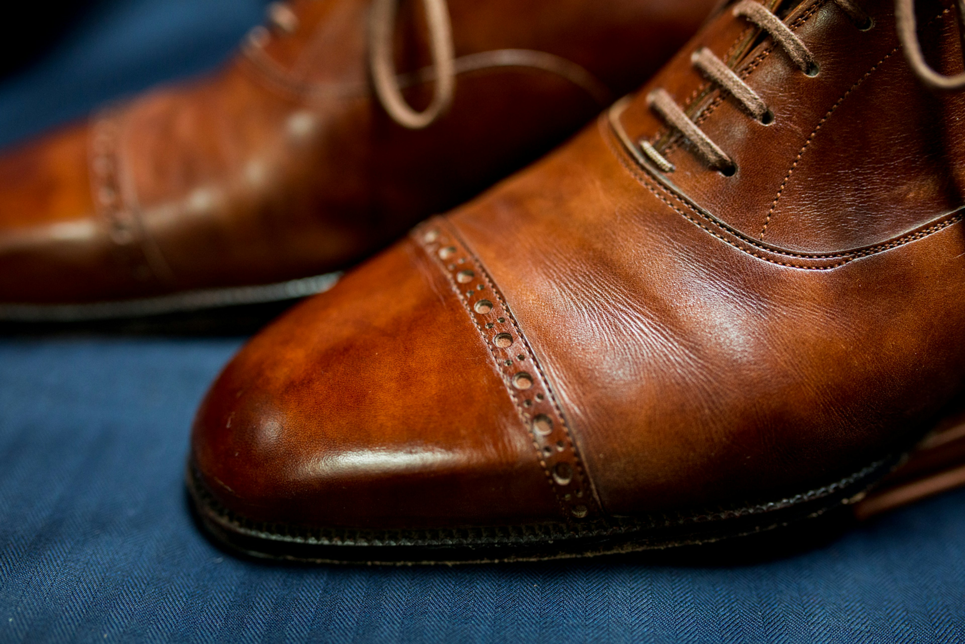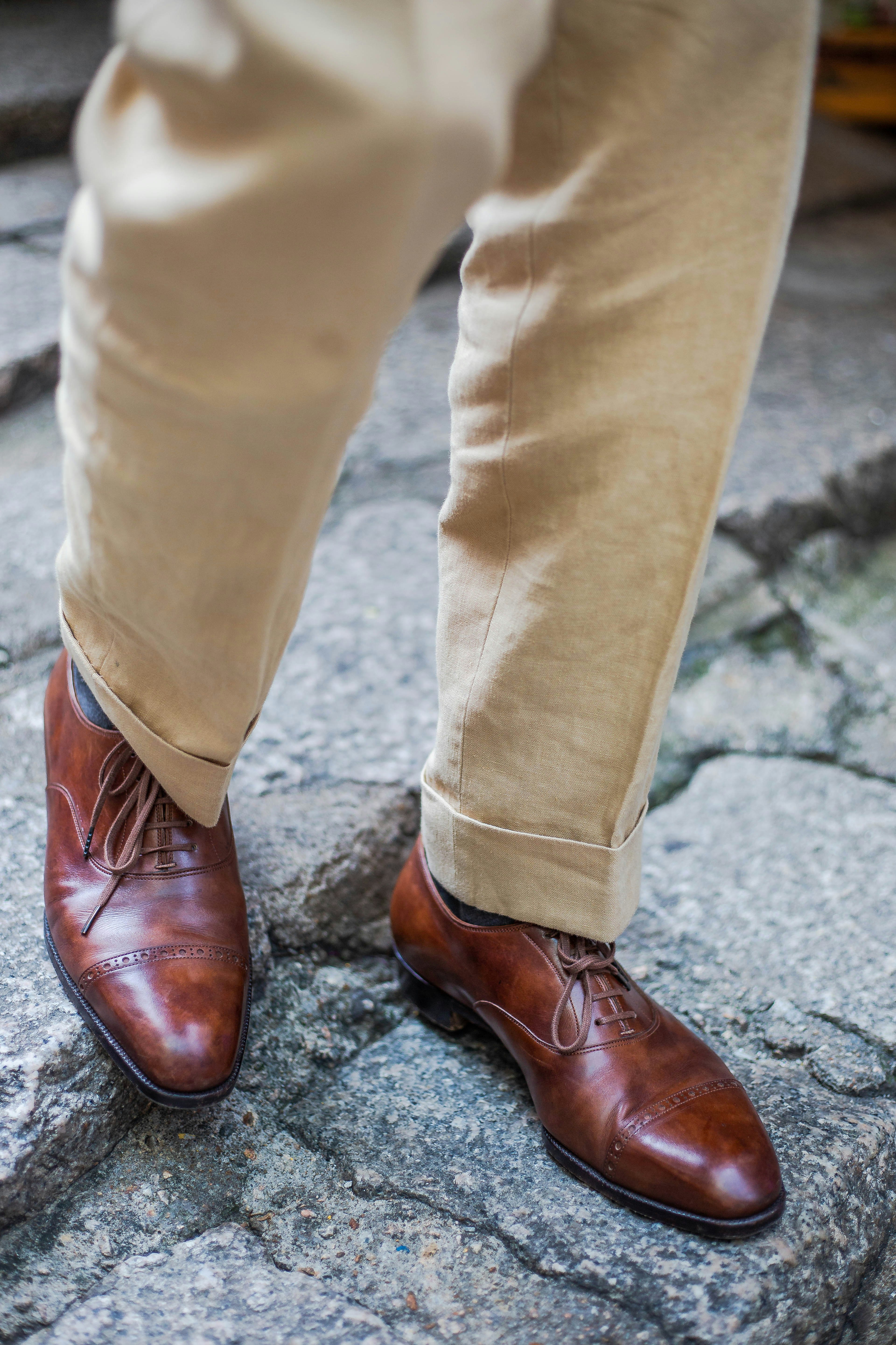 "I had these tan shoes made in the same style as my black captoe oxfords, I find the mid-brown goes with the medium to light toned suits in my closet. They are perfect for my summer wardrobe, full of linens and light colours."
