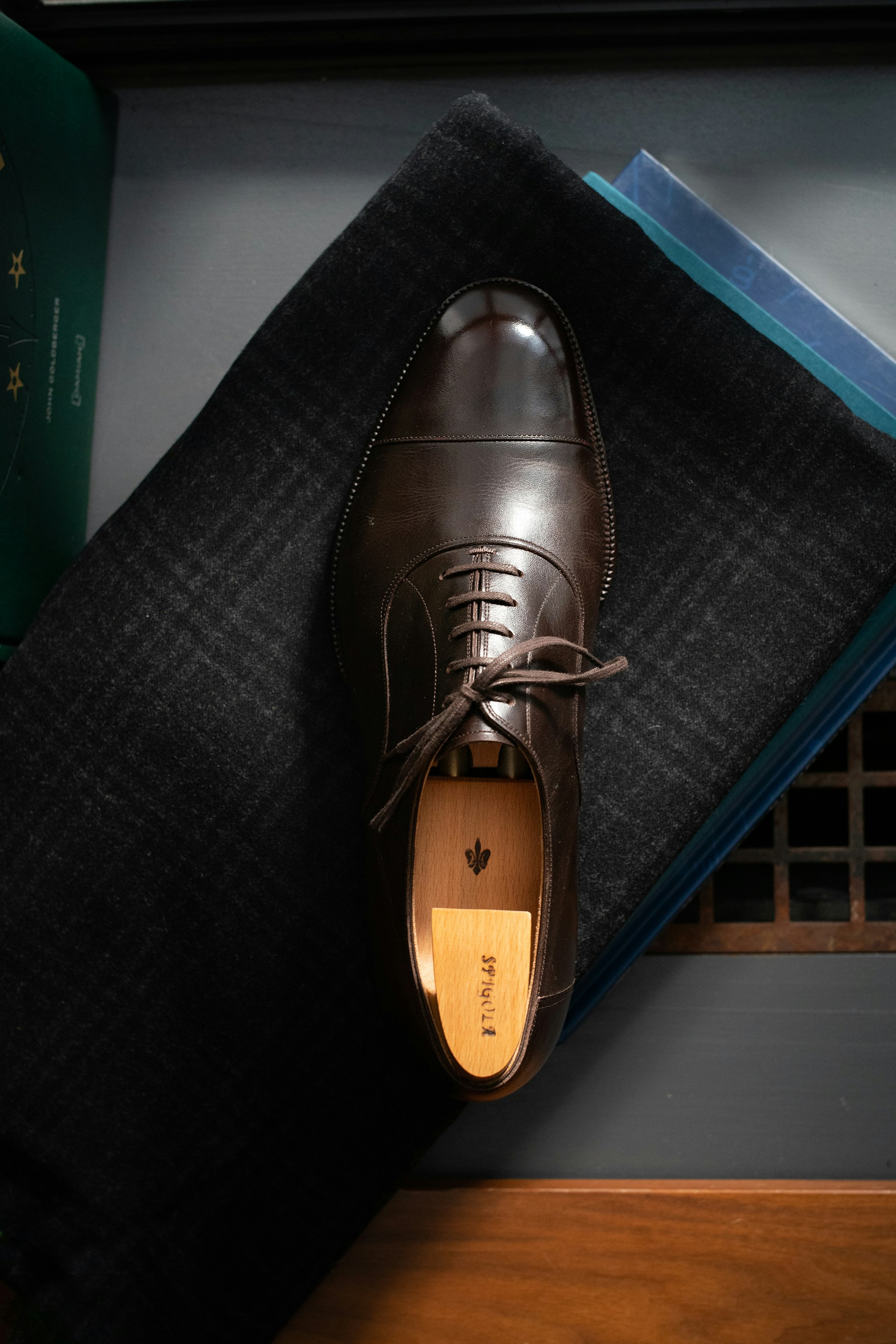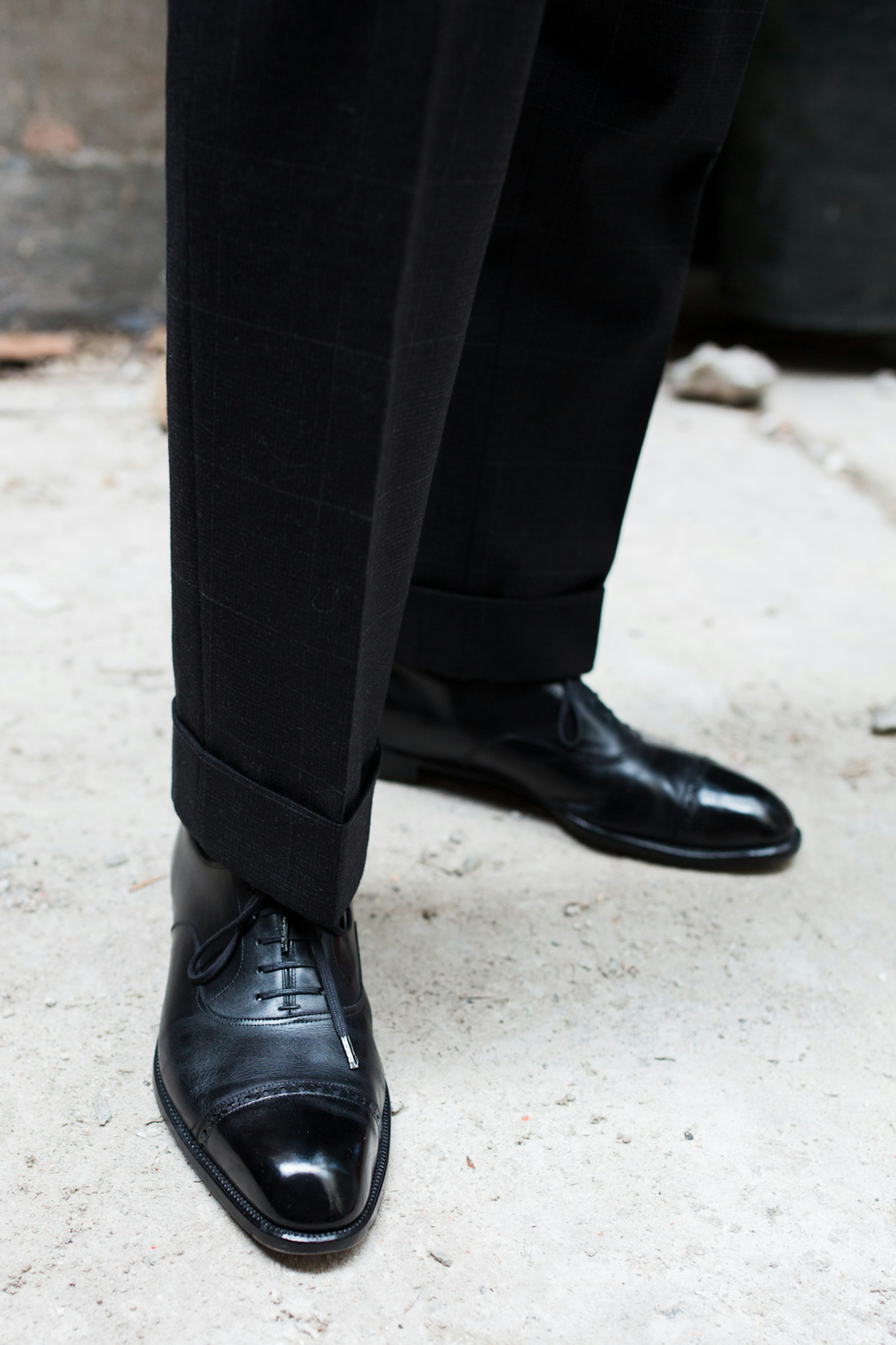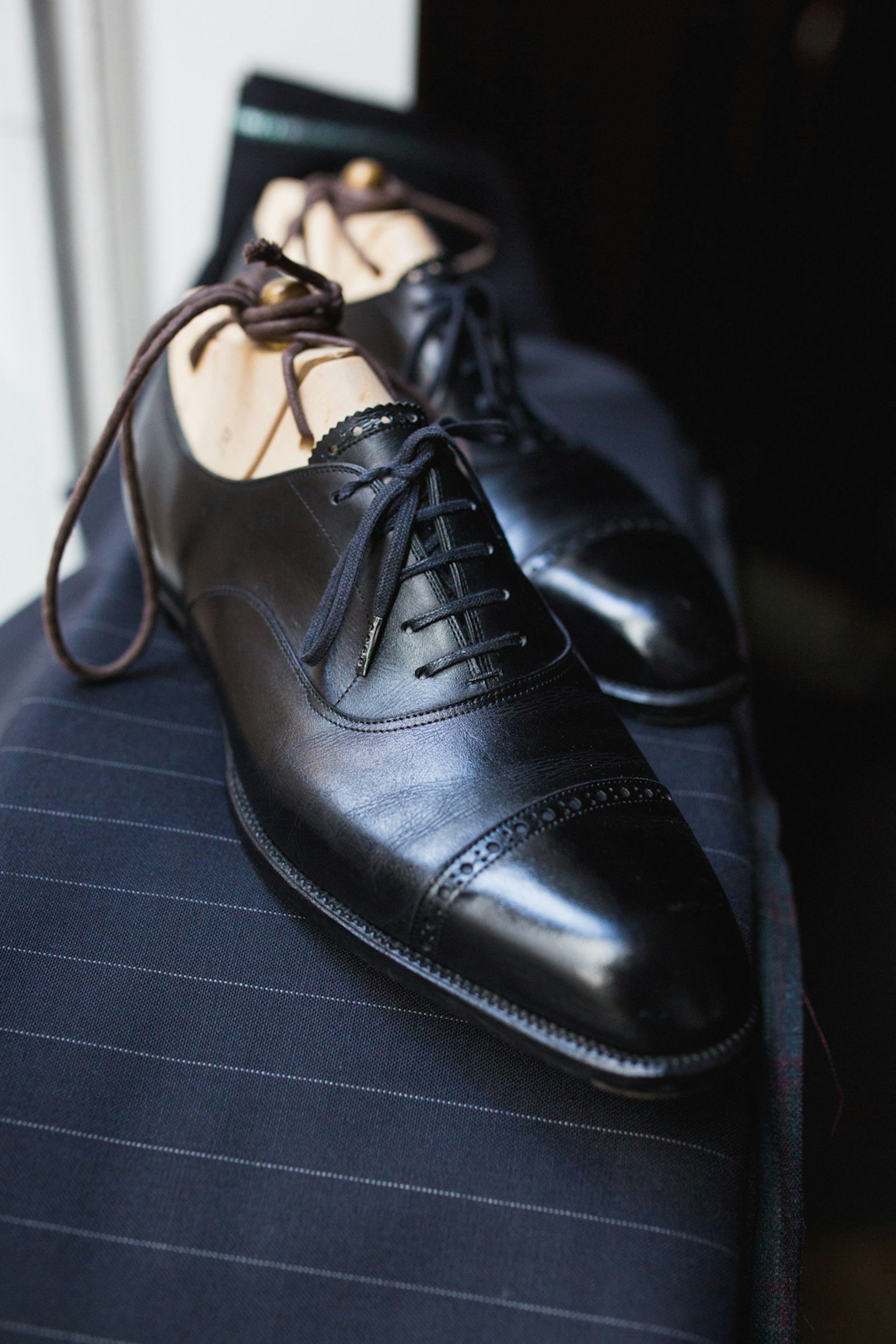 "This pair of Kojis have been my go to pair of black shoes for the past 7 years now. They are simple and classic, with the last being round but not stubby. Fortunately I fit perfectly into his MTO last, which accommodates my blocky flat feet which have no arch at all. Somehow they retain a beautiful shape from all angles, a great example of Koji's unique eye for design. I personalized these slightly with a preference for fine punching and a seamless back, subtle details on an otherwise classic captoe."