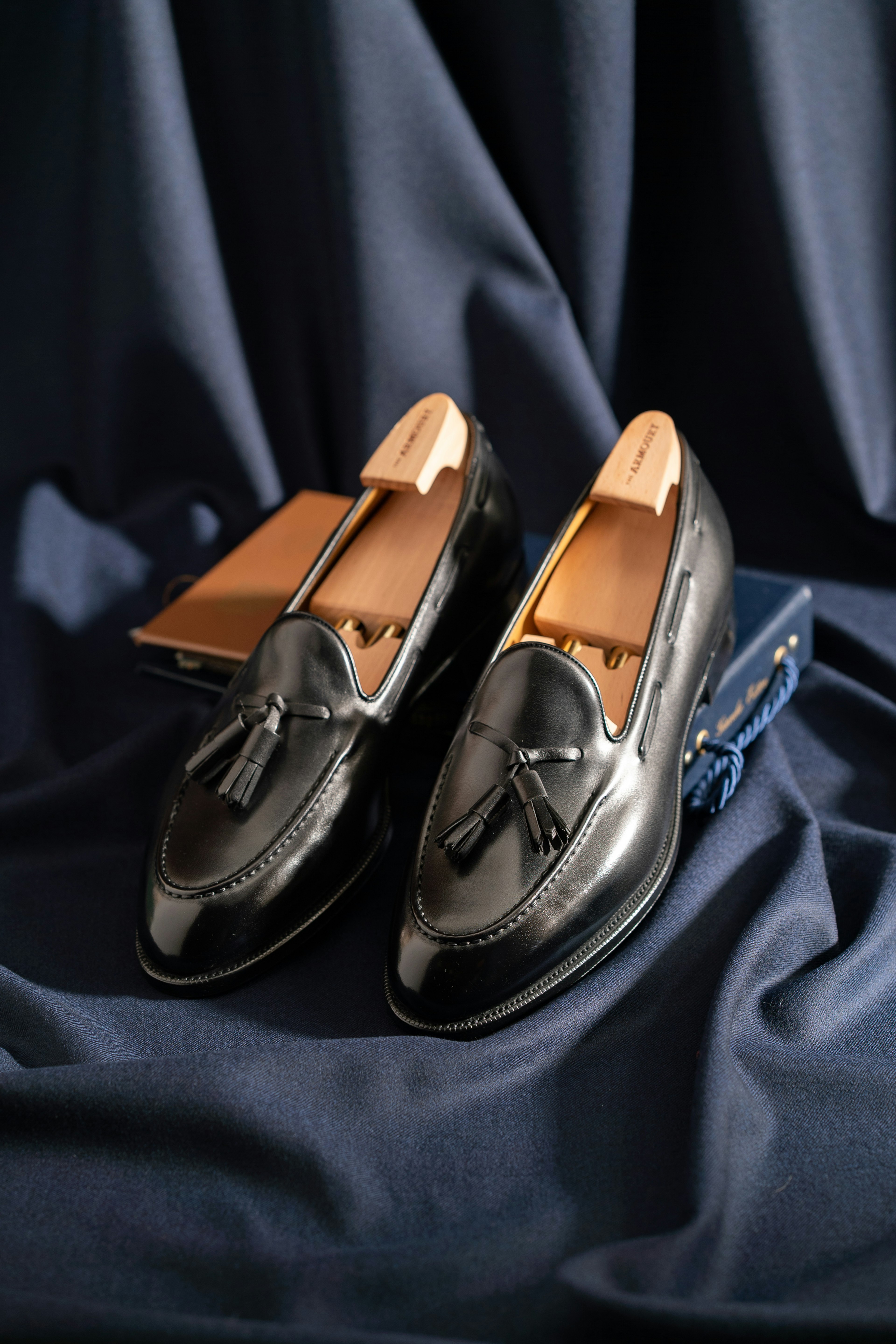 The Arlington Tassel Loafer is a model developed exclusively for The Armoury. Featuring a hand-sewn apron and clean heal counter, this splendid shoe is made to the highest standards and should become a wardrobe favorite very quickly. Our own Jim Parker likes wearing these shoes with suits, the color is perfect for grey and even navy. This model is made up in supple black calf leather on the No. 18 last, exclusively for The Armoury.