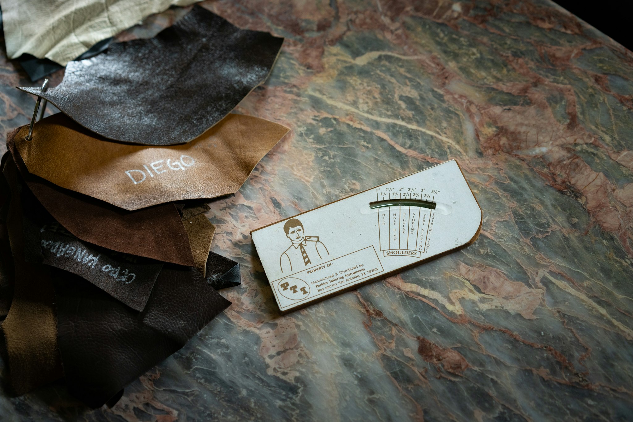 As with our other bespoke makers, Savas makes a fitting garment for bespoke orders. This fit garment is made from a canvas which mimics the rigidity of leather and can be adjusted to find the perfect fit before final production in leather.