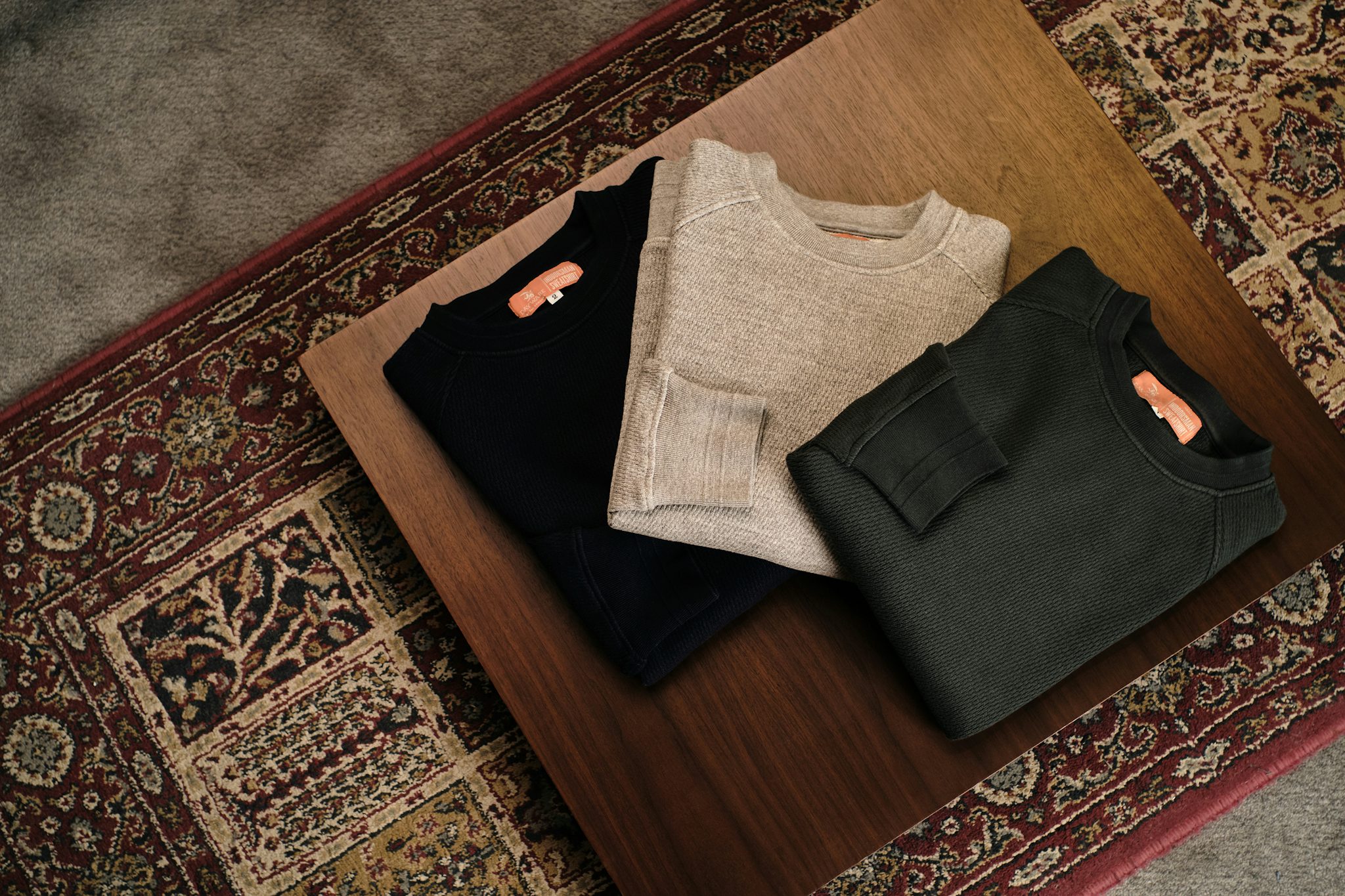 Introducing the Indoorsman Sweatshirt, bridging the gap between a classic sweatshirt and fine knitwear.