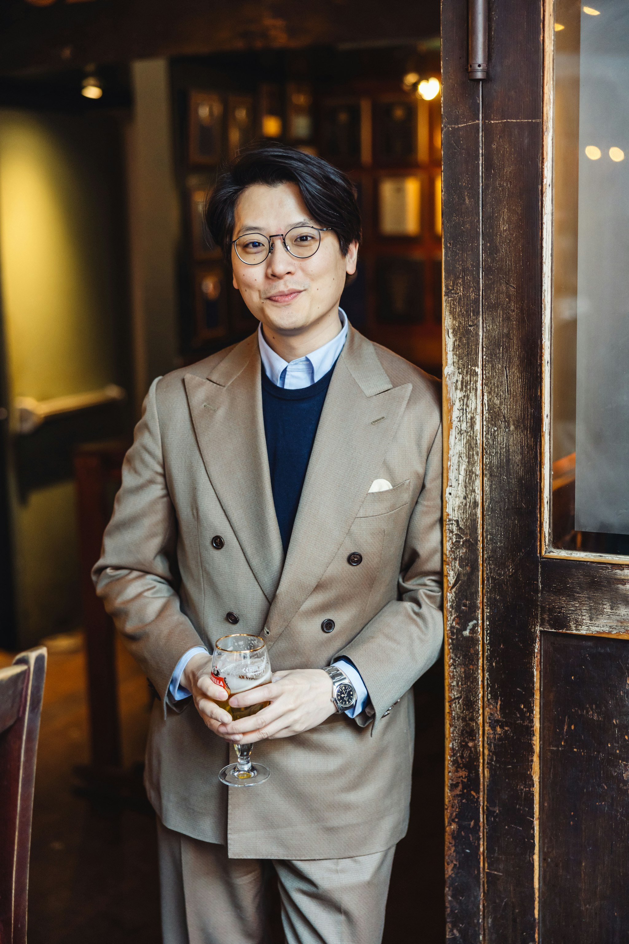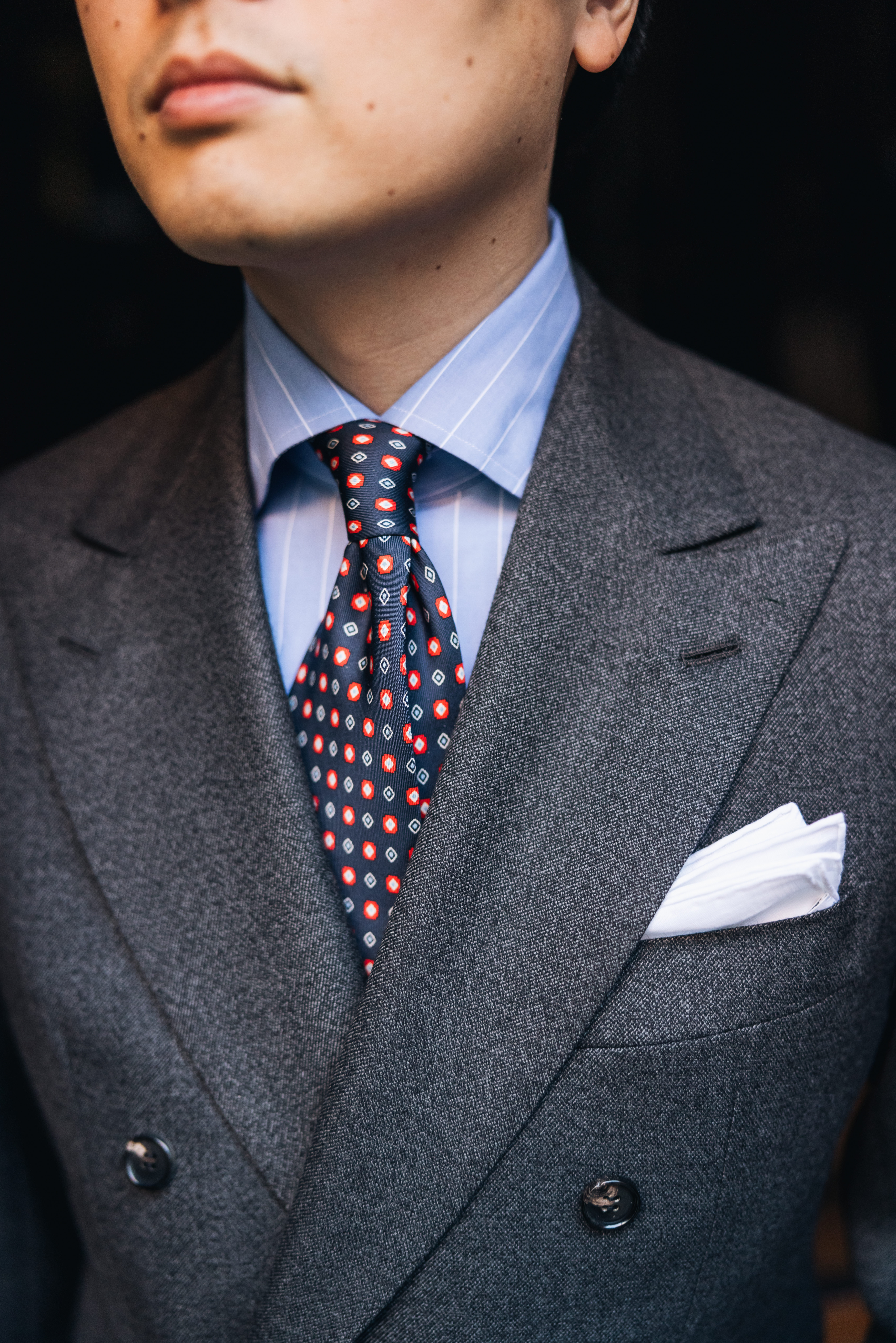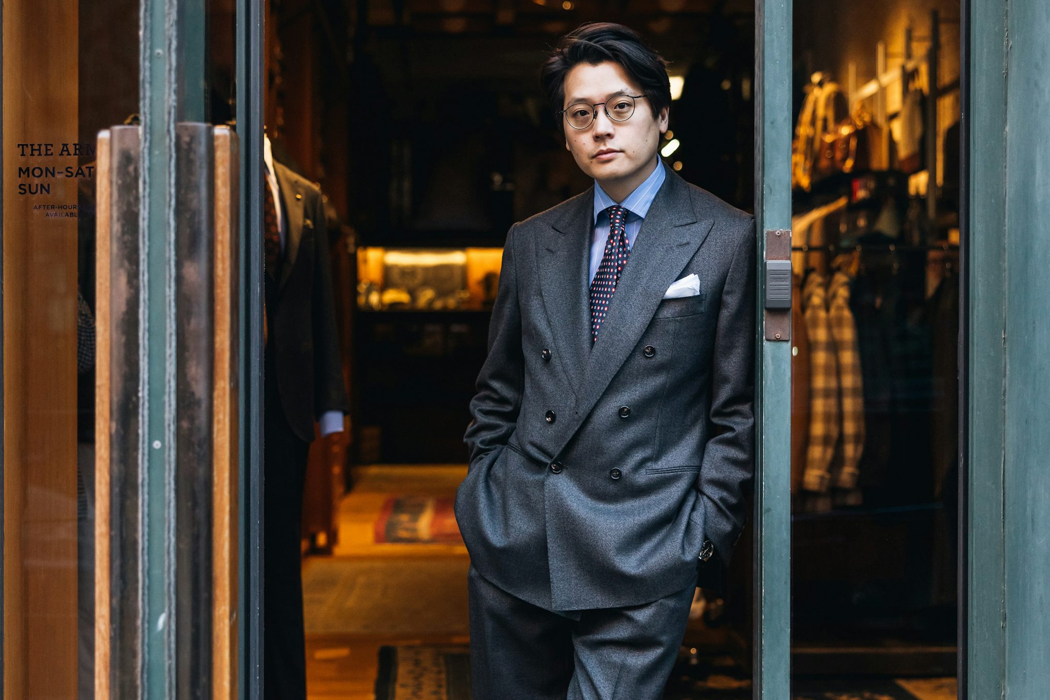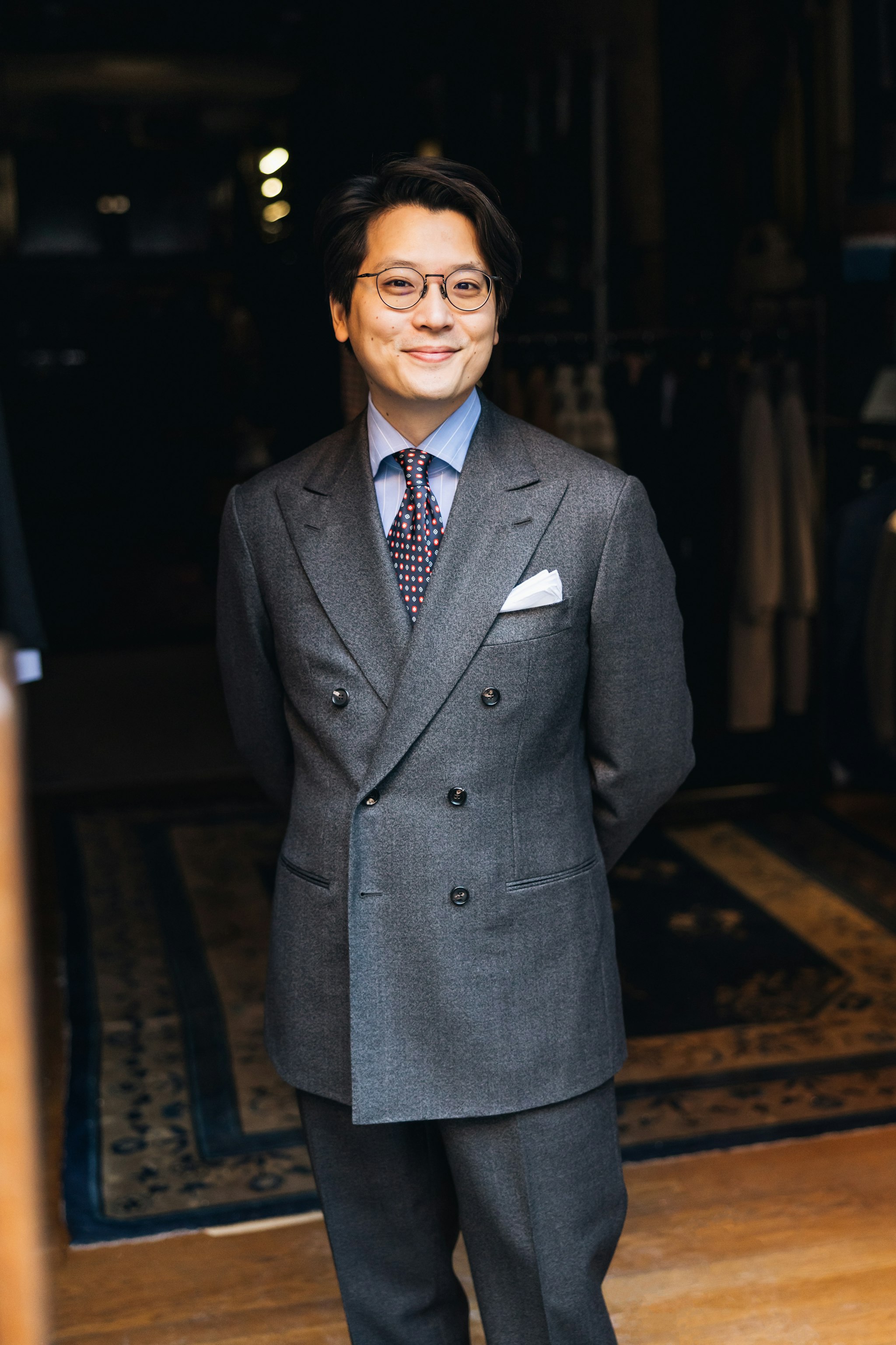 Key design elements include a lower lapel that sweeps outward, lending the jacket a classic and effortlessly wearable aesthetic. To achieve a timeless feel, we’ve made subtle yet impactful adjustments: lowering the breast pocket, slightly extending the shoulders, and maintaining a soft structure throughout. The result is a versatile double-breasted jacket designed to be buttoned either on the middle or lower button, offering flexibility to suit any occasion.