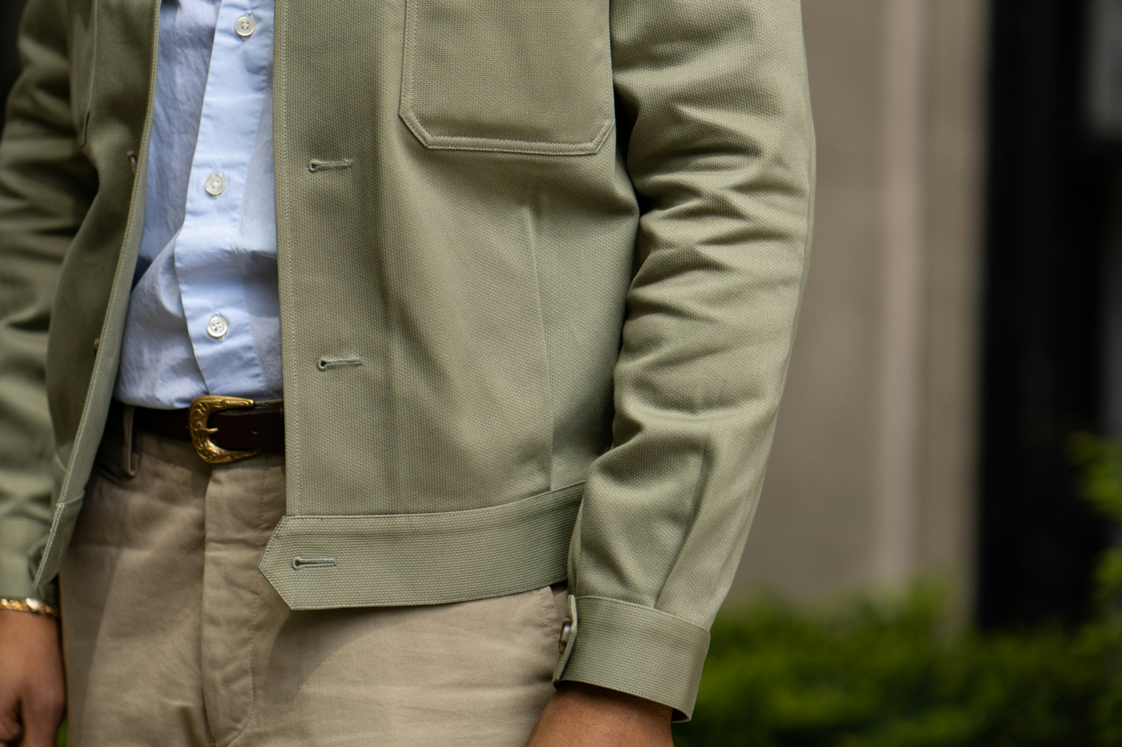 We sourced this green cotton from Japan. We particularly liked it’s tough and unusual texture.