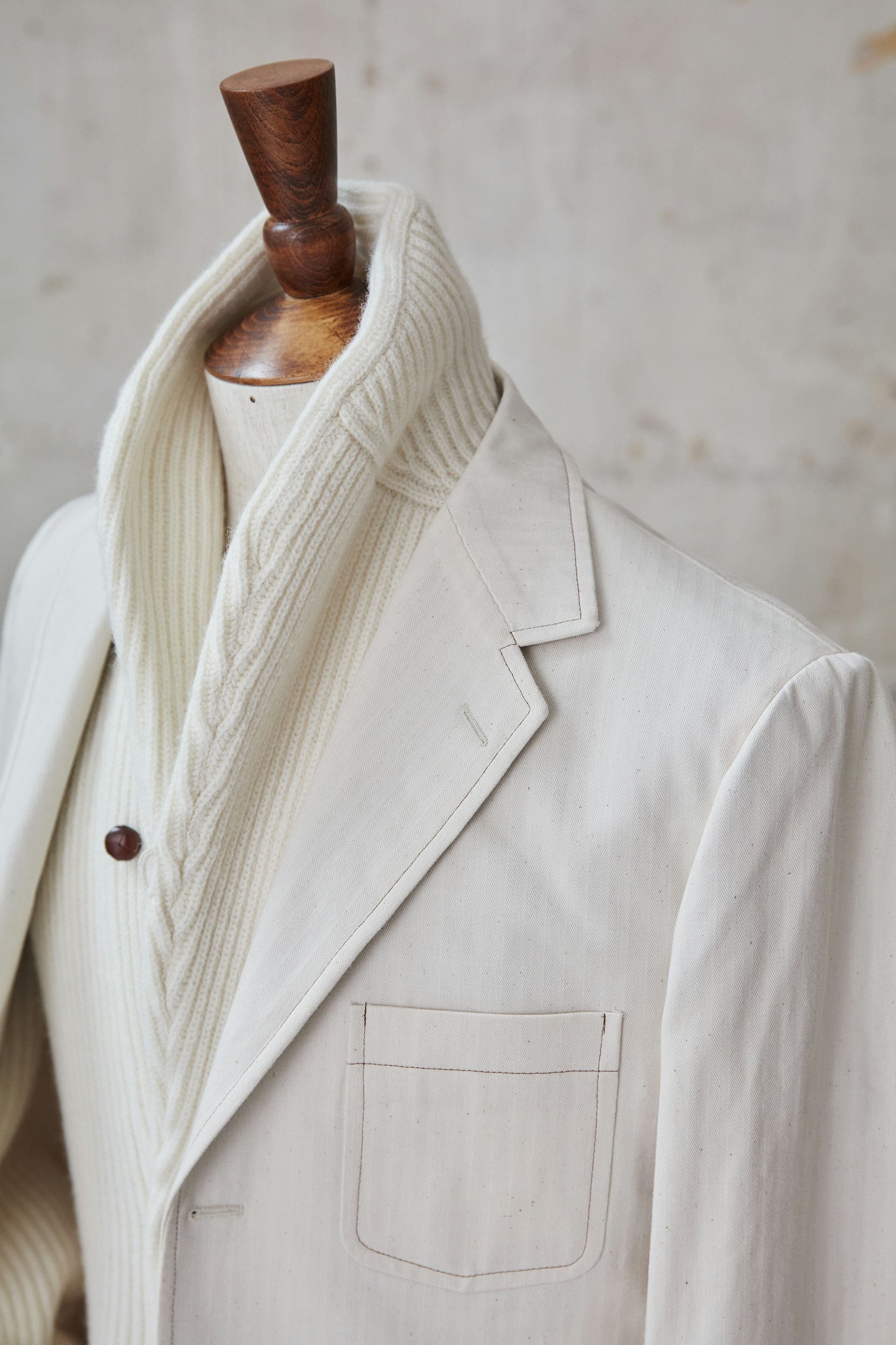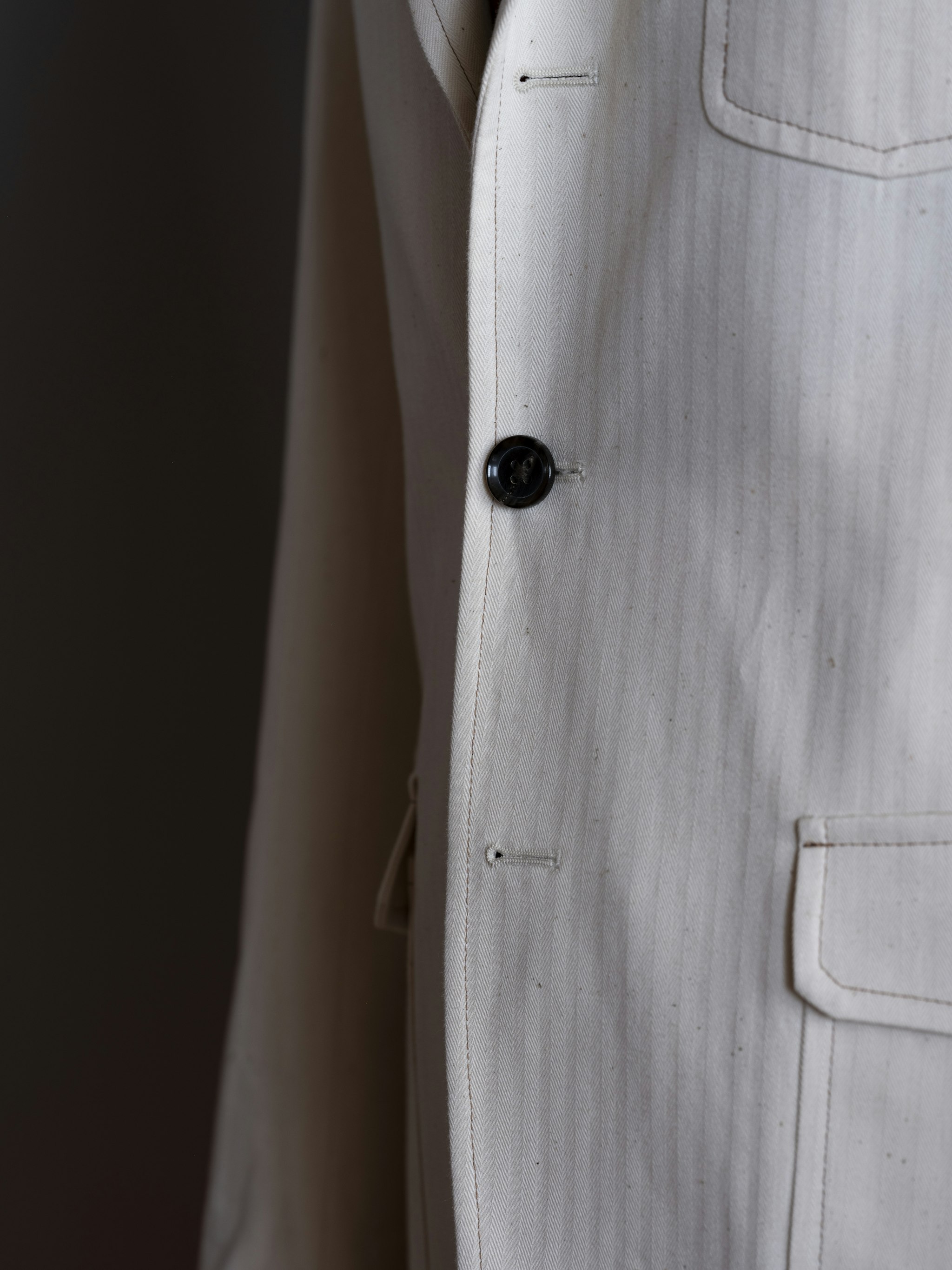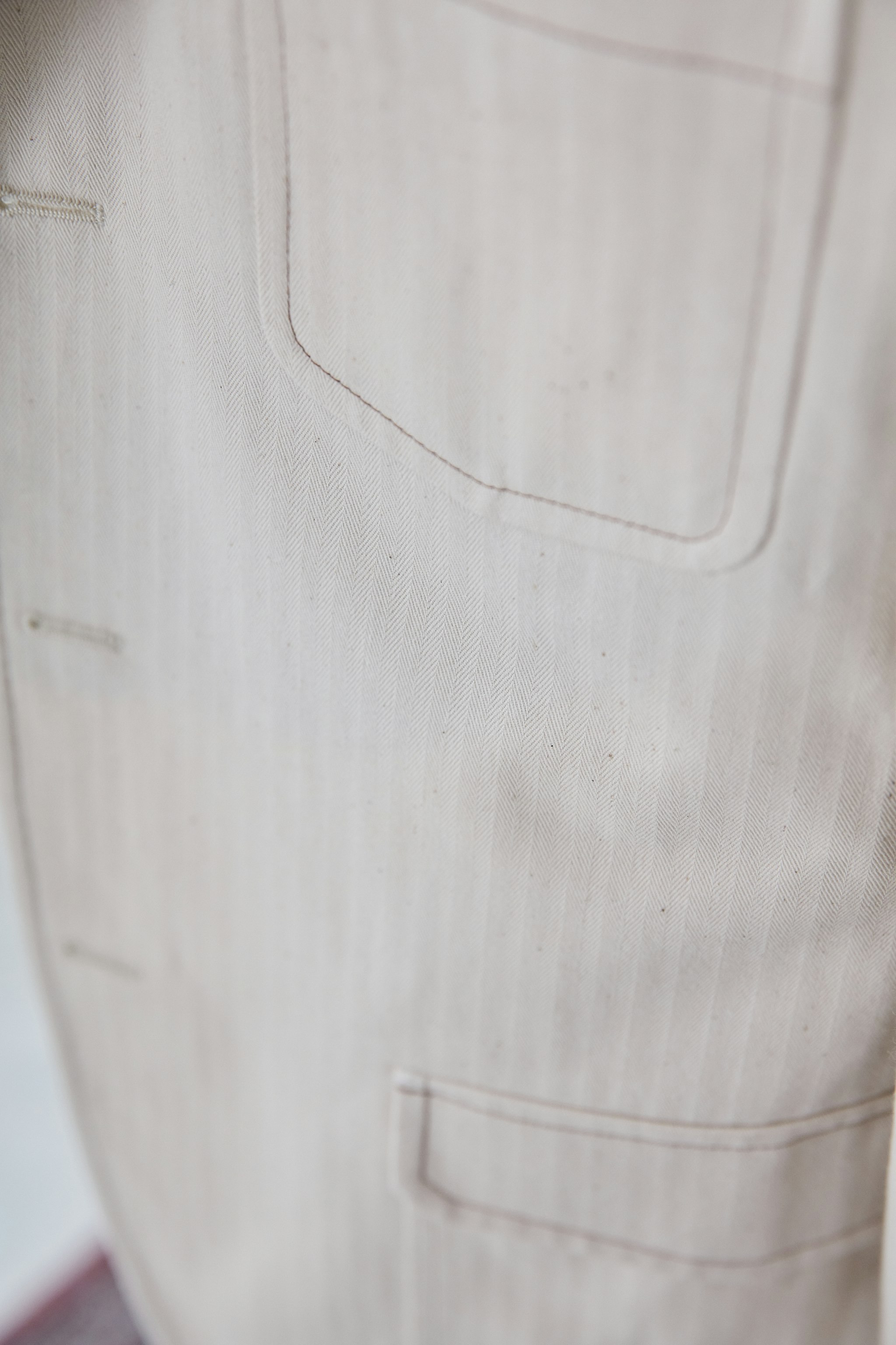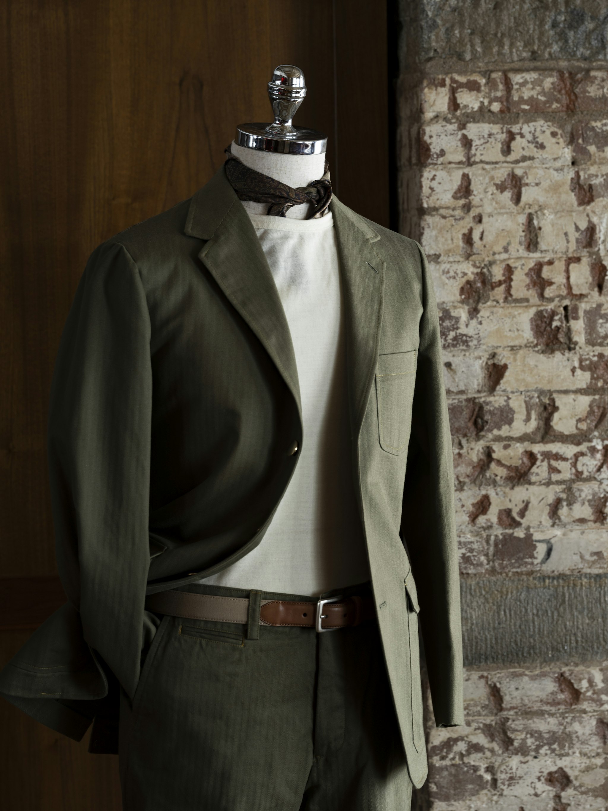 We worked with Fei to create a capsule collection of two sport coats and two chinos that can be paired as casual suits. Each garment includes a limited-edition postcard, featuring one of the pieces from the collection.